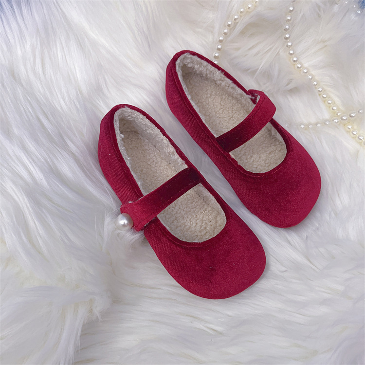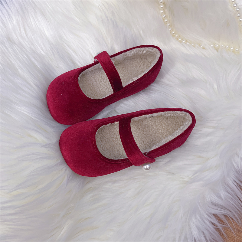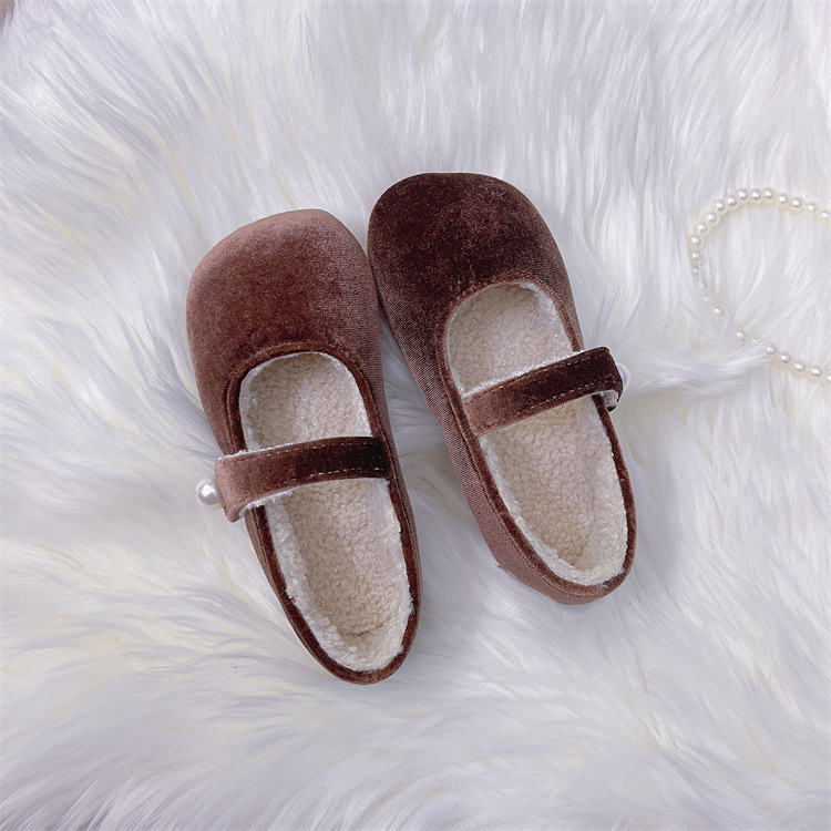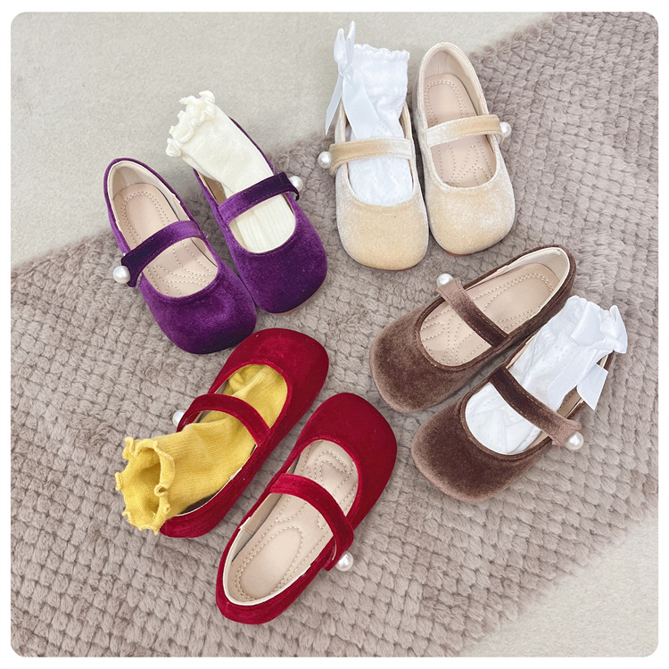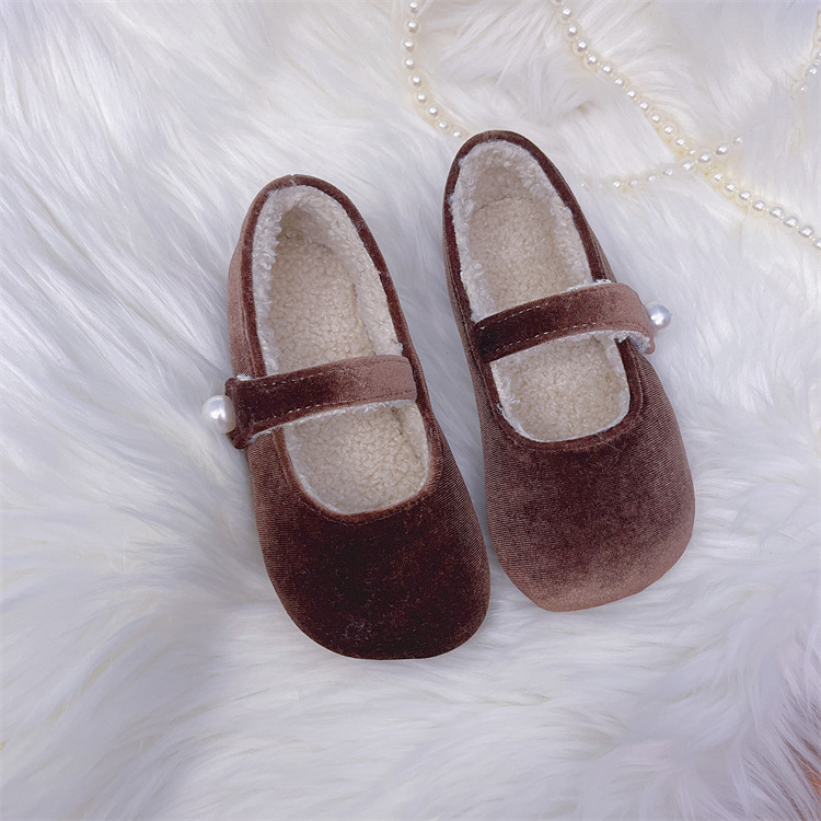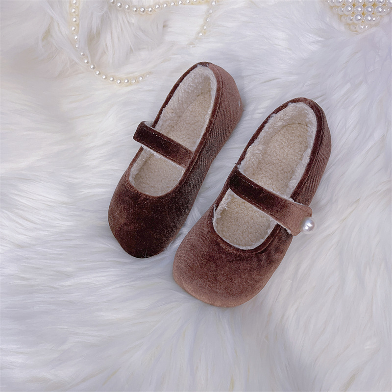 한국 어린이 신발 2025 봄과 가을 달콤한 소녀 소프트 솔 웨스턴 스타일 공주 신발 레트로 벨벳 어린 소녀 기모 신발스토어 가기