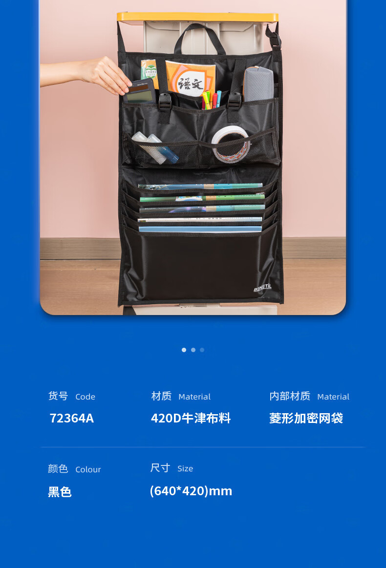델리 72364A 저장 책 교수형 가방 책상 책 교수형 가방 다기능 책 스탠드 인공물 대용량 책 가방 보관스토어 가기