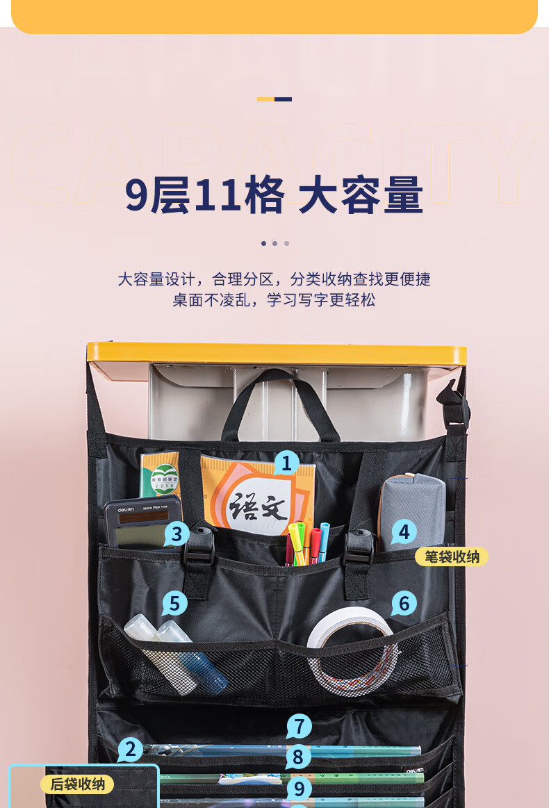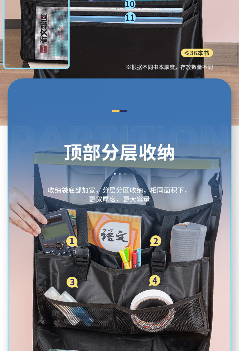 델리 72364A 저장 책 교수형 가방 책상 책 교수형 가방 다기능 책 스탠드 인공물 대용량 책 가방 보관