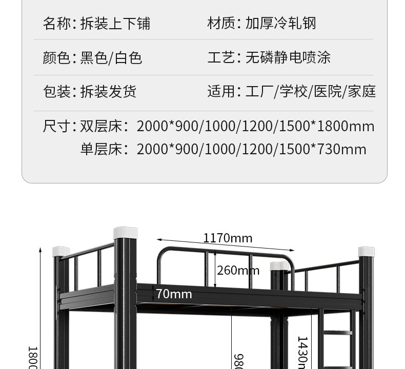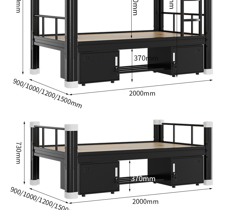 • 침대판 + 매트리스 + 침대 밑 수납장을 갖춘 두껍고 대담한 900 블랙 더블 레이어
