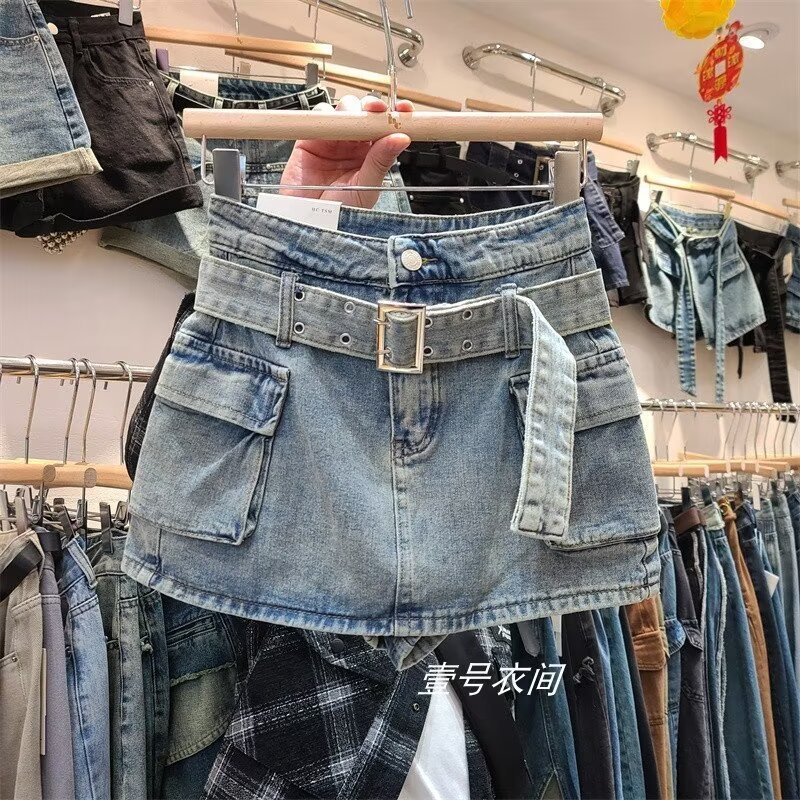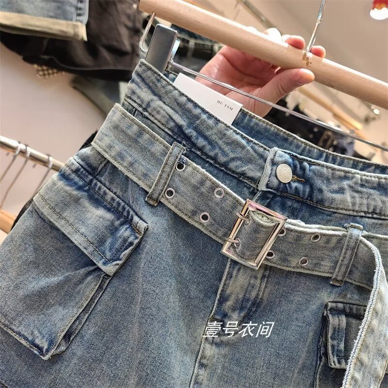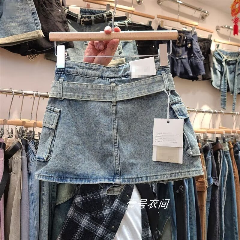 유럽 대형 포켓 세탁기 빈티지 데님 스커트 2024 여름 새로운 스트레치 슬림 핏 A 라인 힙 스커트 트렌디스토어 가기