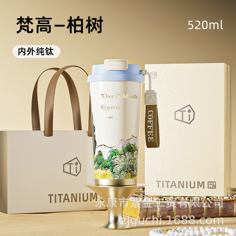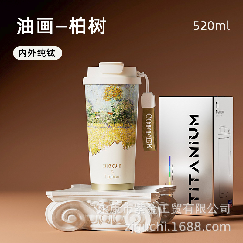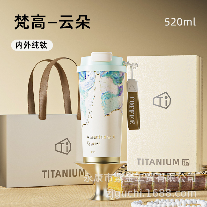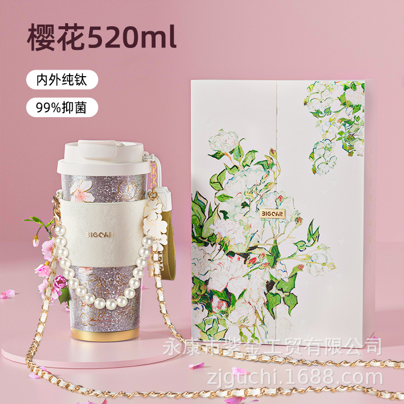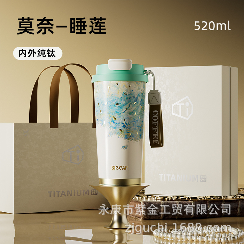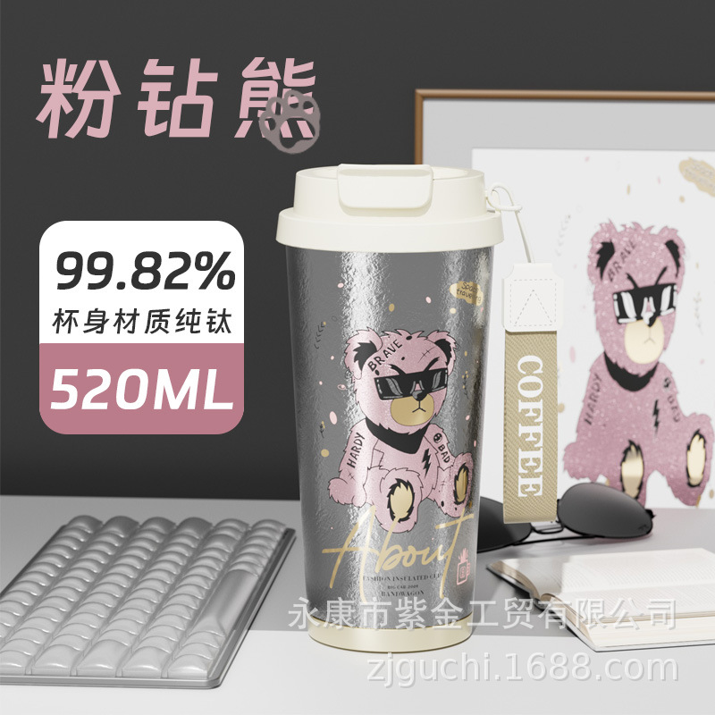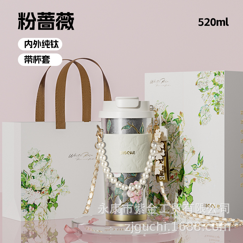 신형 순수 티타늄 보온 빨대컵 여성용 럭셔리 고급 휴대용 보냉컵 고급스러운 차량용 맞춤형 커피컵스토어 가기