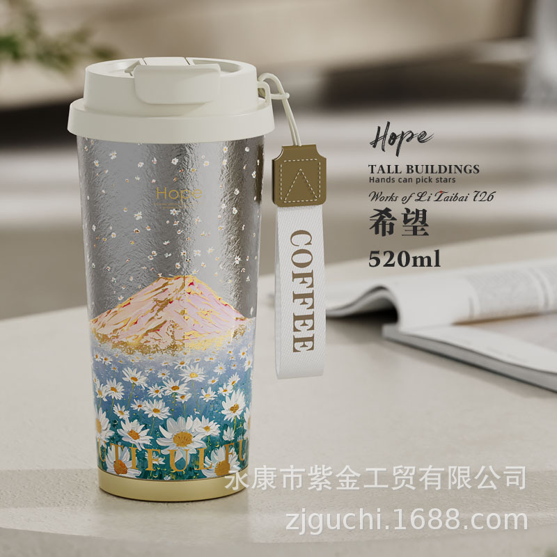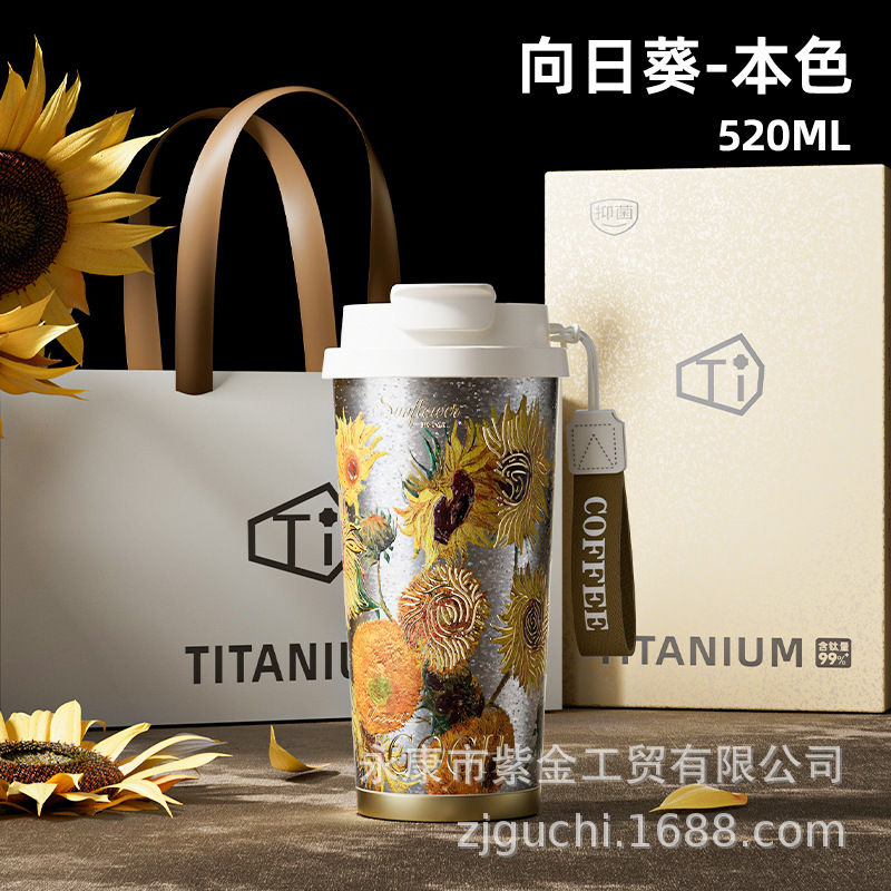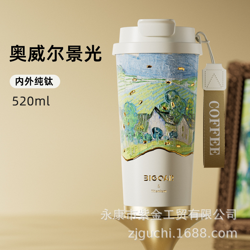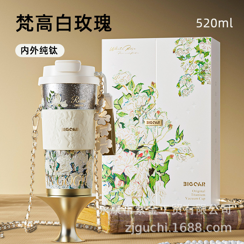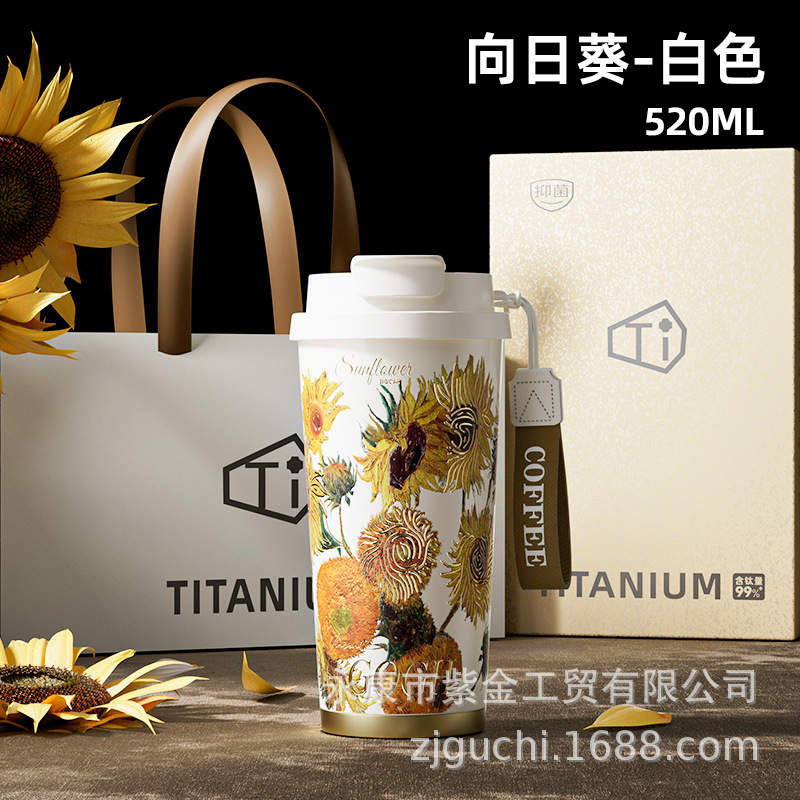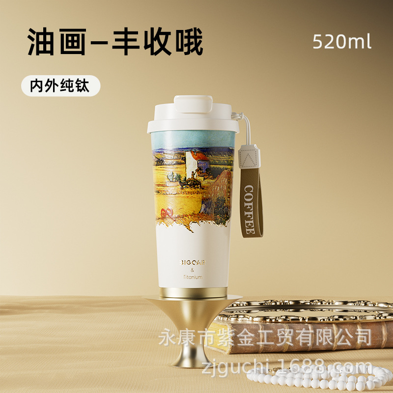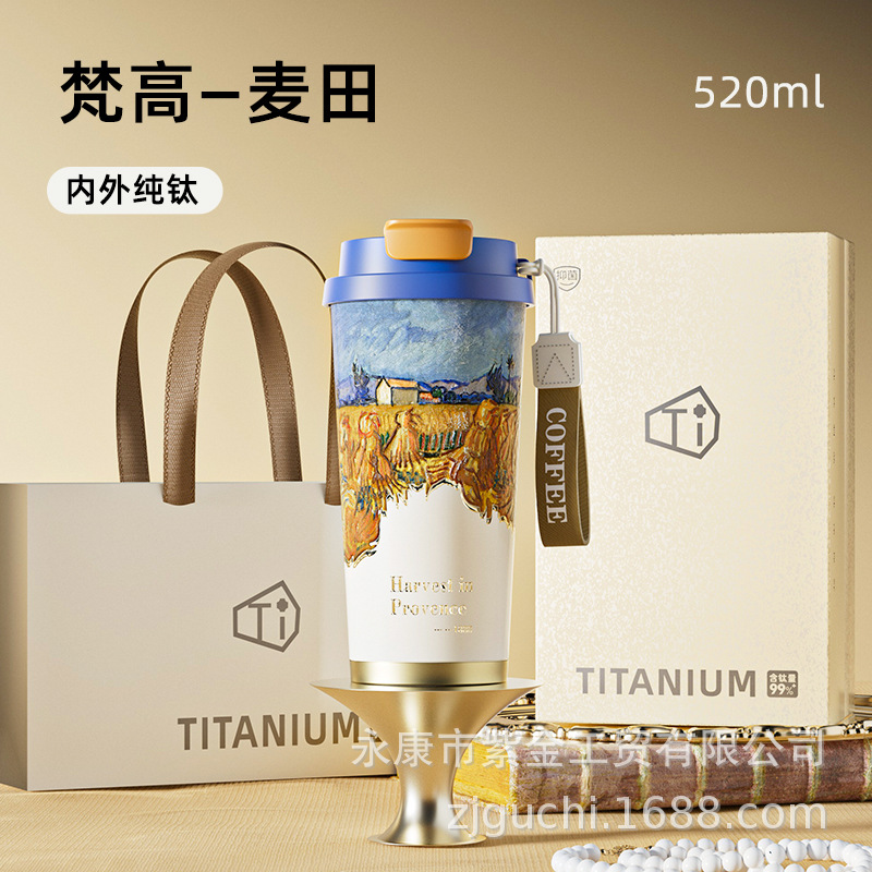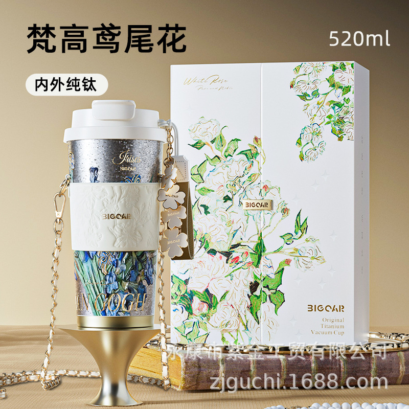 신형 순수 티타늄 보온 빨대컵 여성용 럭셔리 고급 휴대용 보냉컵 고급스러운 차량용 맞춤형 커피컵스토어 가기