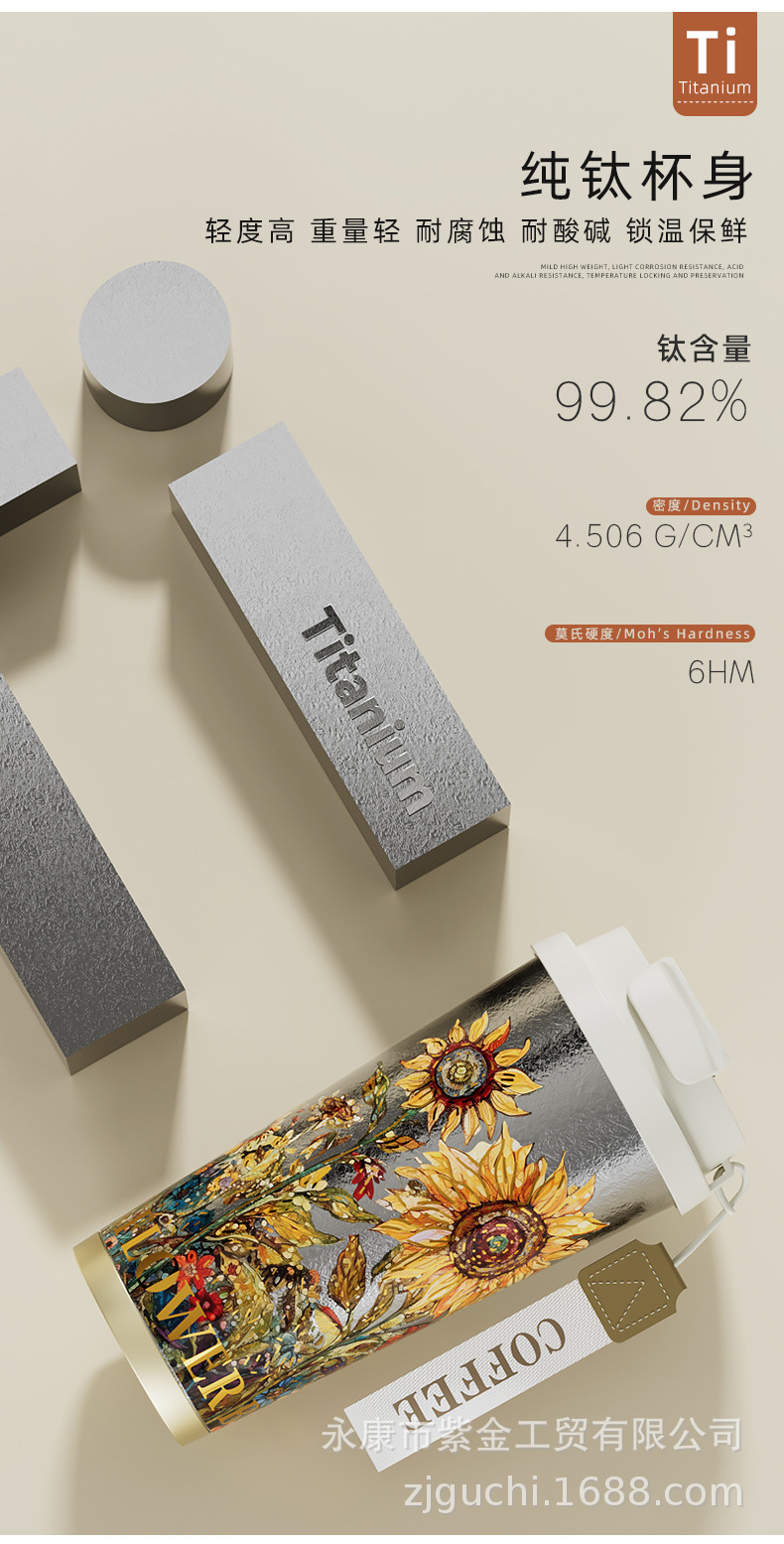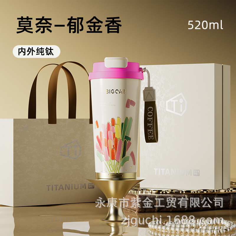 신형 순수 티타늄 보온 빨대컵 여성용 럭셔리 고급 휴대용 보냉컵 고급스러운 차량용 맞춤형 커피컵