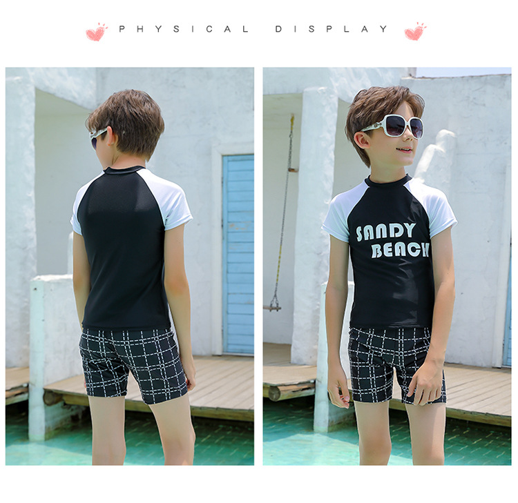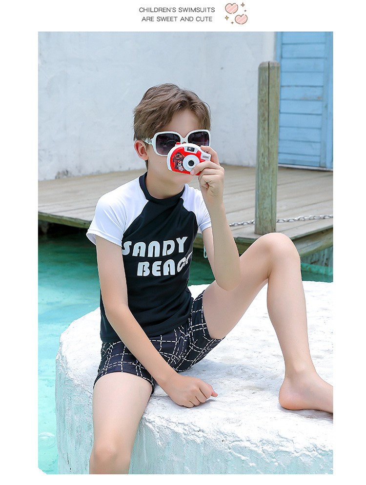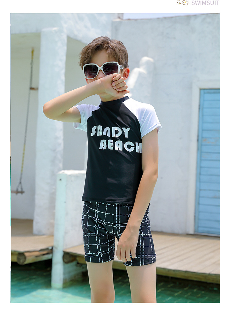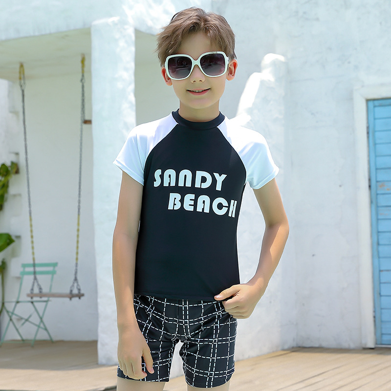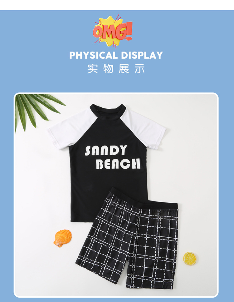 2024 새로운 어린이 수영복 소년 청소년 트렁크 수영 남자 대형 및 중형 어린이 분할 태양 방지 빠른 건조 수영복