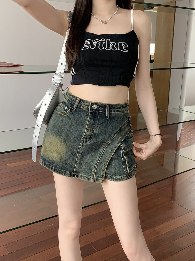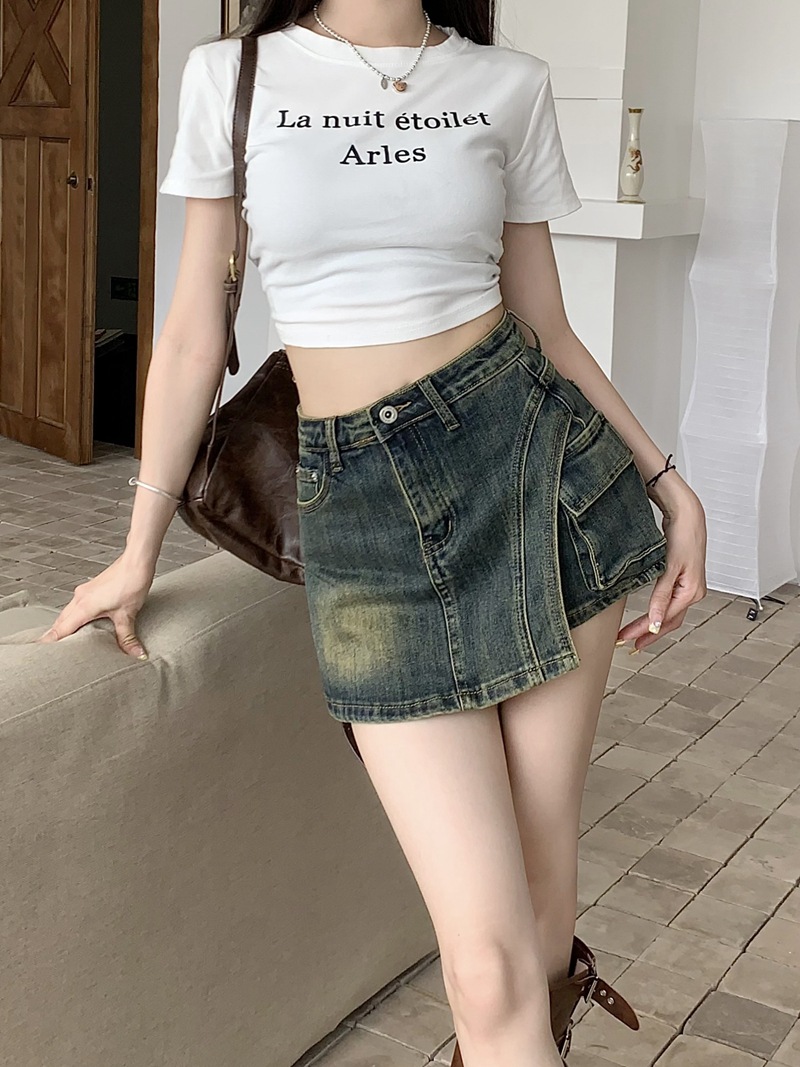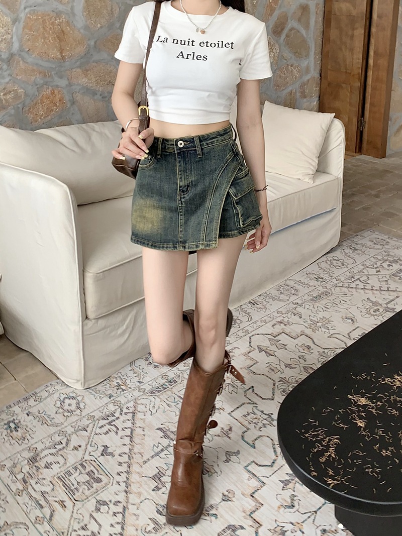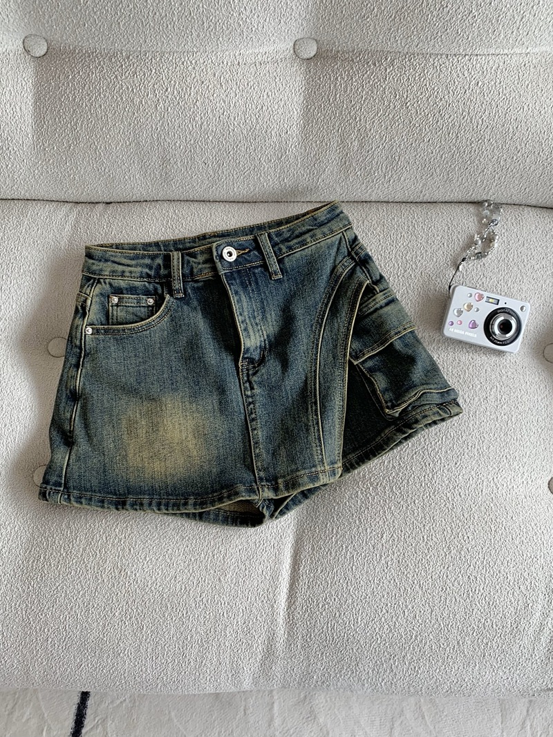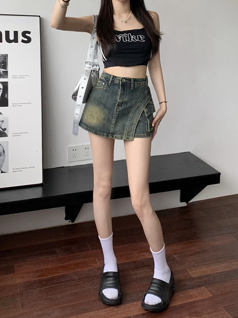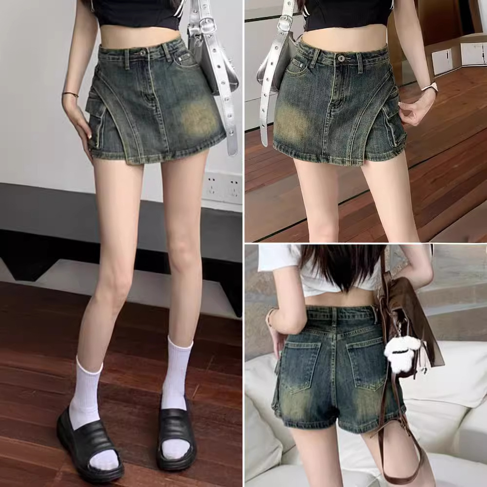 불규칙한 데님 치마 여자 봄 2024 새로운 A 라인 스커트 높은 허리 스커트 엉덩이 스커트 바지 스커트스토어 가기