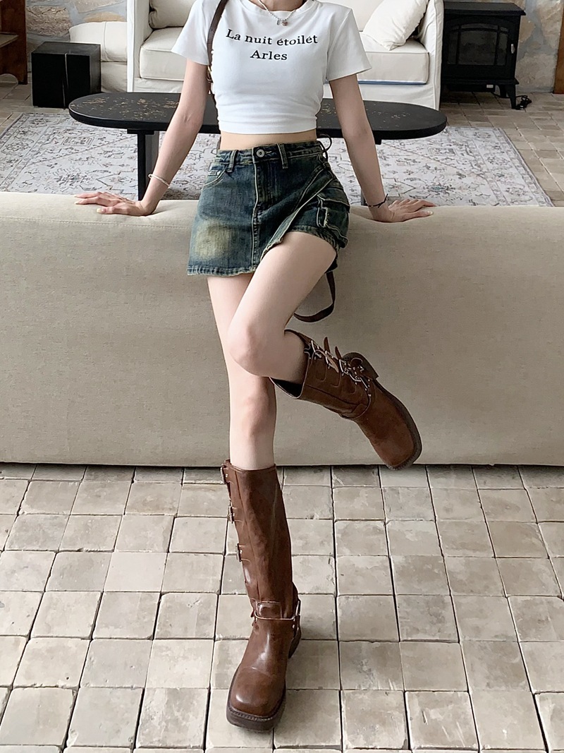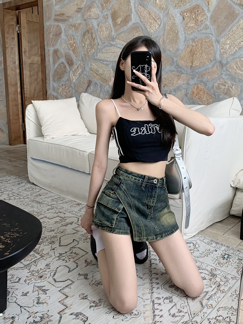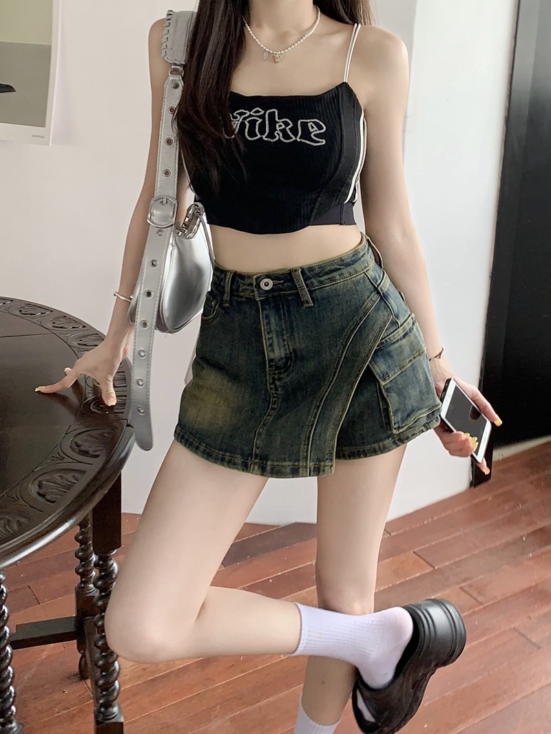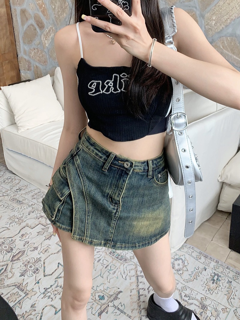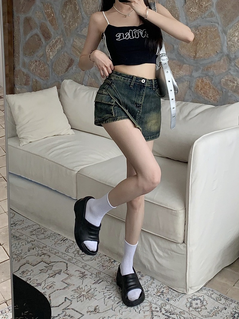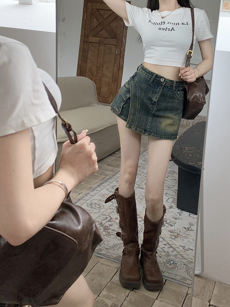 불규칙한 데님 치마 여자 봄 2024 새로운 A 라인 스커트 높은 허리 스커트 엉덩이 스커트 바지 스커트스토어 가기