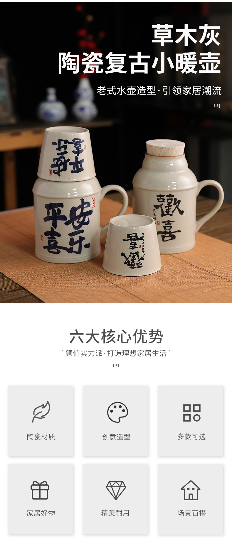 창조적 인 식물 애쉬 빈티지 구운 꽃 세라믹 작은 보온병 생활 뜨거운 물 병 뚜껑 차 컵 스튜 차 주전자