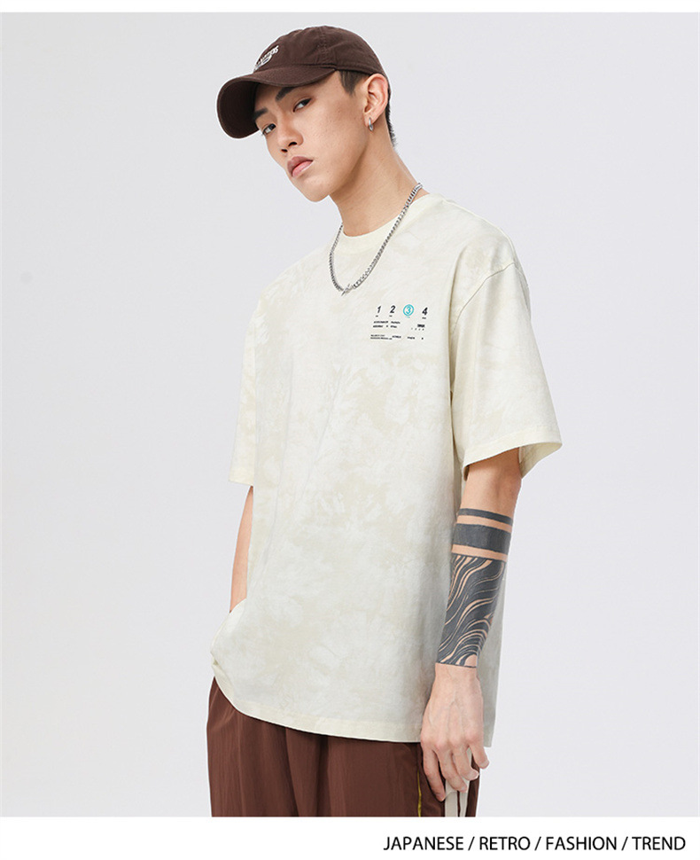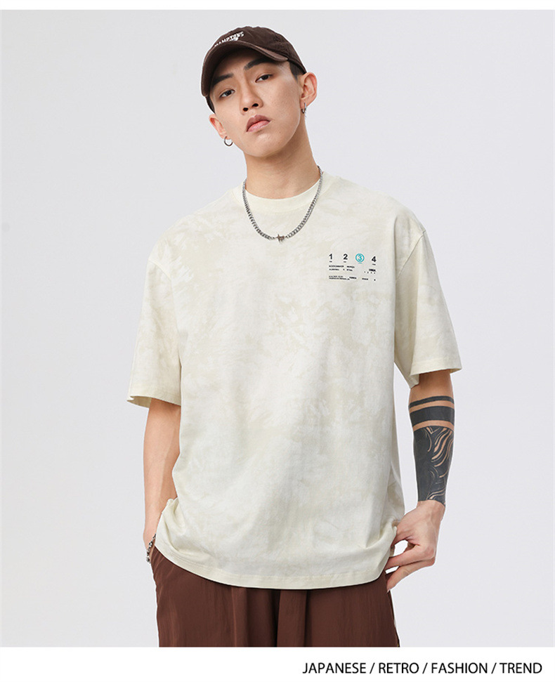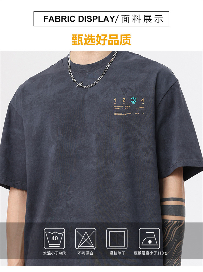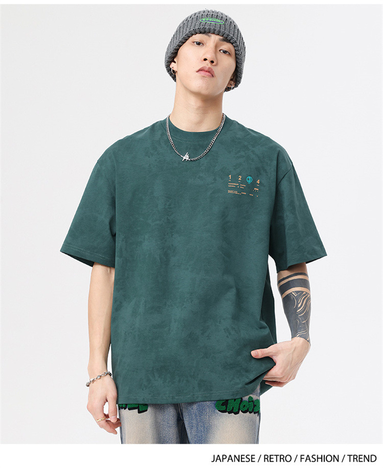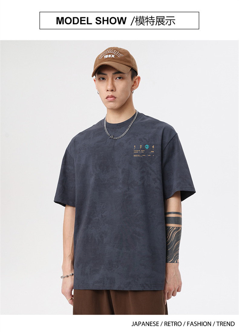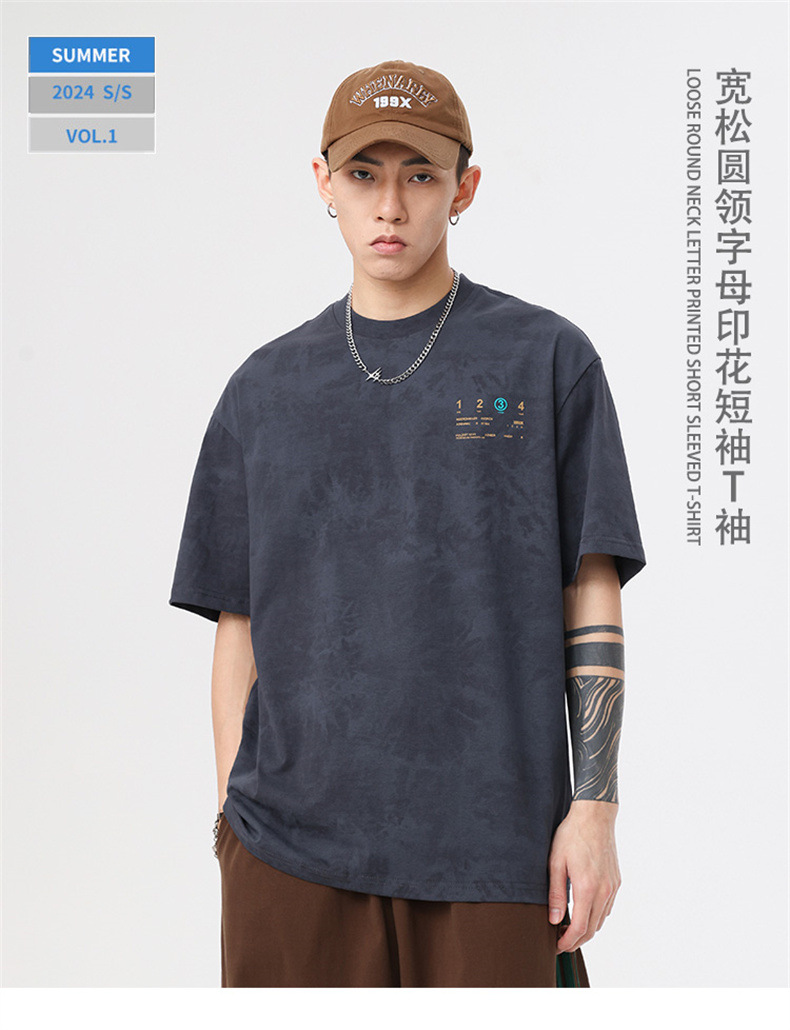 230g 편지 인쇄 반팔 티셔츠 남성 여름 패션 브랜드 플러스 사이즈 미국 느슨한 반소매 남성 자수 티셔츠스토어 가기