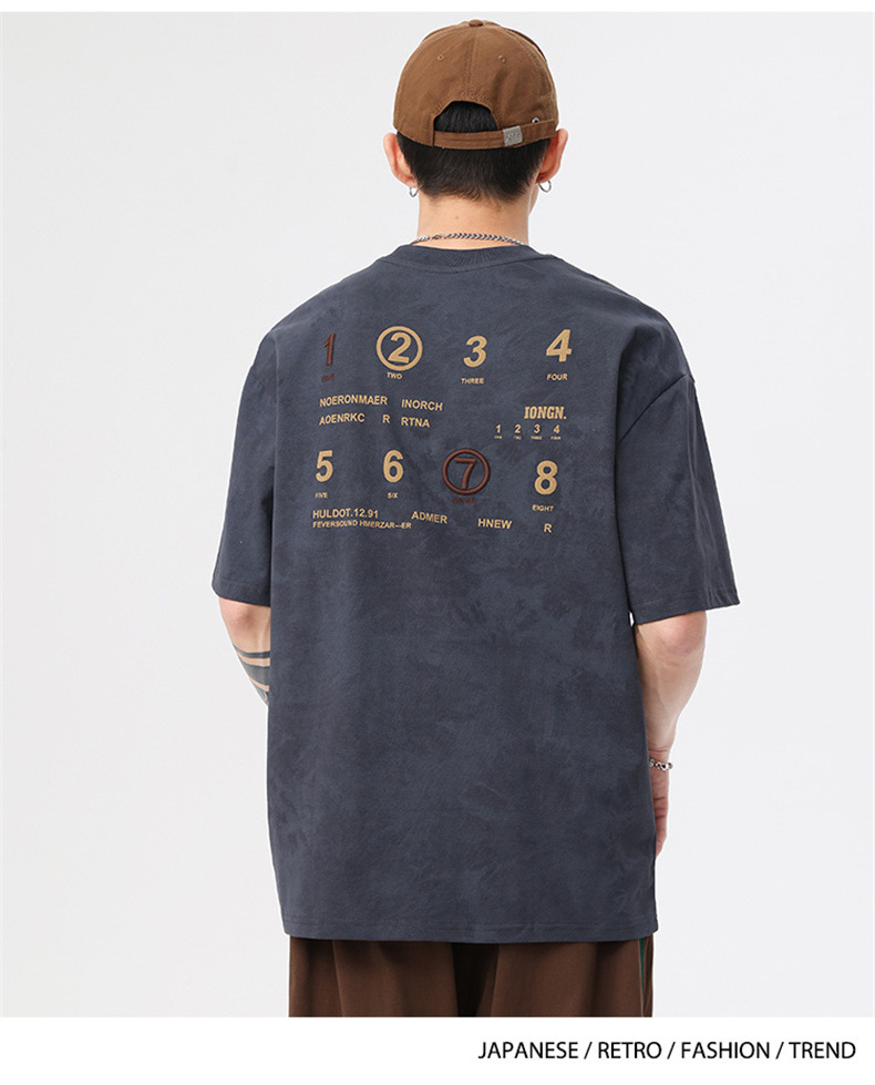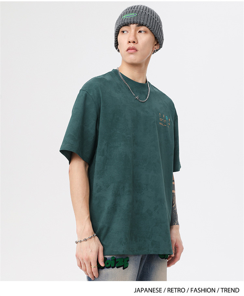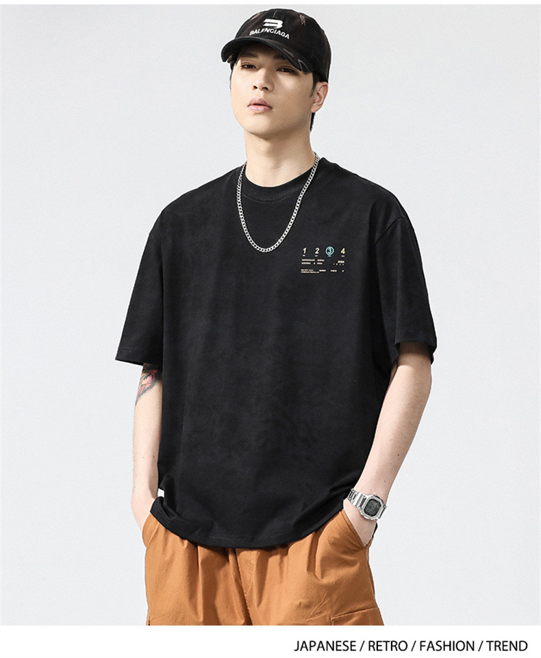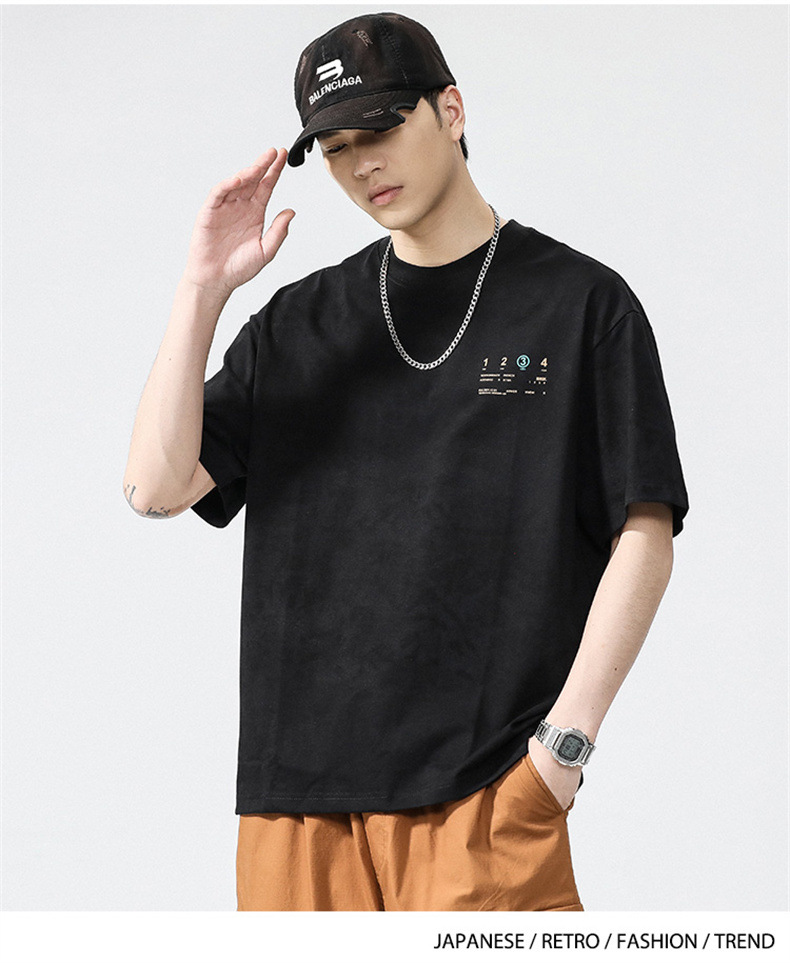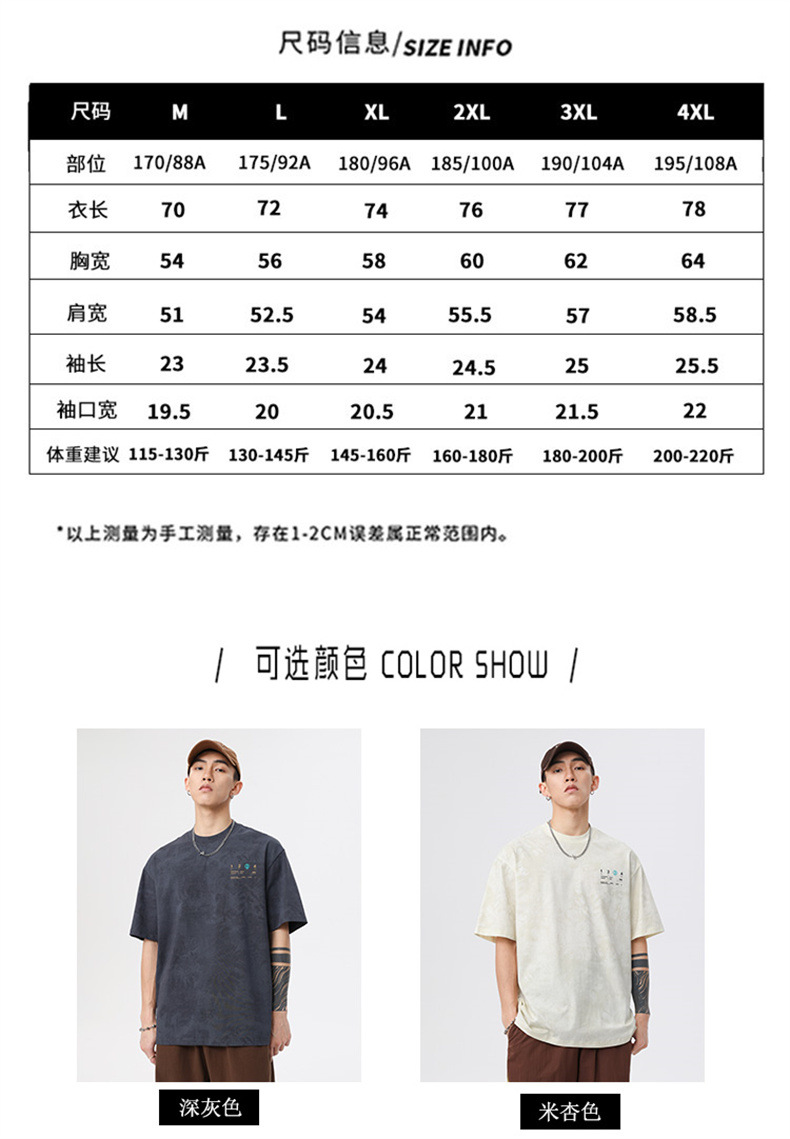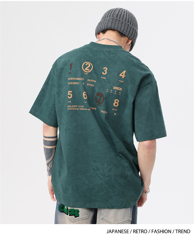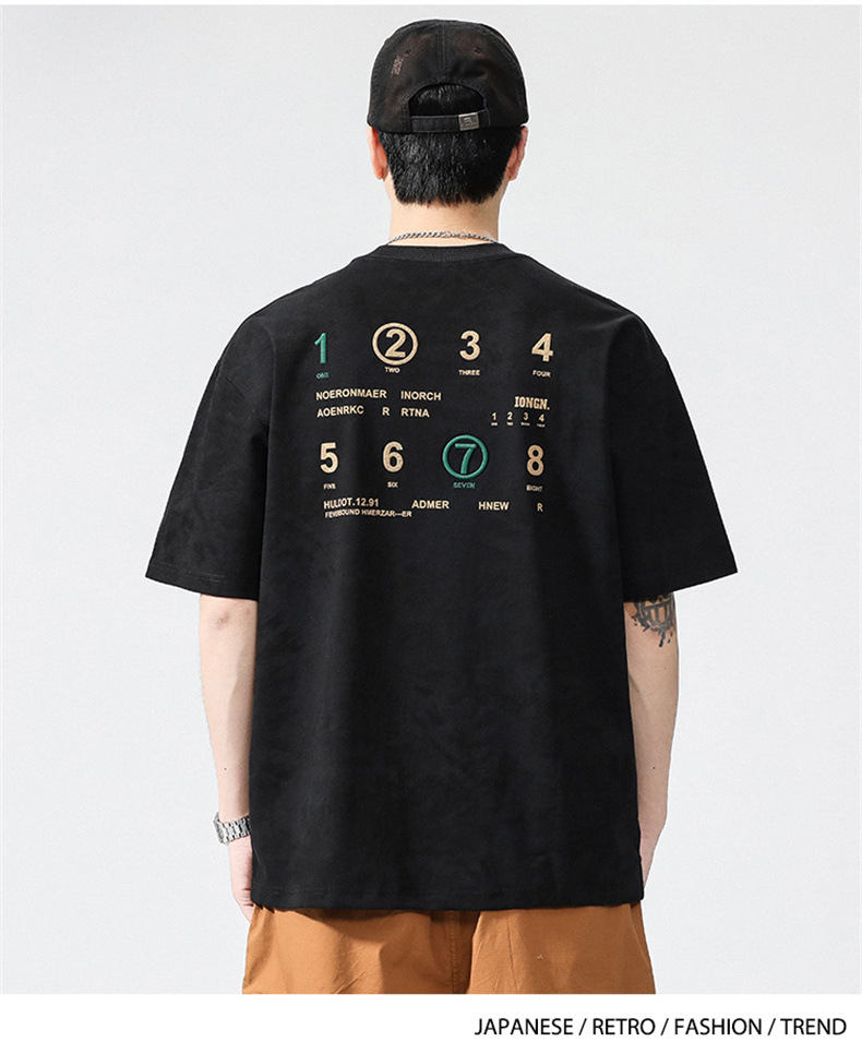 230g 편지 인쇄 반팔 티셔츠 남성 여름 패션 브랜드 플러스 사이즈 미국 느슨한 반소매 남성 자수 티셔츠스토어 가기