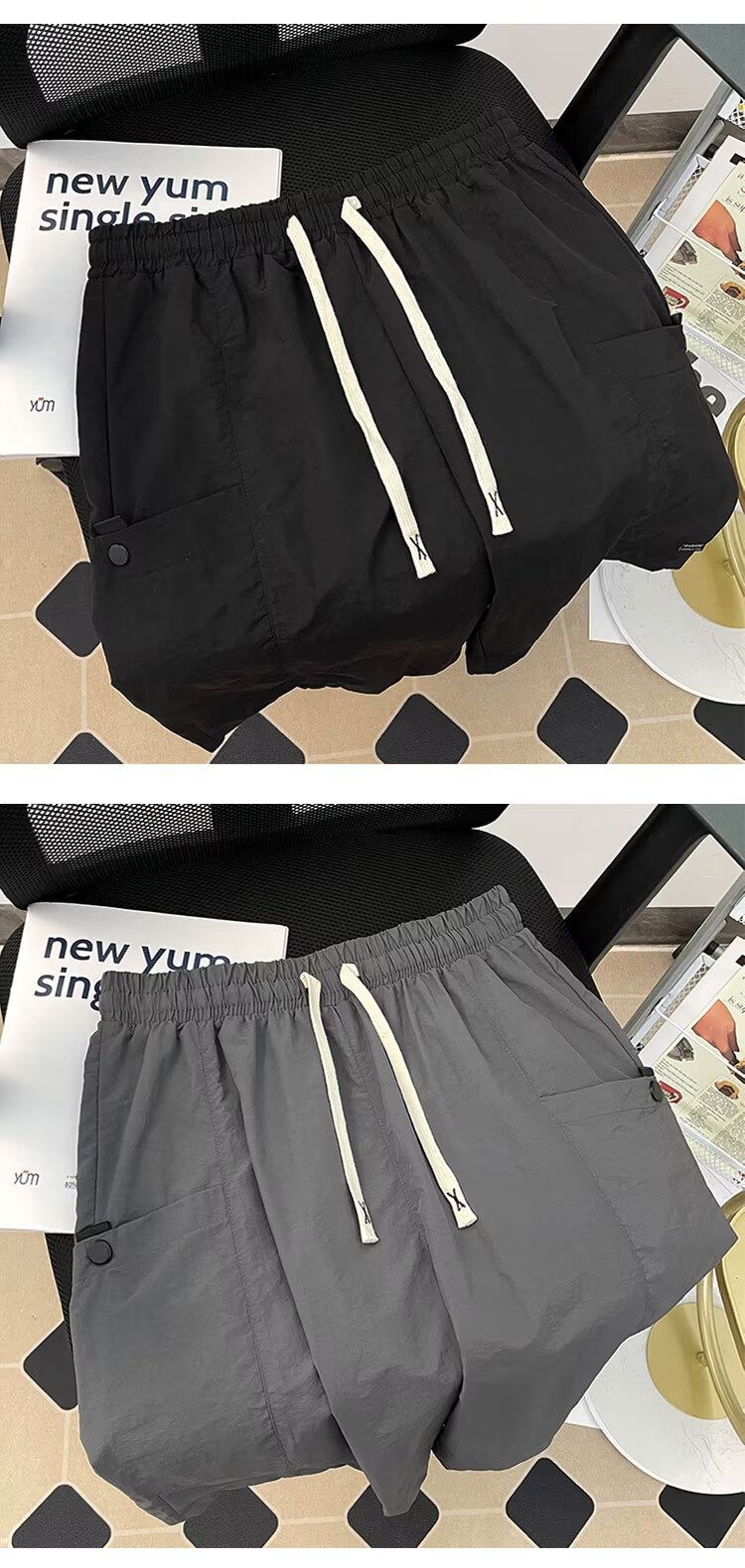 여름 통기성 올 매치 기능성 아메리칸 스타일 캐주얼 중간 길이 바지 남자 캐주얼 얇은 스트레이트 레그 스포츠 빠른 건조 바지 트렌디