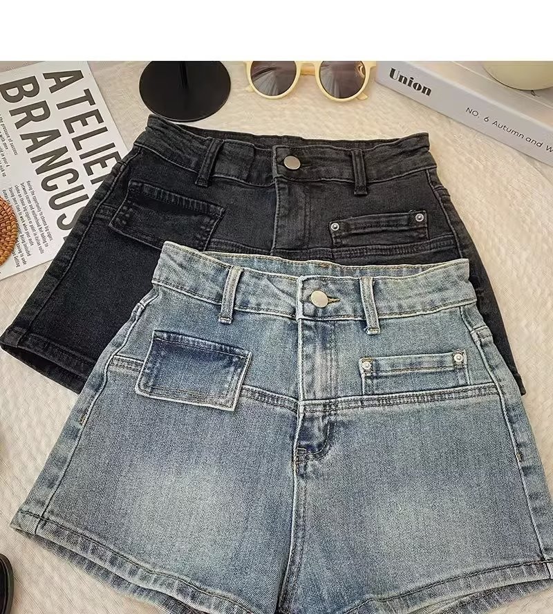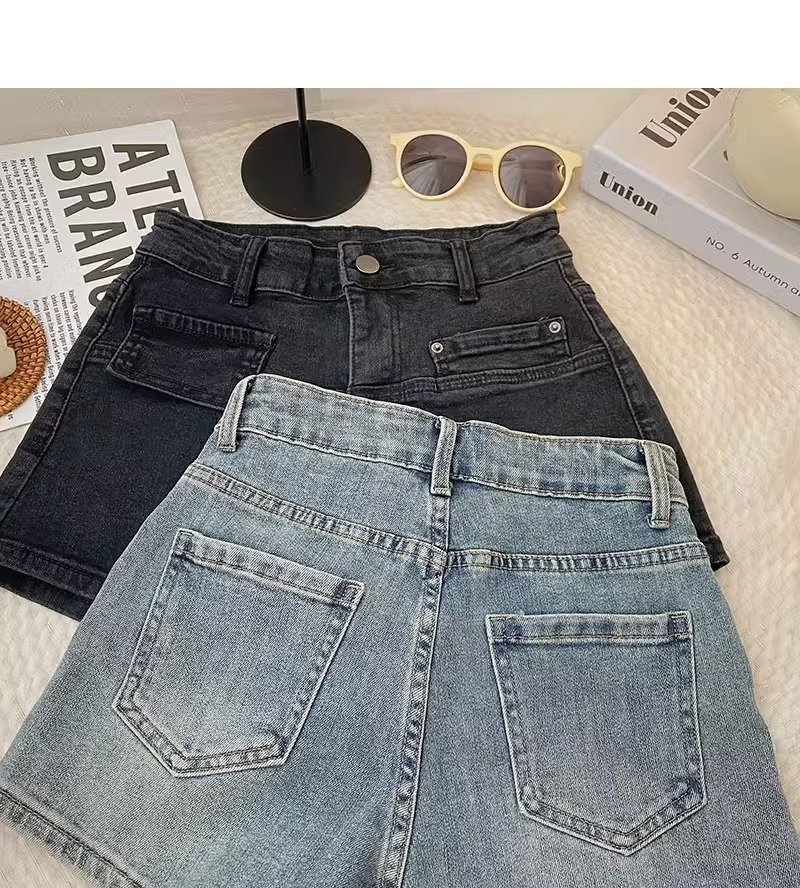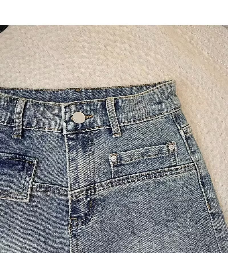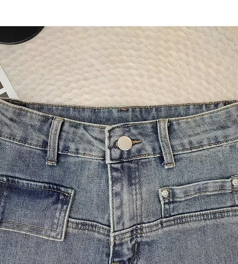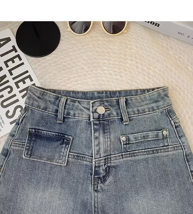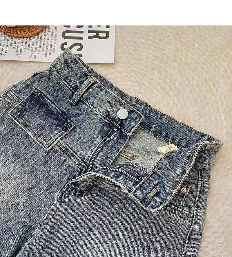 레트로 스트레치 데님 반바지 여자 봄과 여름 2023 새로운 한국식 Ins 올매치 슬리밍 하이 허리 와이드 레그 바지스토어 가기