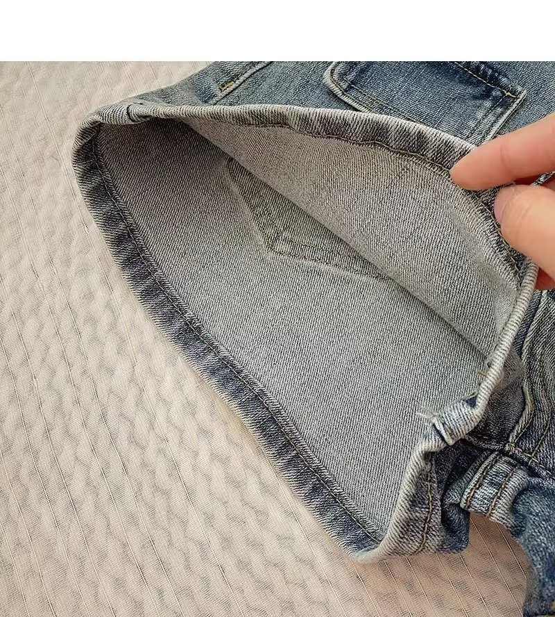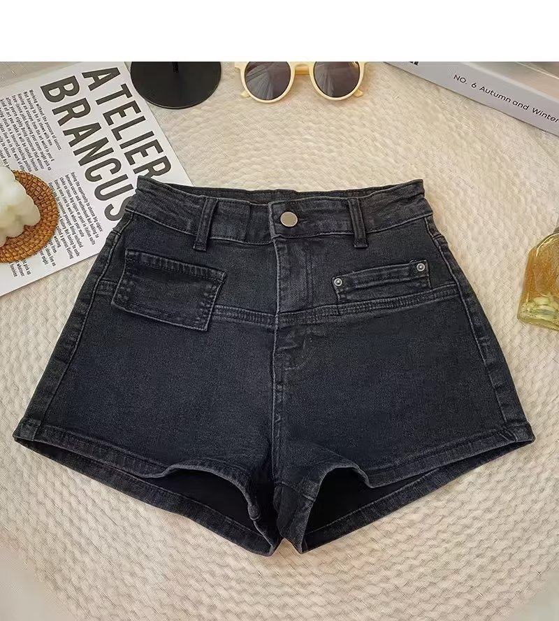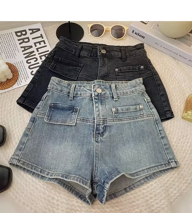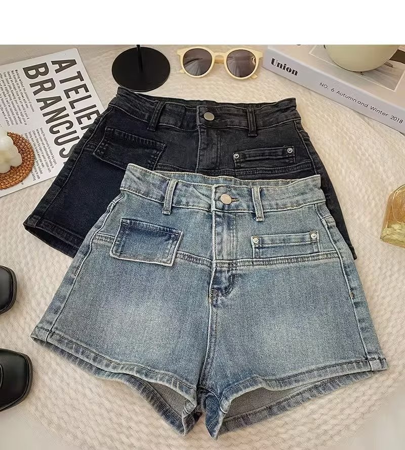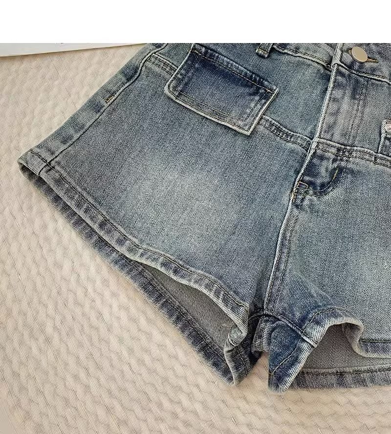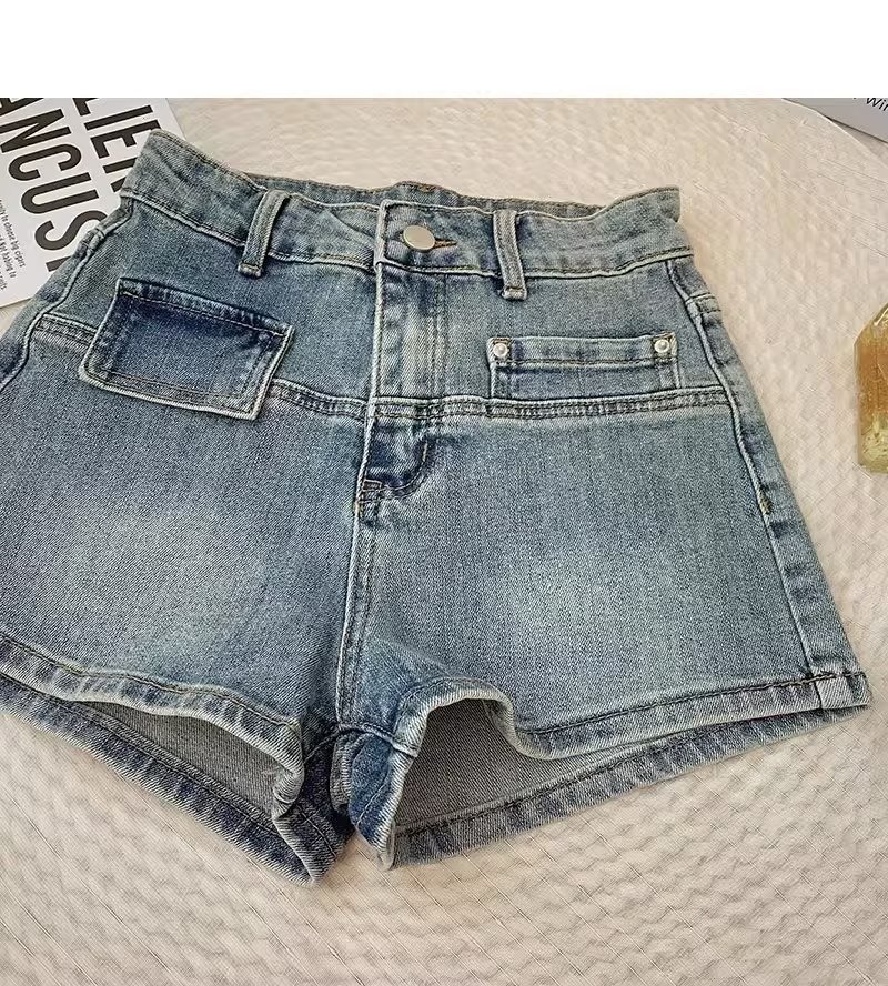 레트로 스트레치 데님 반바지 여자 봄과 여름 2023 새로운 한국식 Ins 올매치 슬리밍 하이 허리 와이드 레그 바지스토어 가기