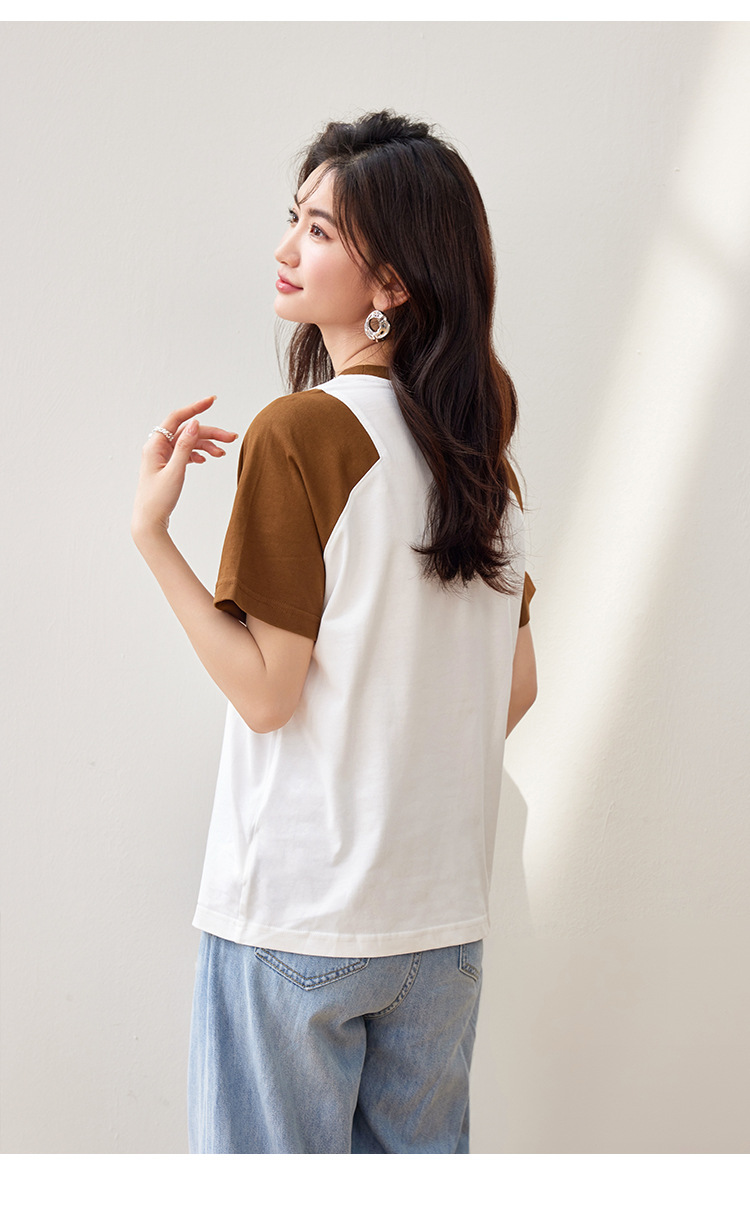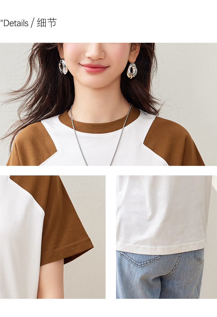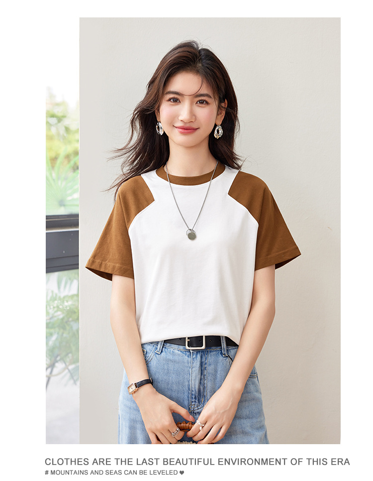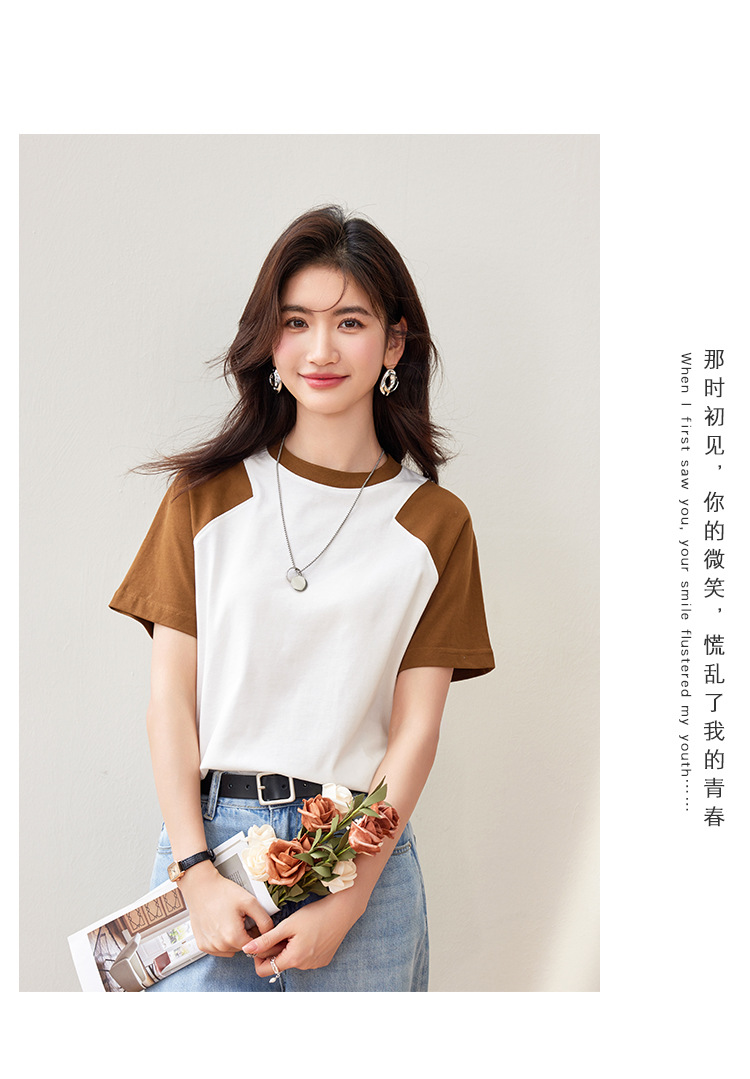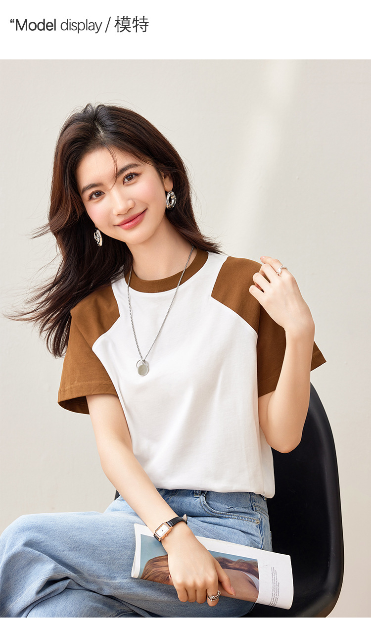 반팔 티셔츠 여성용 2024 년 여름 새로운 한국식 디자인 센스 심플 콘트라스트 컬러 느슨한 슬림 핏 라운드 넥 Ins 트렌디 탑스토어 가기