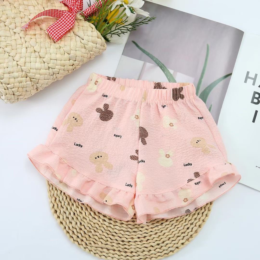 소녀 반바지 2024 여름 새로운 도착 웨스턴 스타일 올 매치 베이비 걸스 여름 착용 얇은 레이스 외부 어린이 반바지 머리