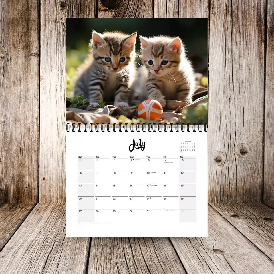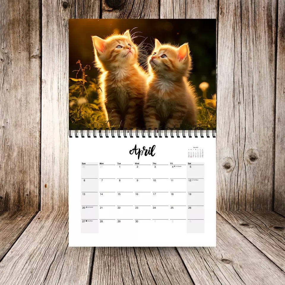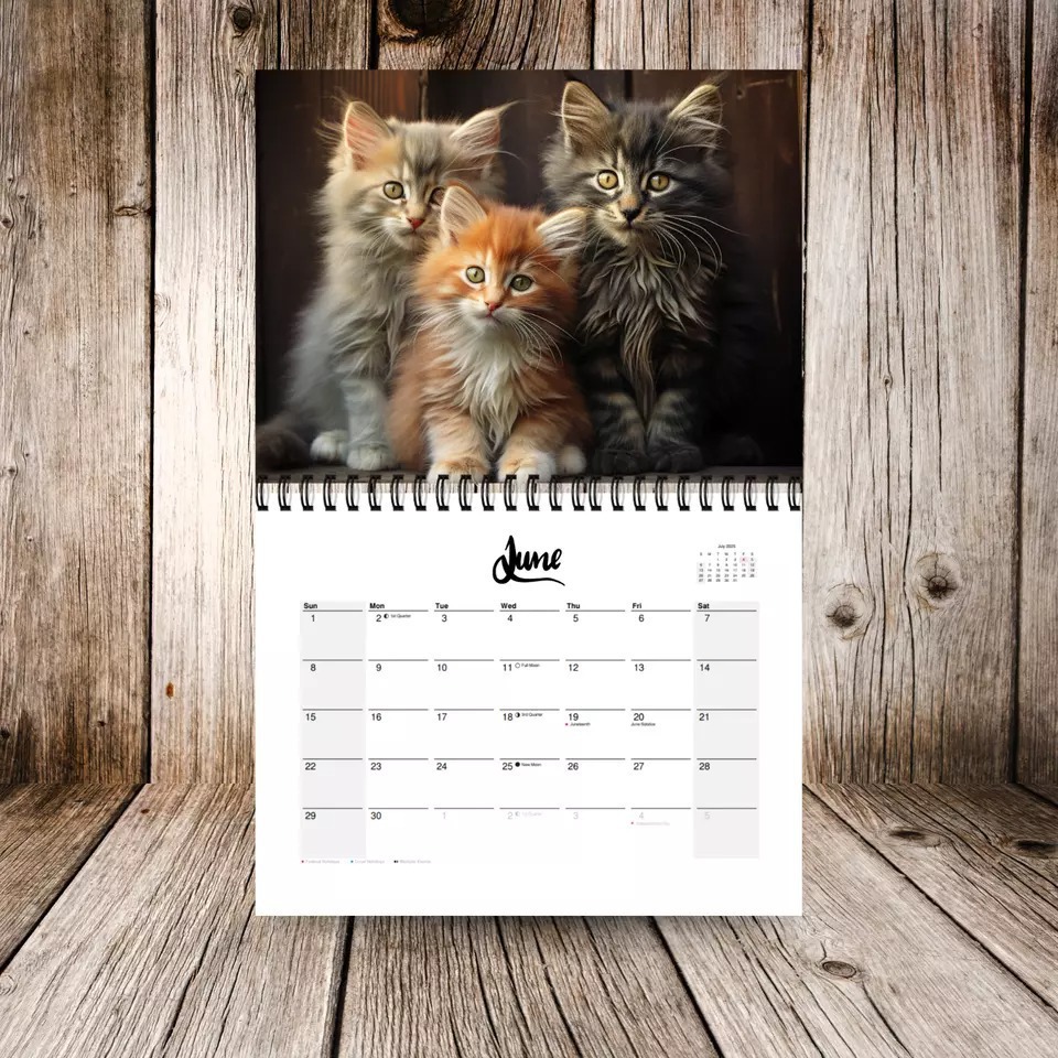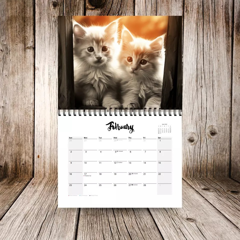 국경 새 2025 키티 고양이 달력 12 개월 달력 나선형 달력 귀여운 고양이 달력 재고스토어 가기