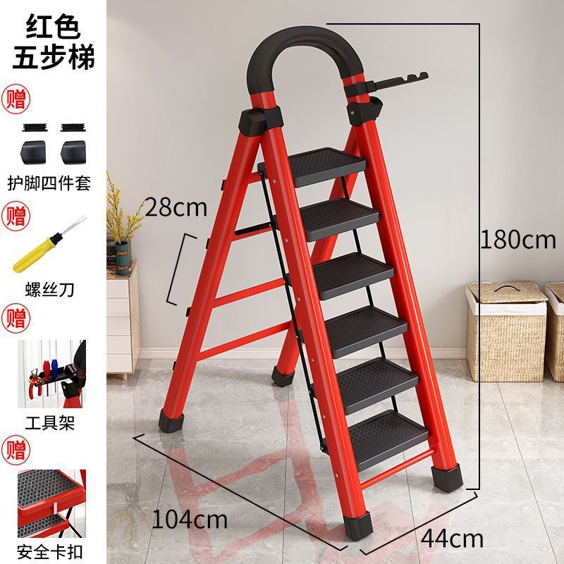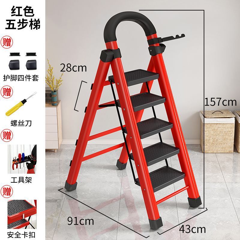 사다리 홈 접는 사다리 두꺼운 탄소 강철 헤링본 사다리 4 단계 5 단계 모바일 계단 사다리 다기능 실내 사다리