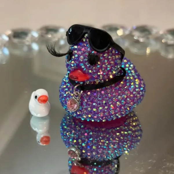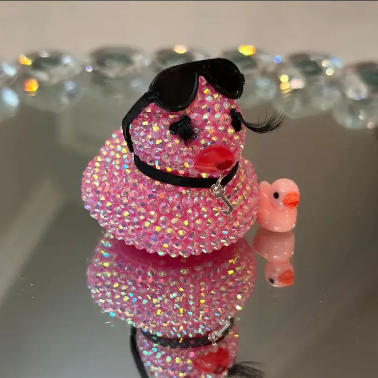 국경 간 새로운 스파클링 라인스톤 블링 오리 자동차 장식품 미니 오리