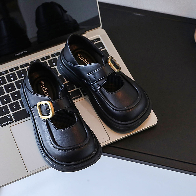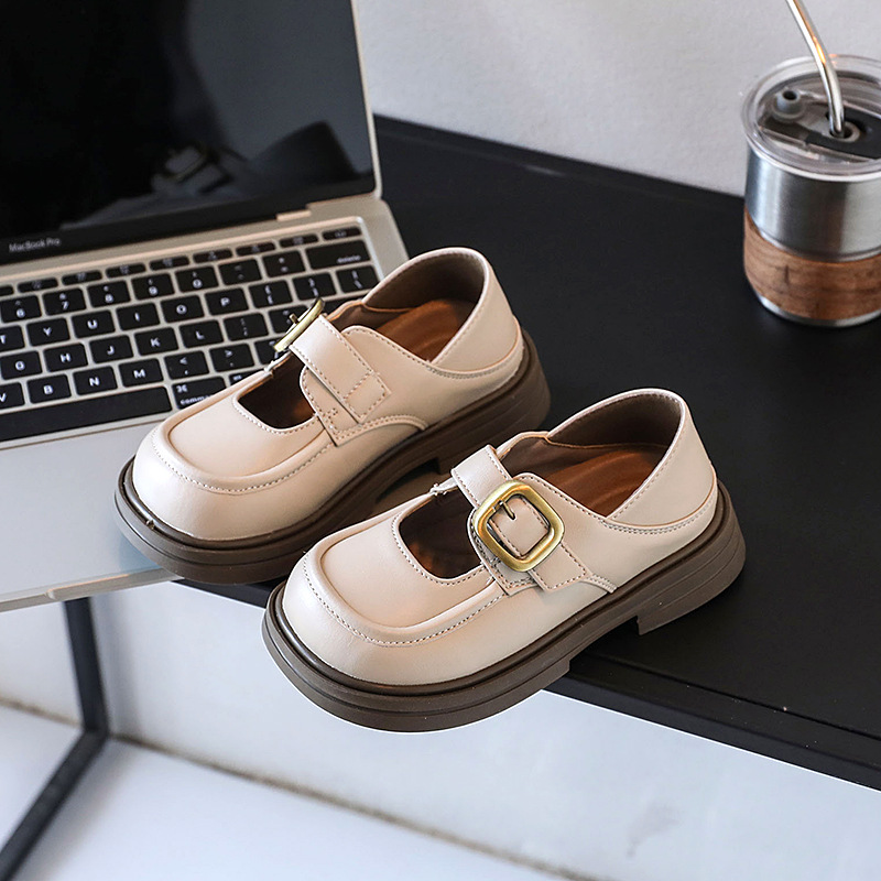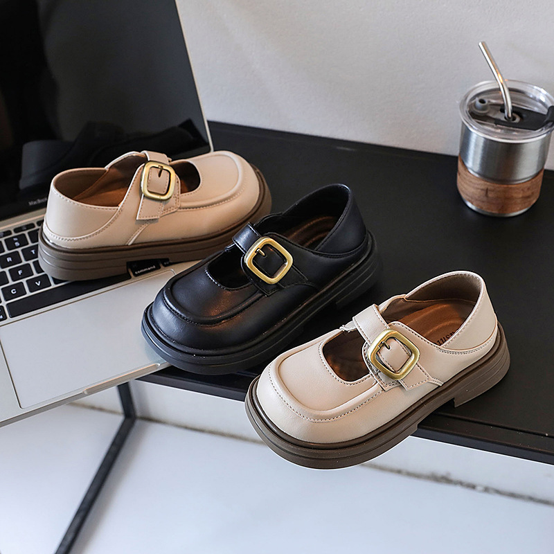소녀 가죽 신발 2024 봄과 가을 새로운 한국 스타일 소녀 부드러운 바닥 얕은 입 공주 신발 큰 아이 검은 Lefu 가죽 신발스토어 가기