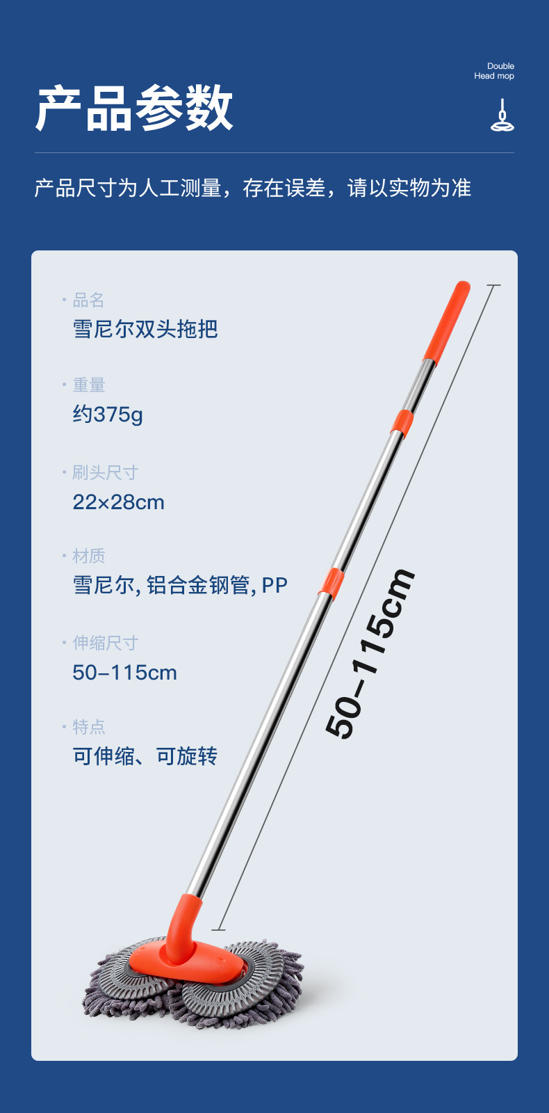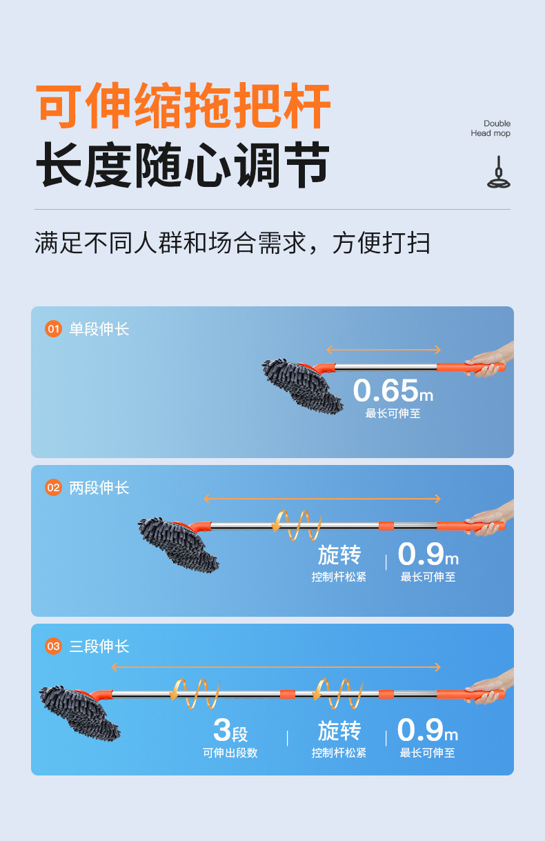 产品名称: 雪尼尔双刷头拖把