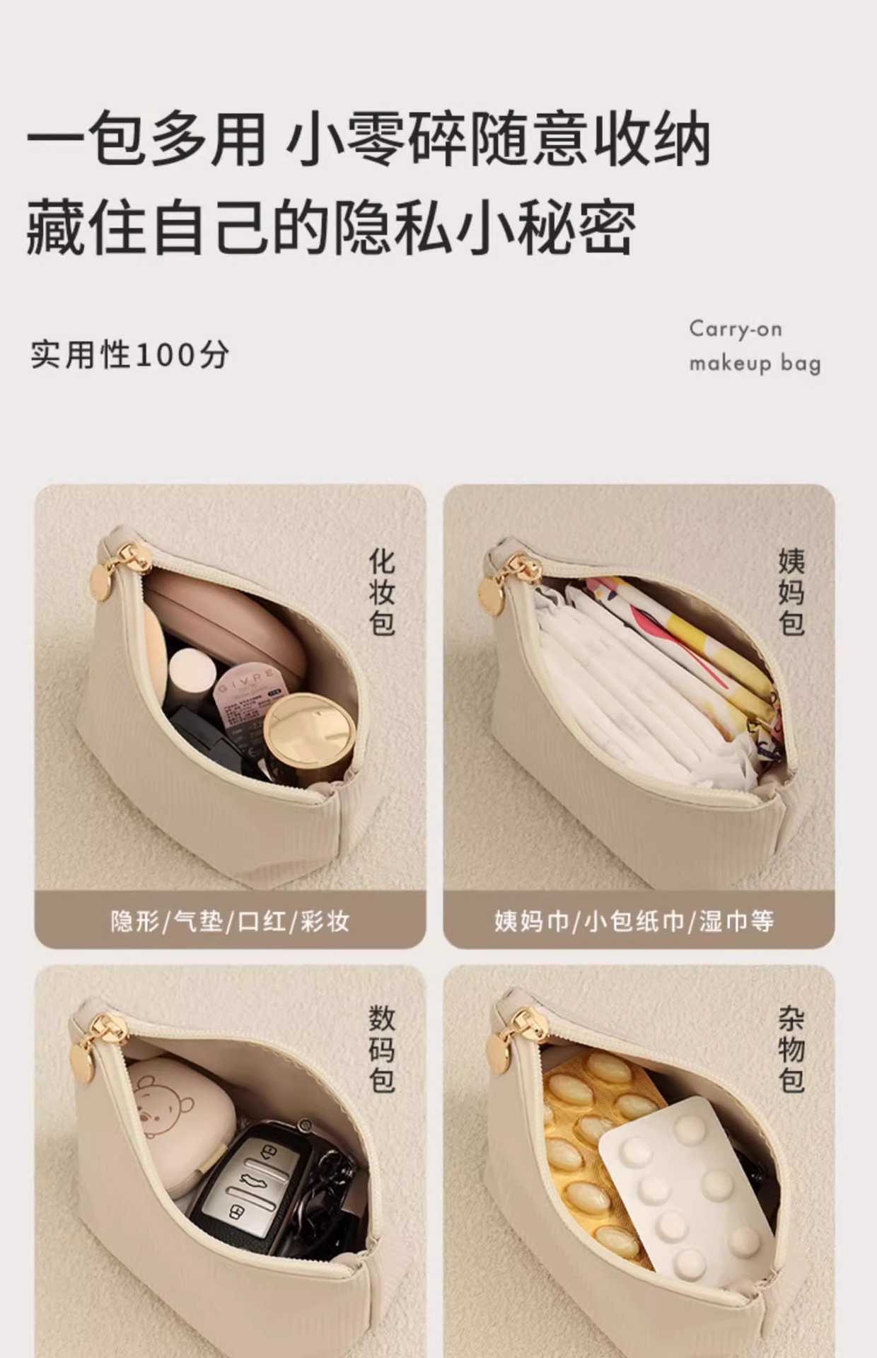 미니 메이크업 가방 여성 휴대용 2024 새로운 스타일 내부 가방 메이크업 가방 캐리 온 화장품 가방 스몰 사이즈 입 빨간 가방스토어 가기