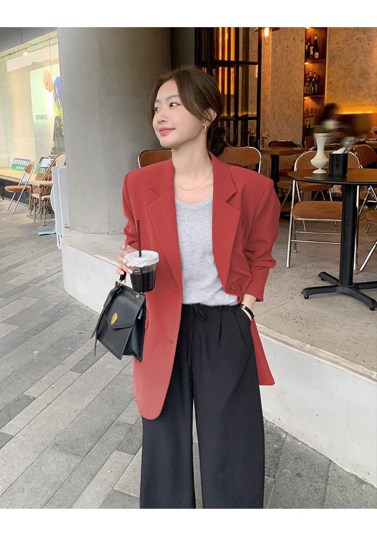 타로 퍼플 봄과 가을 새로운 세트 재킷 여성 틈새 디자인 한국 스타일 리어 스플릿 캐주얼 느슨한 작은 세트