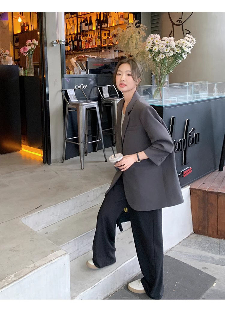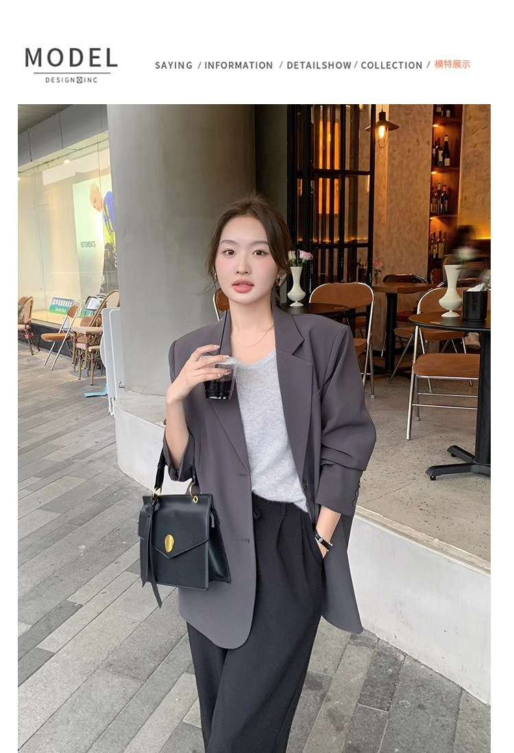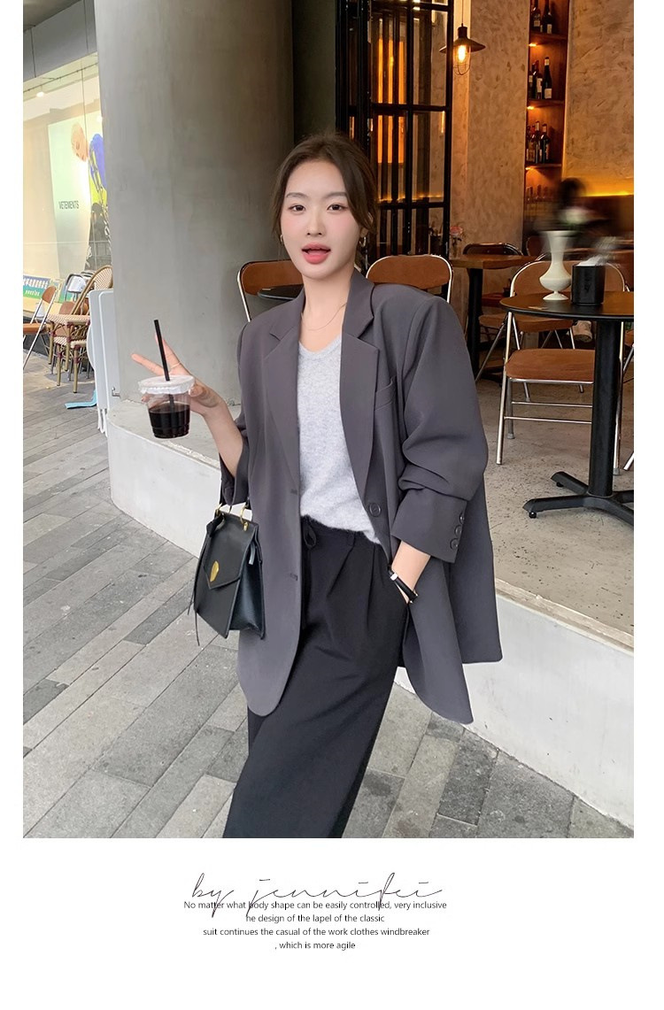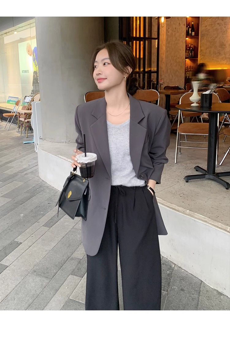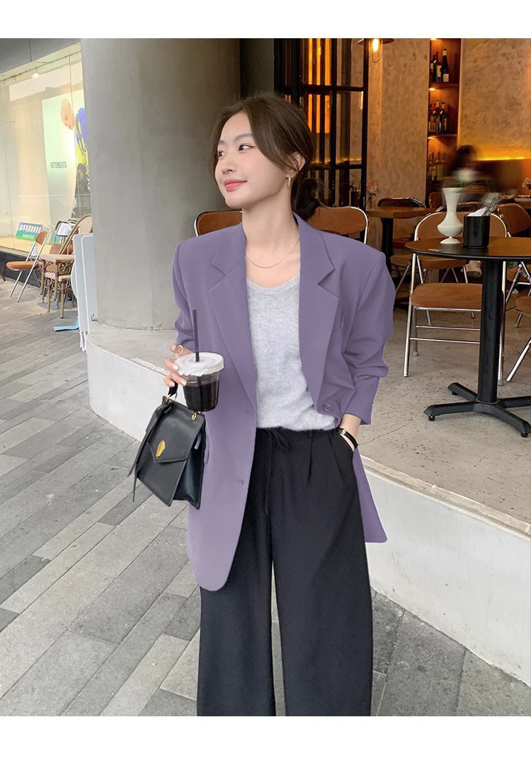 타로 퍼플 봄과 가을 새로운 세트 재킷 여성 틈새 디자인 한국 스타일 리어 스플릿 캐주얼 느슨한 작은 세트스토어 가기