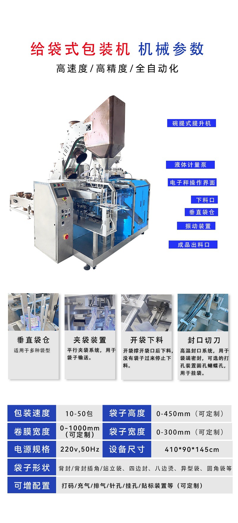 완전 자동 콩나물 포장기, 포장된 제품을 자동으로 액상 소스와 함께 포장하는 계량 포장기