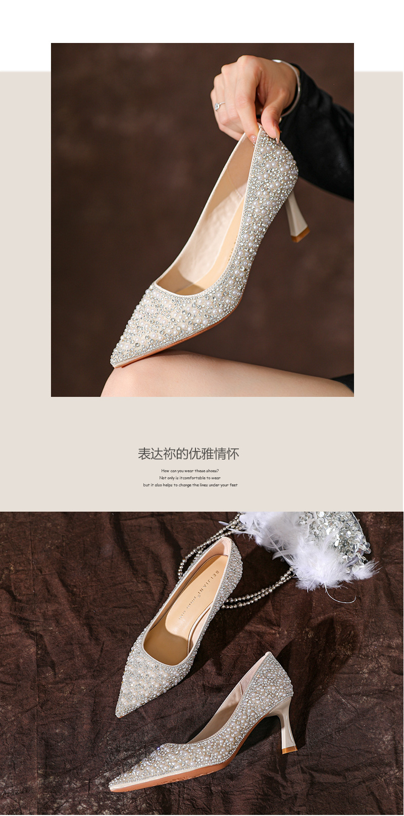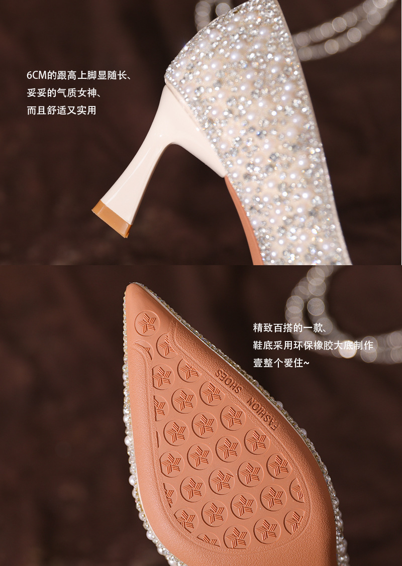 3358-7 Sheepskin Rhinestone Pearl Xiuhe 하이힐 슈즈 여성용 하이힐 신부 들러리 웨딩 원피스 신부 웨딩 슈즈 가을스토어 가기
