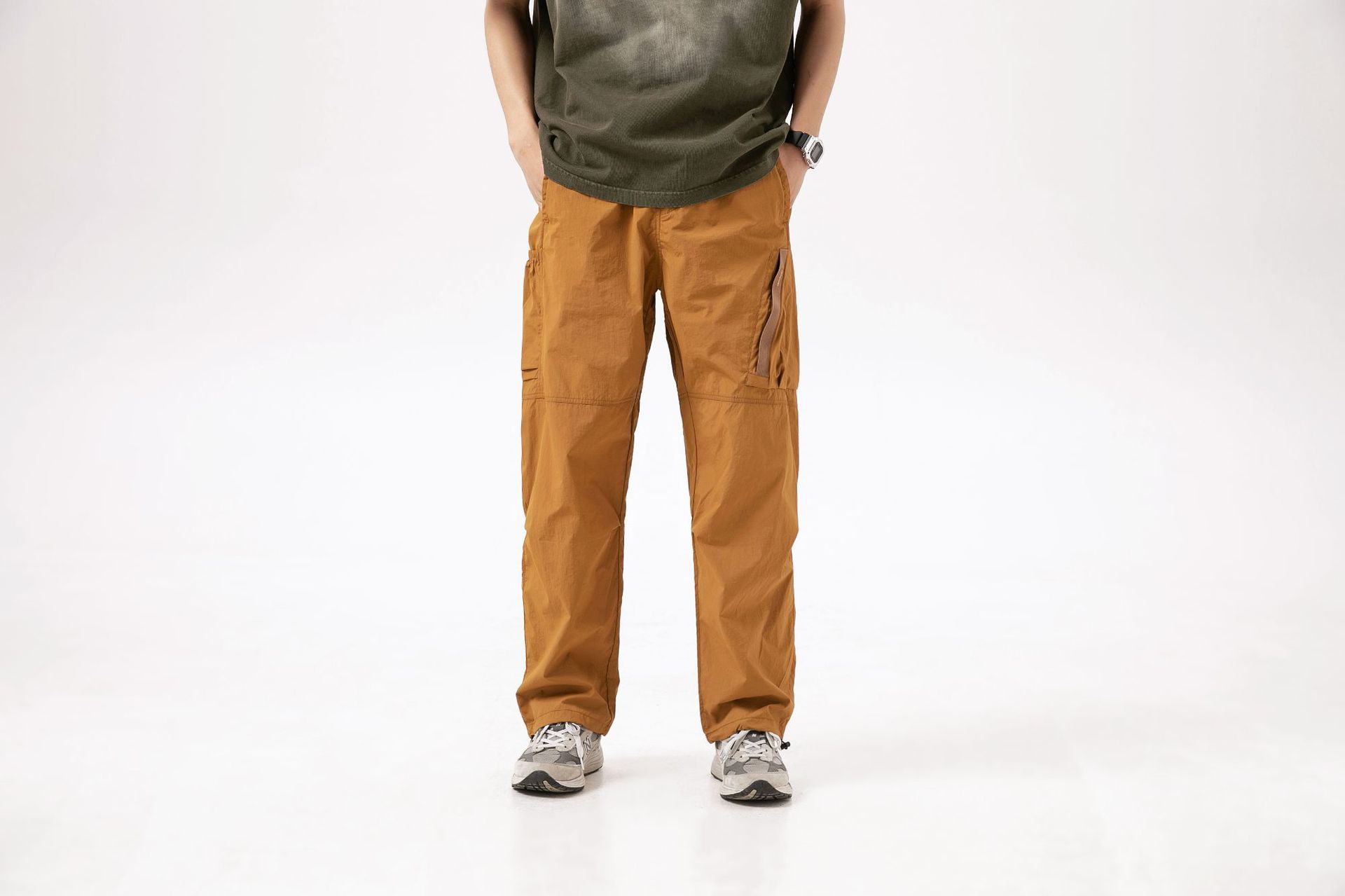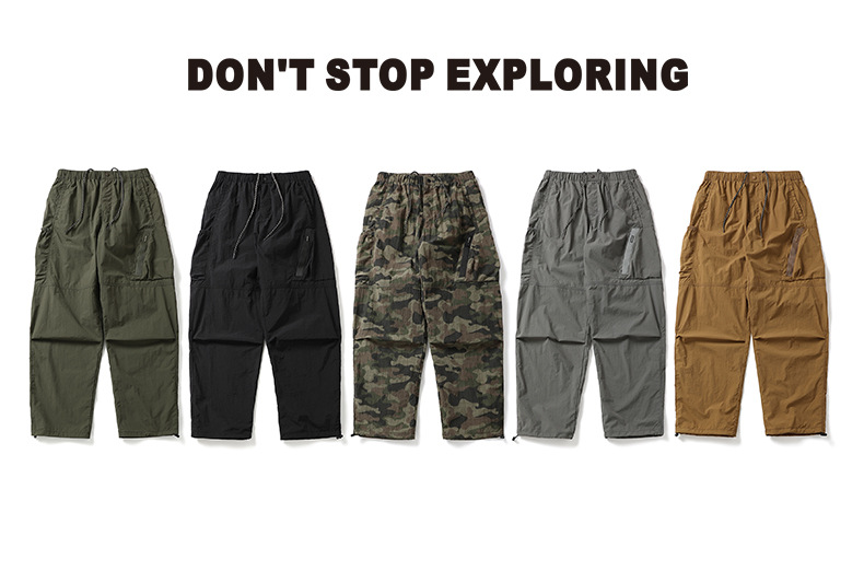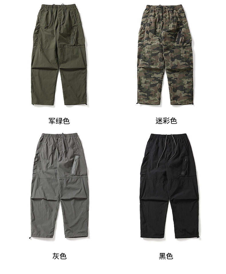 트렌디 브랜드 속건성 위장 낙하산 바지 남성용 속건성 가벼운 작업복 캐주얼 바지 졸라매는 끈 캐주얼 낙하산 바지