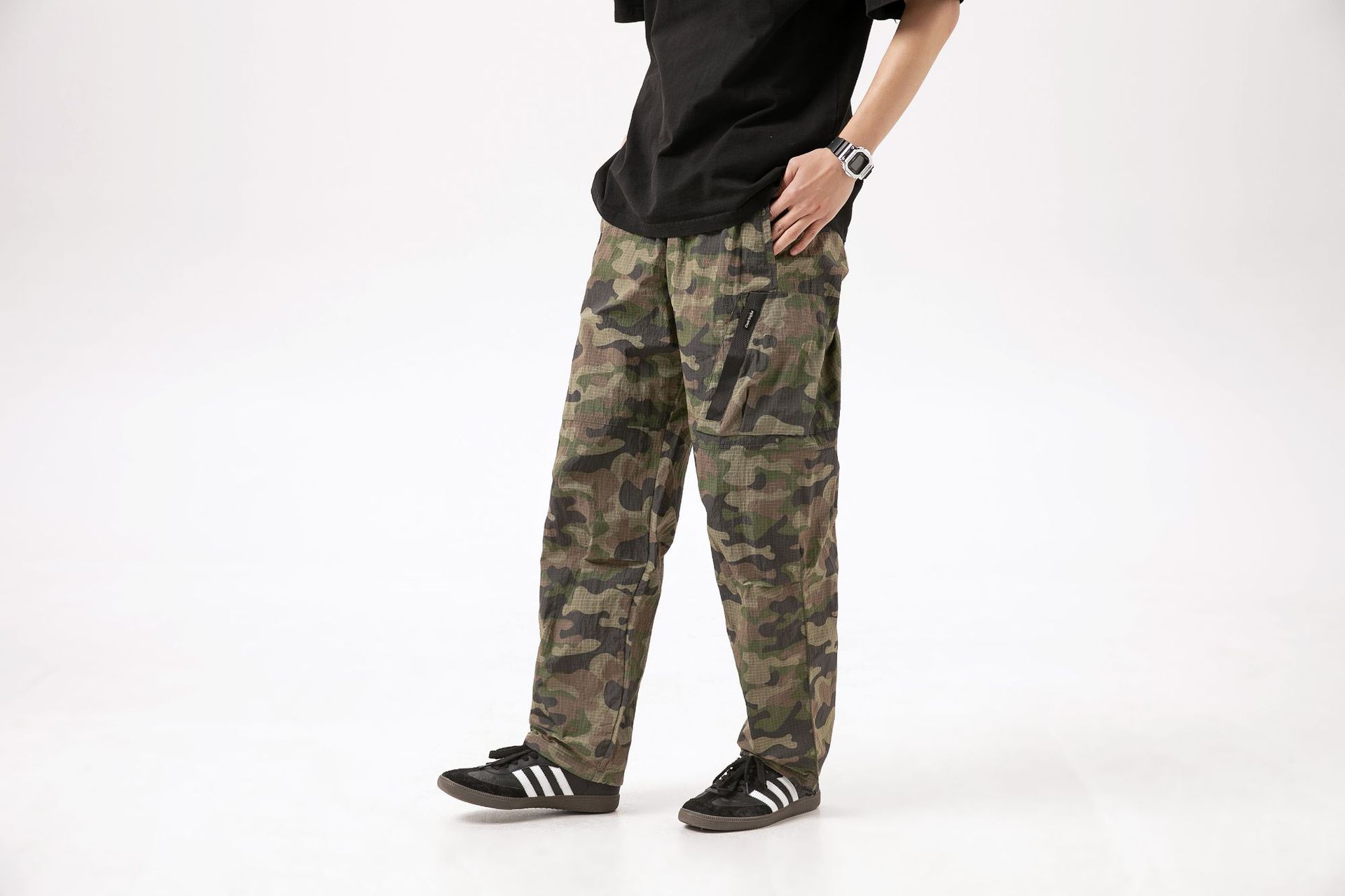 트렌디 브랜드 속건성 위장 낙하산 바지 남성용 속건성 가벼운 작업복 캐주얼 바지 졸라매는 끈 캐주얼 낙하산 바지스토어 가기