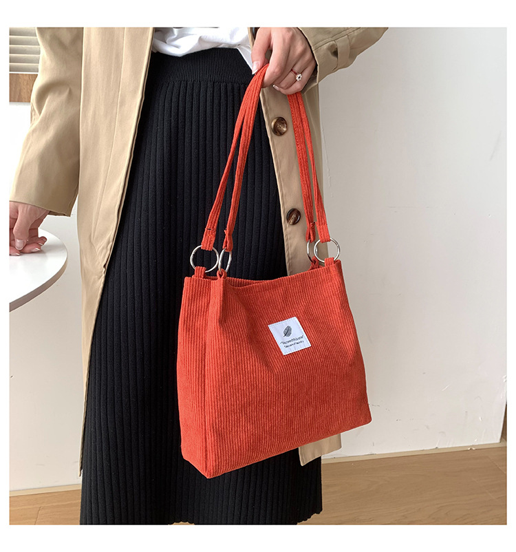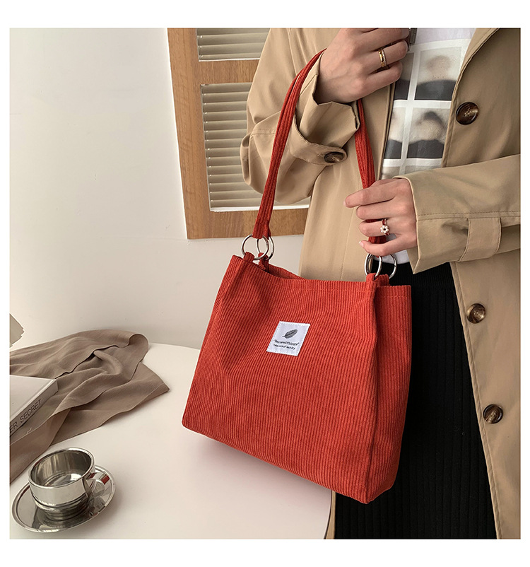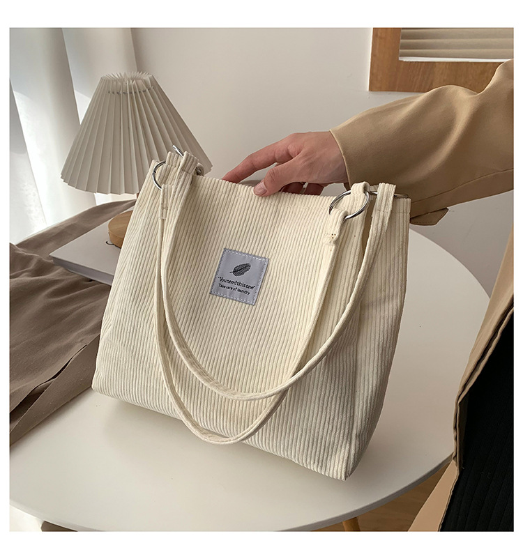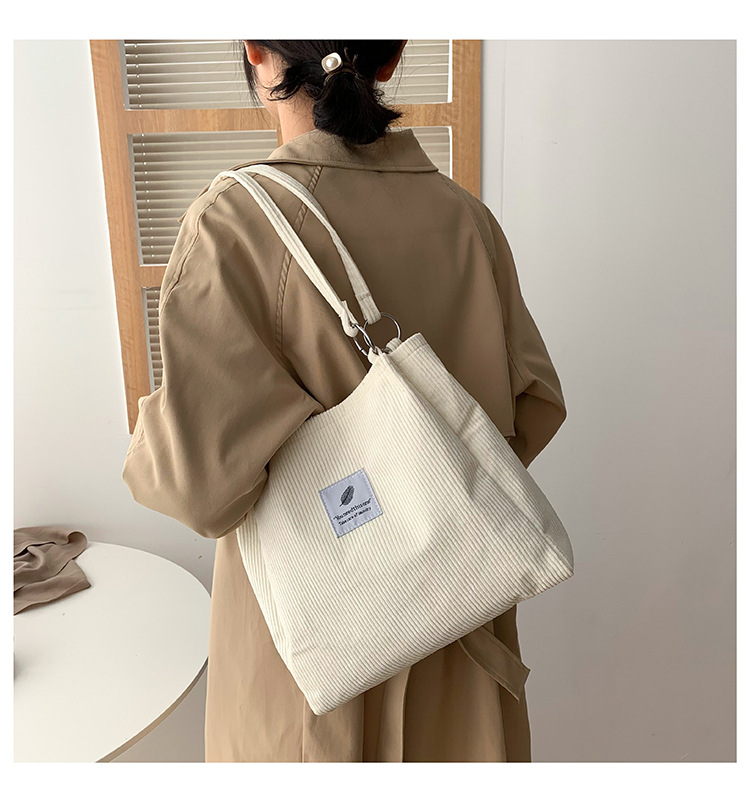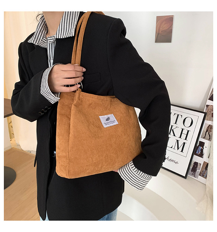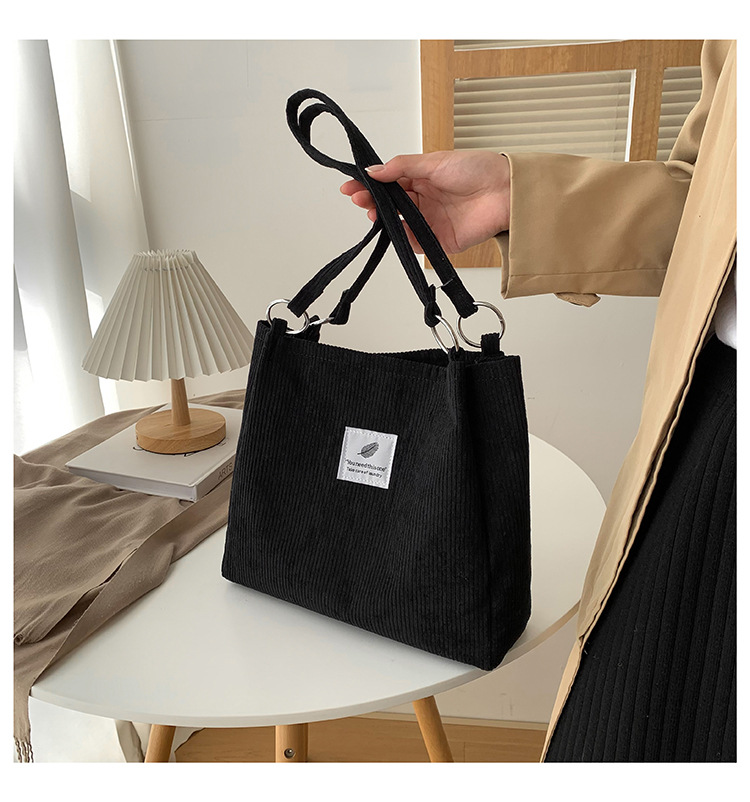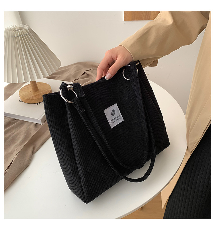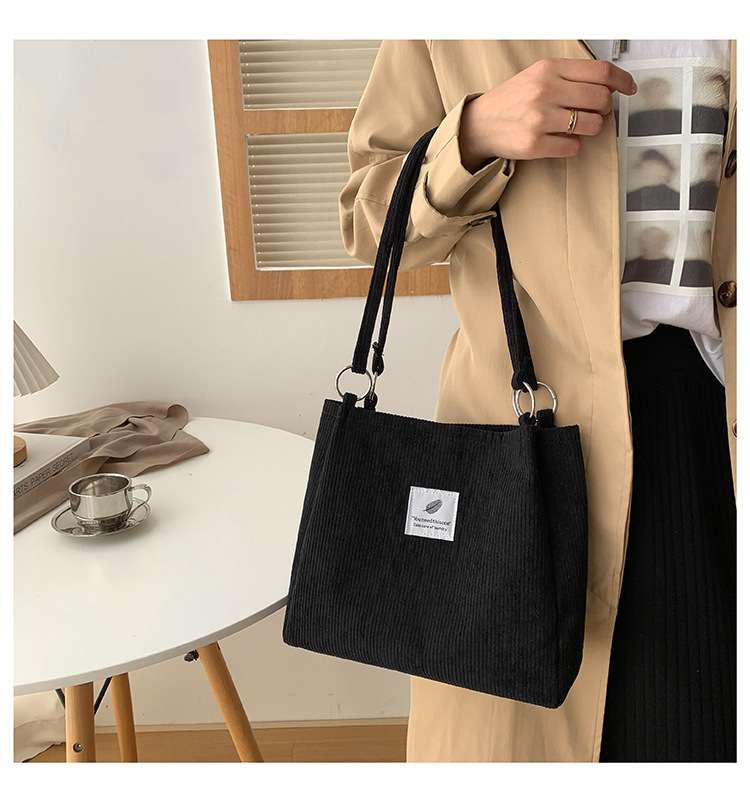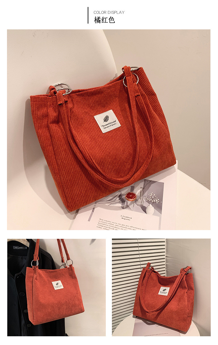 국경 간 대용량 휴대용 코듀로이 토트 백 한국 저장 여성 가방 복고풍 간단한 게으른 스타일 쇼핑 숄더 백