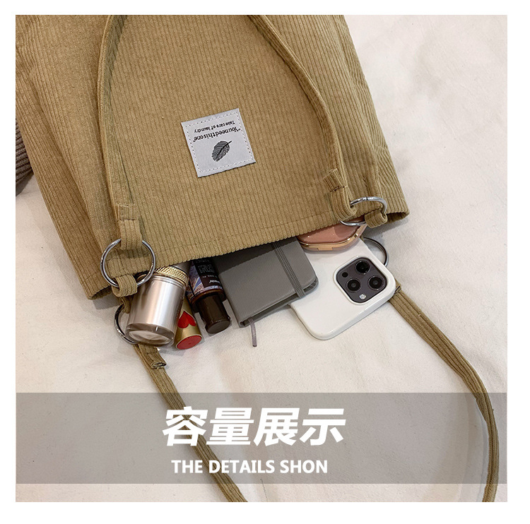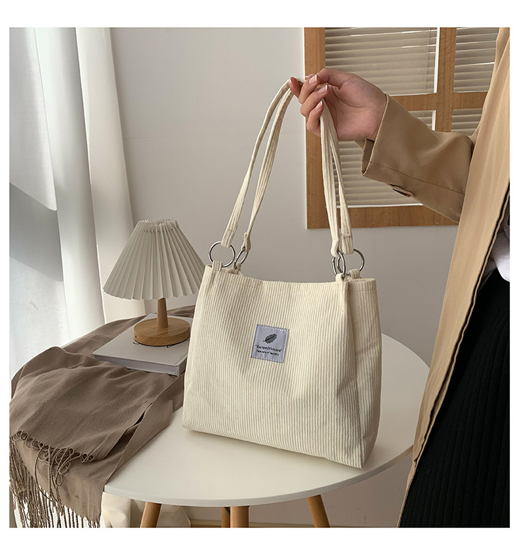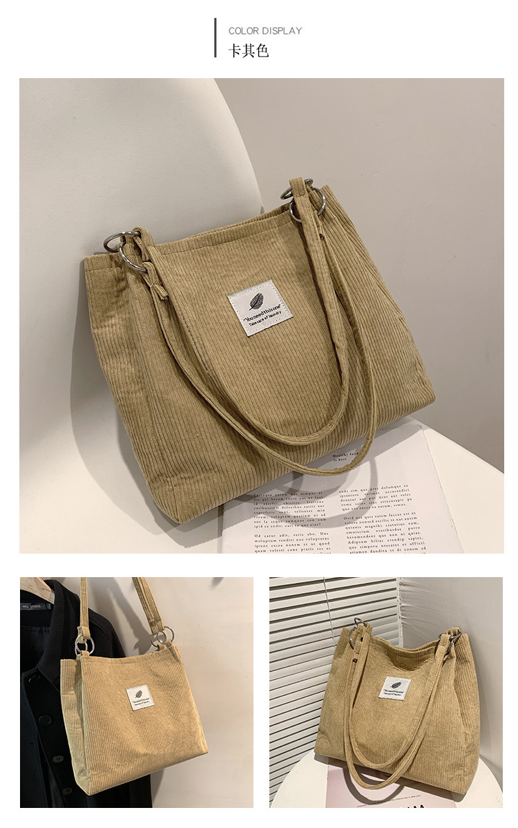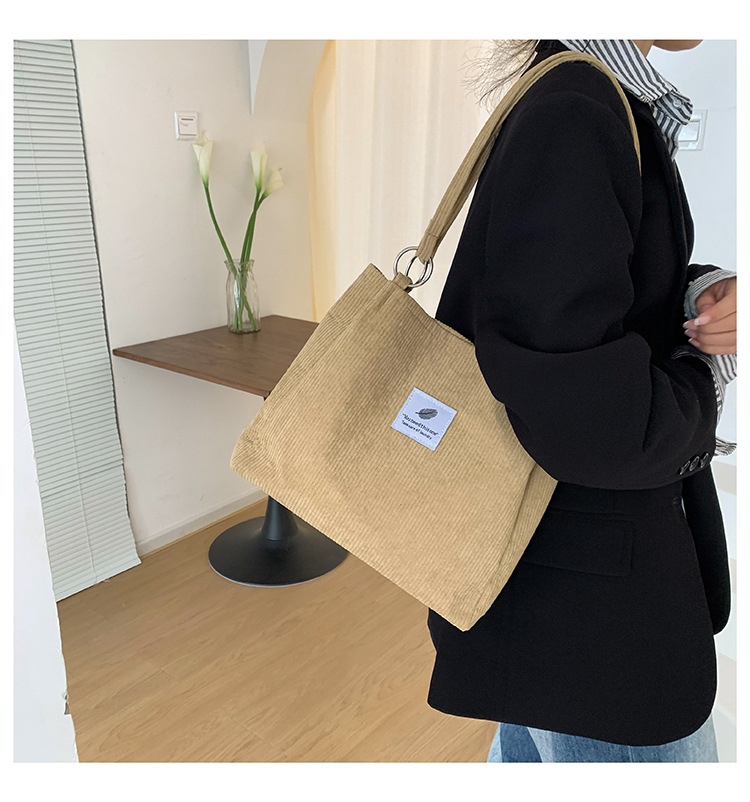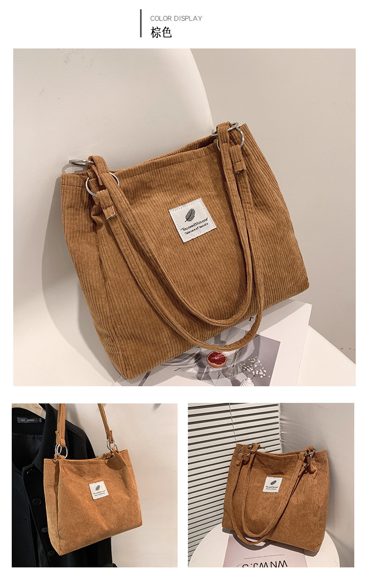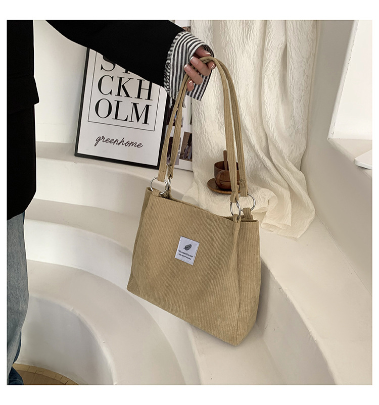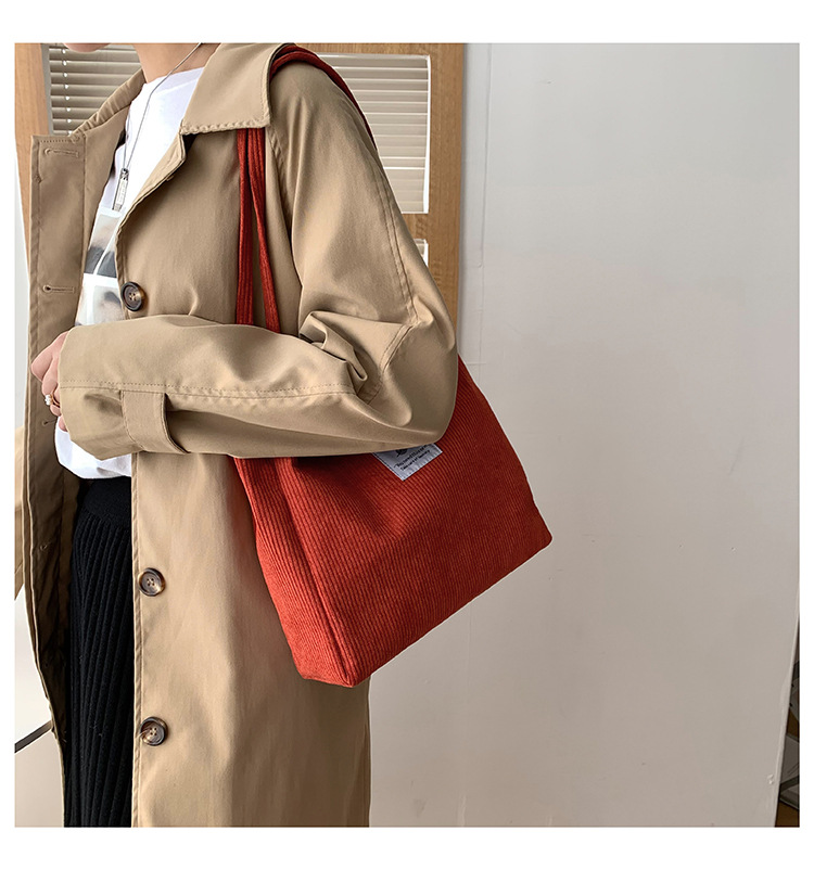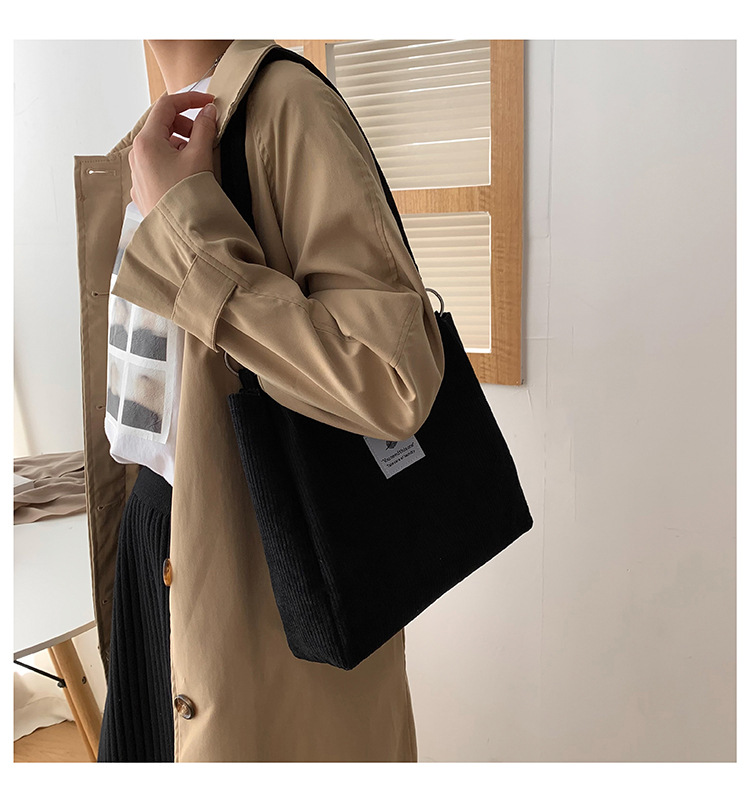 국경 간 대용량 휴대용 코듀로이 토트 백 한국 저장 여성 가방 복고풍 간단한 게으른 스타일 쇼핑 숄더 백
