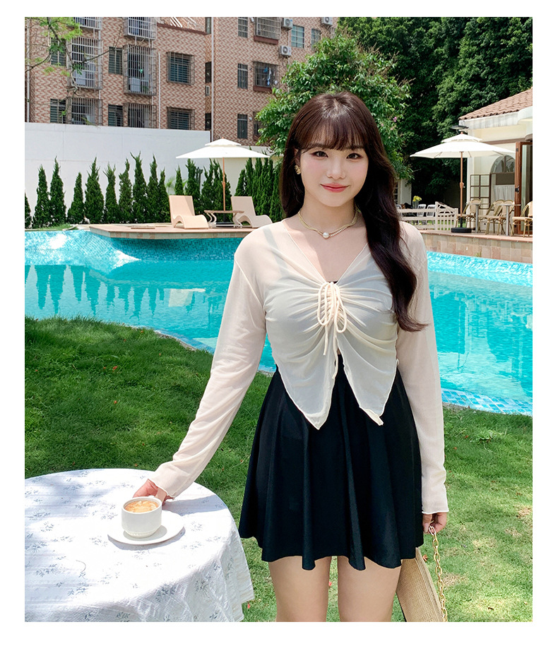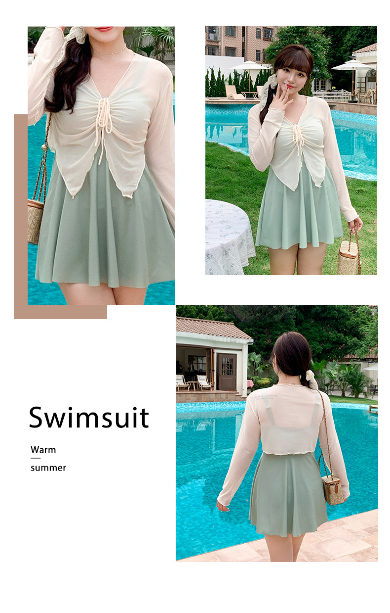 2024 새로운 긴 소매 블라우스 투피스 지방 mm200 kg 수영복 벨리 커버 슬림 스커트 원피스 플러스 사이즈 수영복스토어 가기