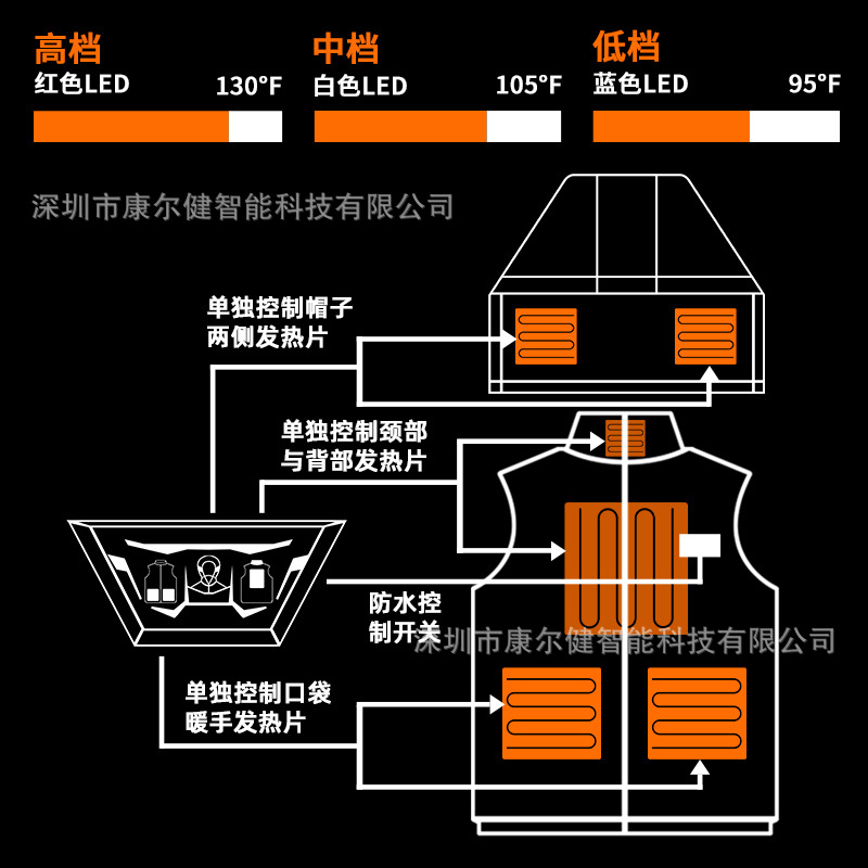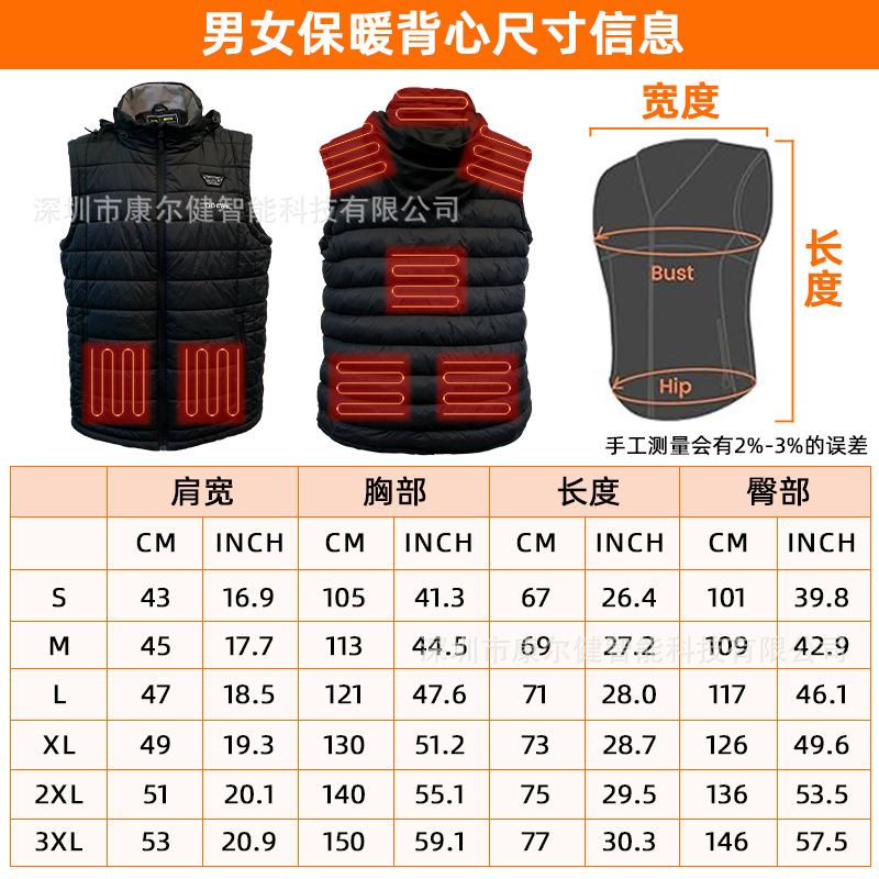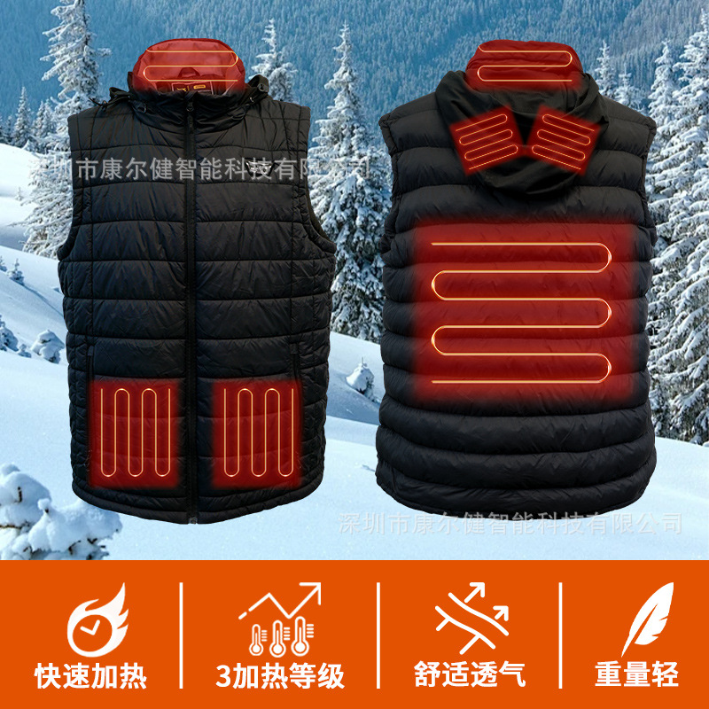 아마존 스마트 앱 난방 조끼 모자 전기 조끼 야외 스키 따뜻한 조끼 난방 조끼