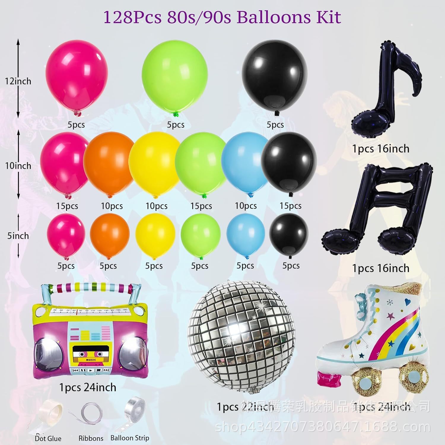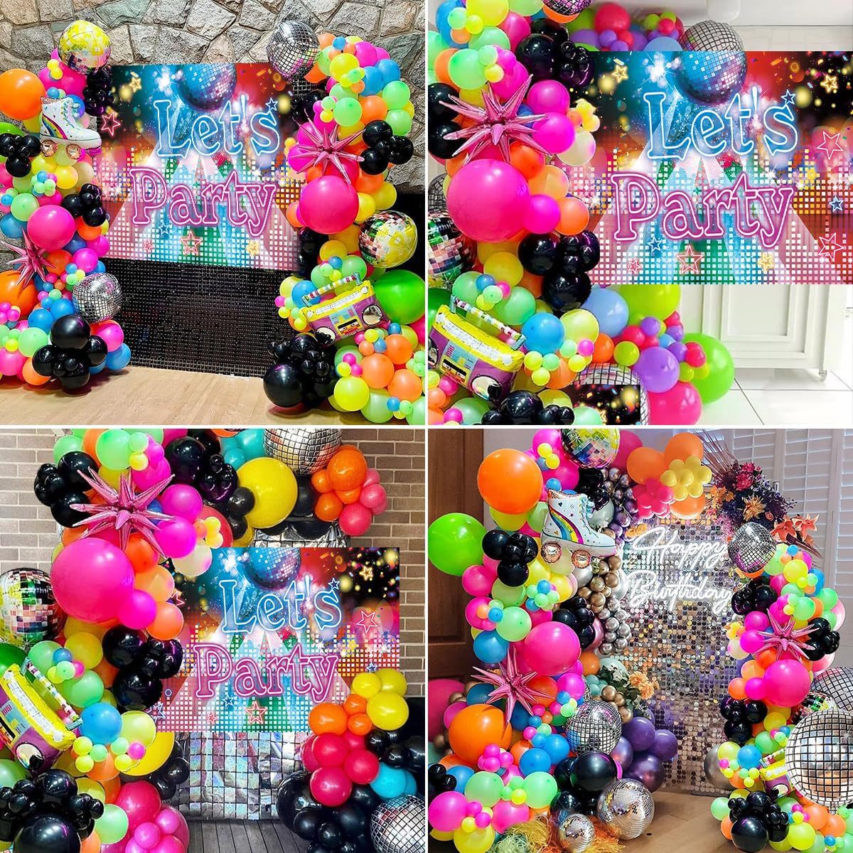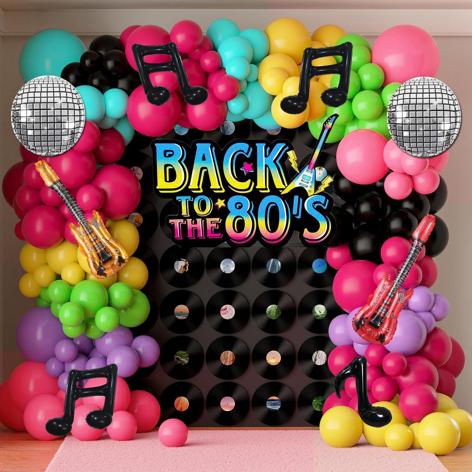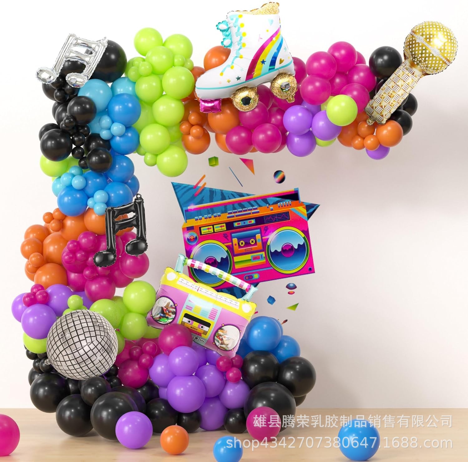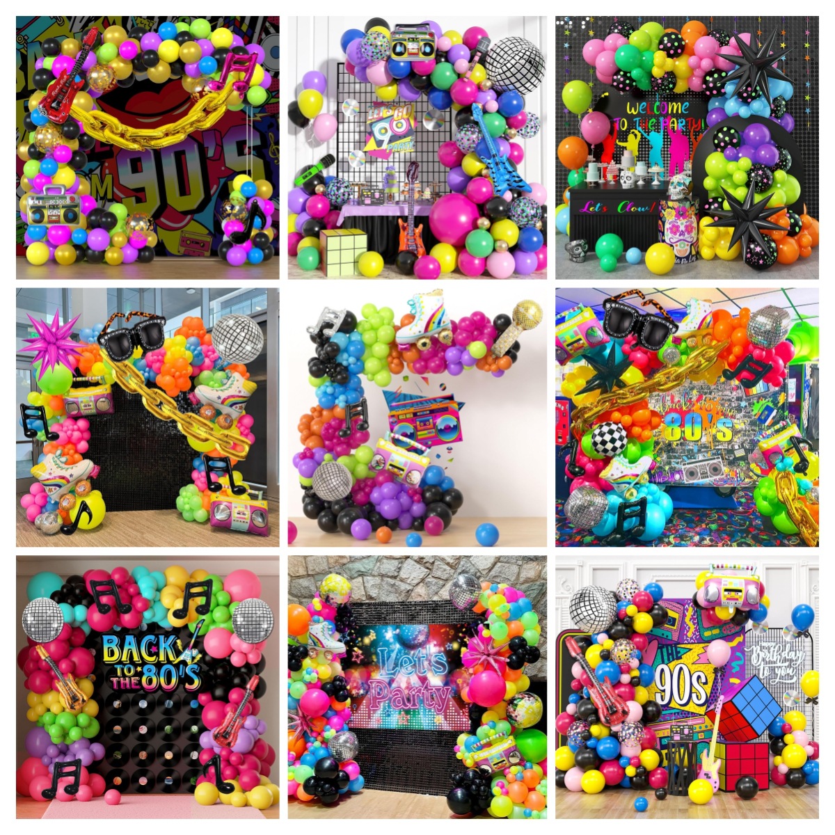 8090년대 테마 풍선 꽃 아치 세트 힙합 디스코 라디오 기타 풍선 무지개 롤러스케이트스토어 가기