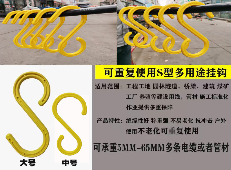 电缆挂钩架子管S形绝缘脚手架耐磨承重塑料挂钩工地电线挂勾