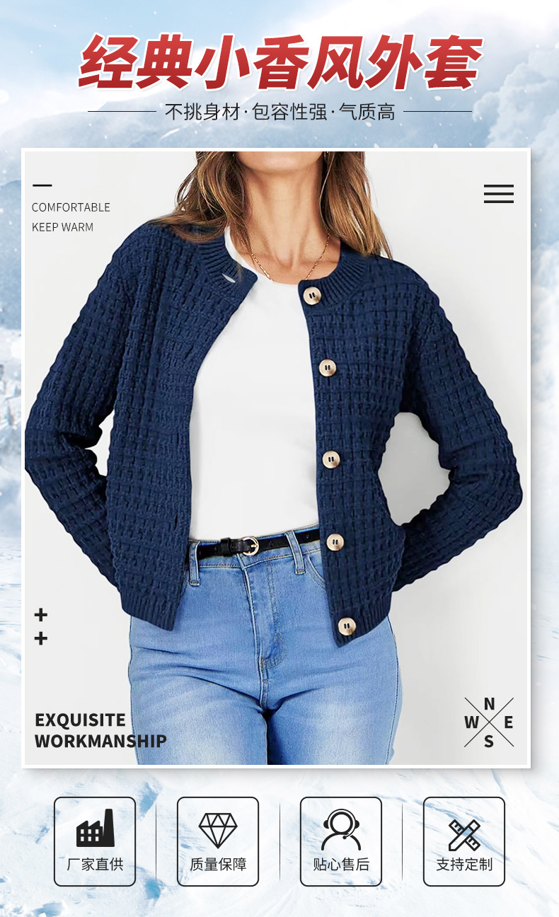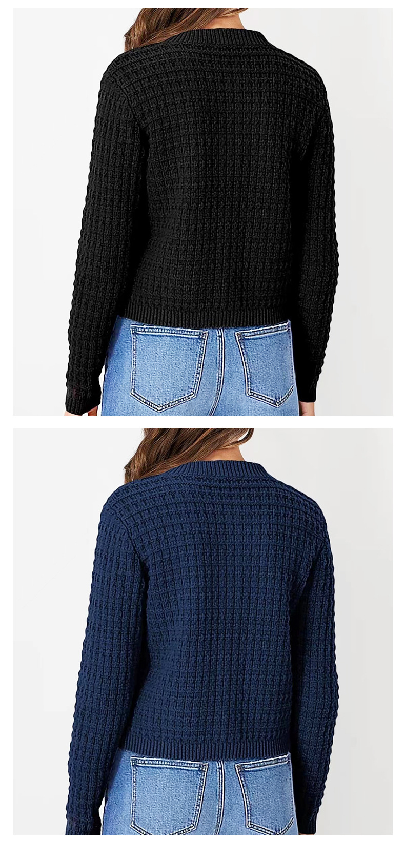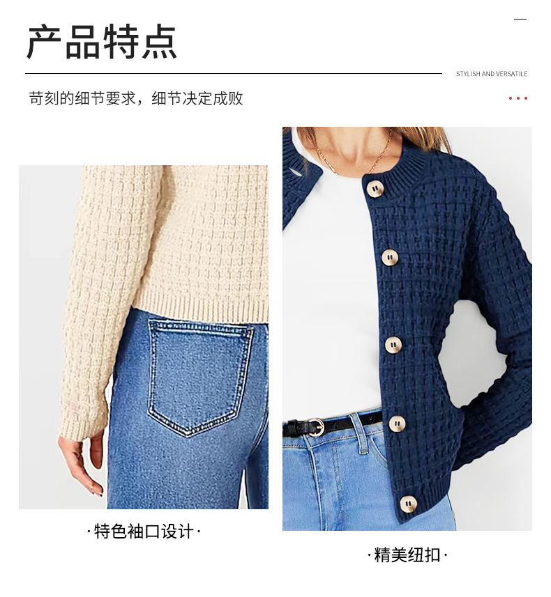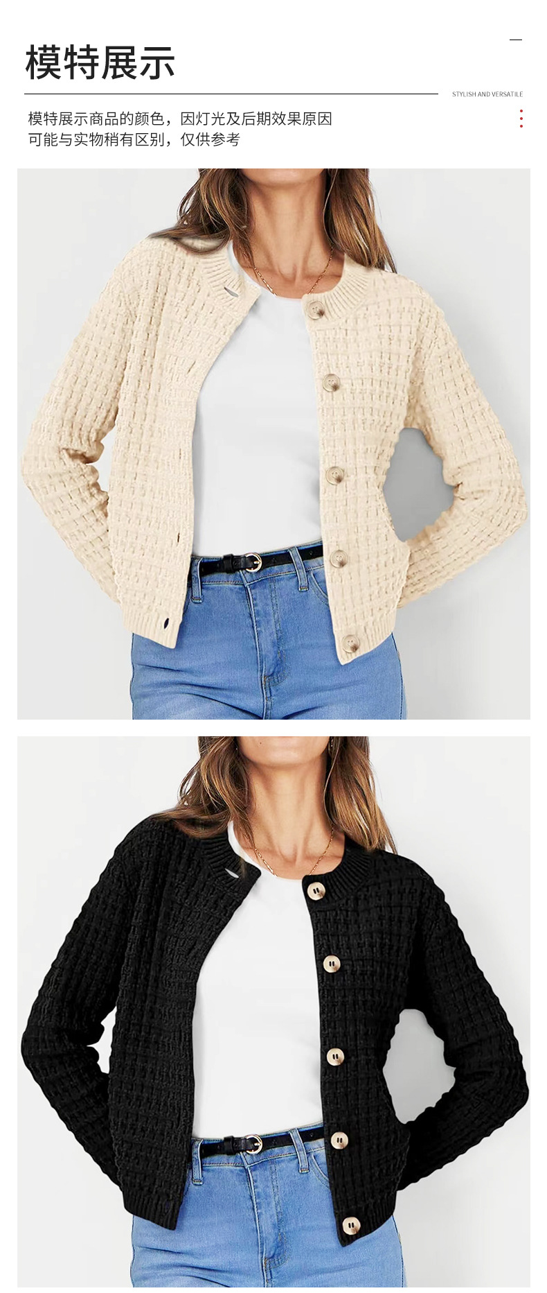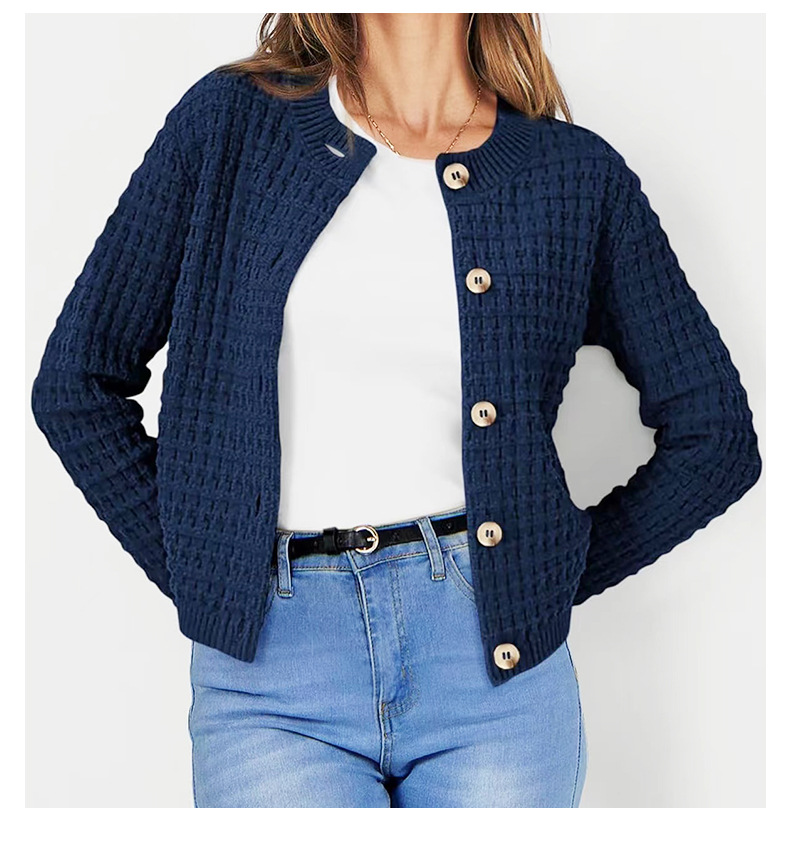 아마존 핫 여성의 우아한 라운드 넥 니트 탑 빈티지 캐주얼 싱글 가슴 긴 소매 카디건 스웨터 재킷