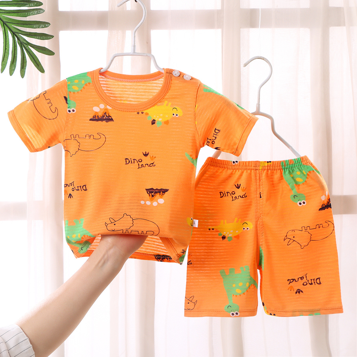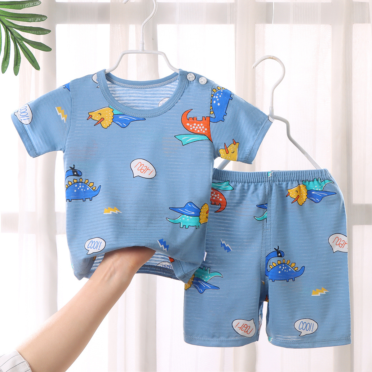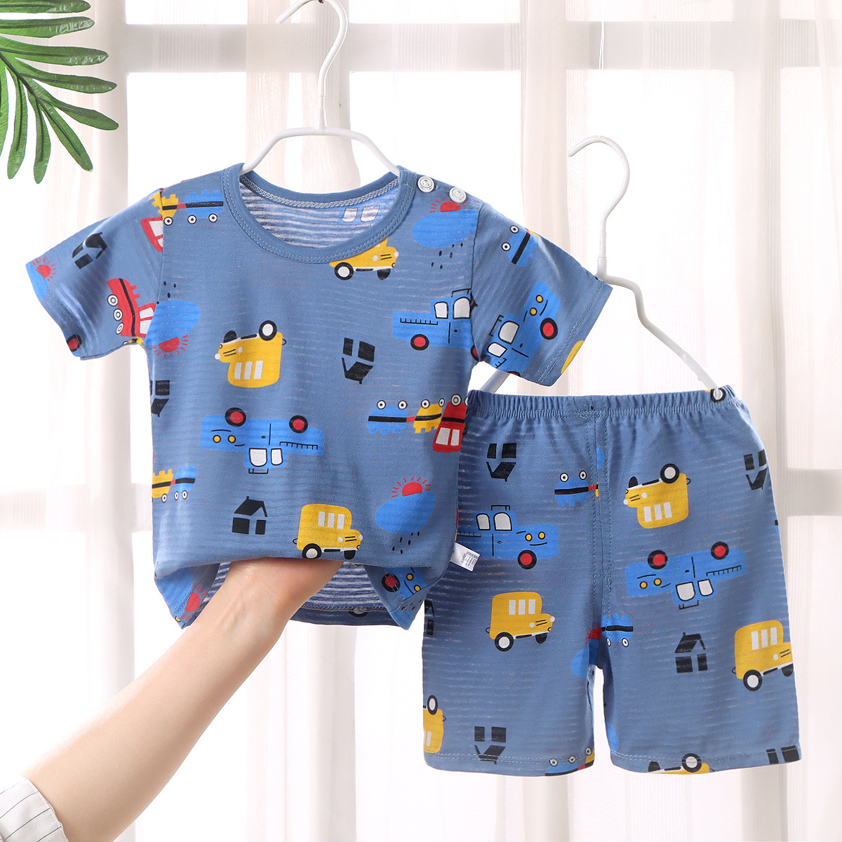 새로운 어린이 티셔츠 세트 0-7 세 여름 중소형 어린이 반팔 반바지 홈 의류 땀 흡수성 통기성 잠옷스토어 가기