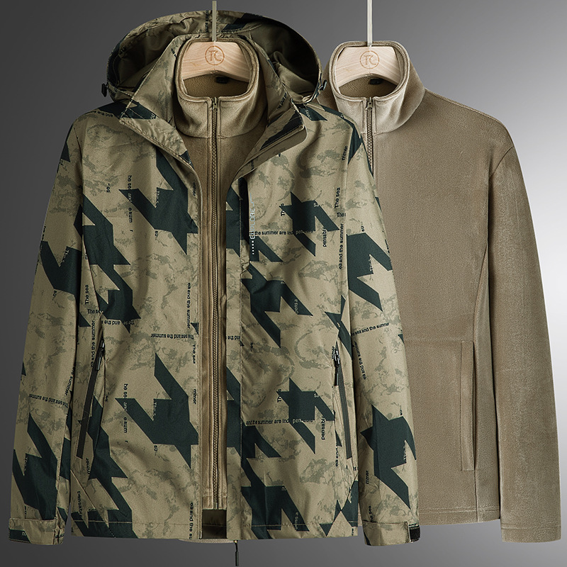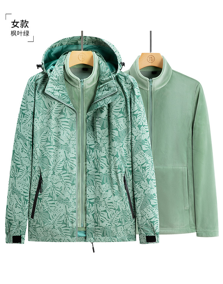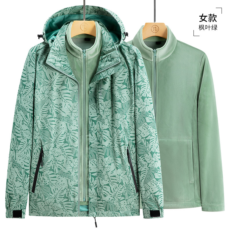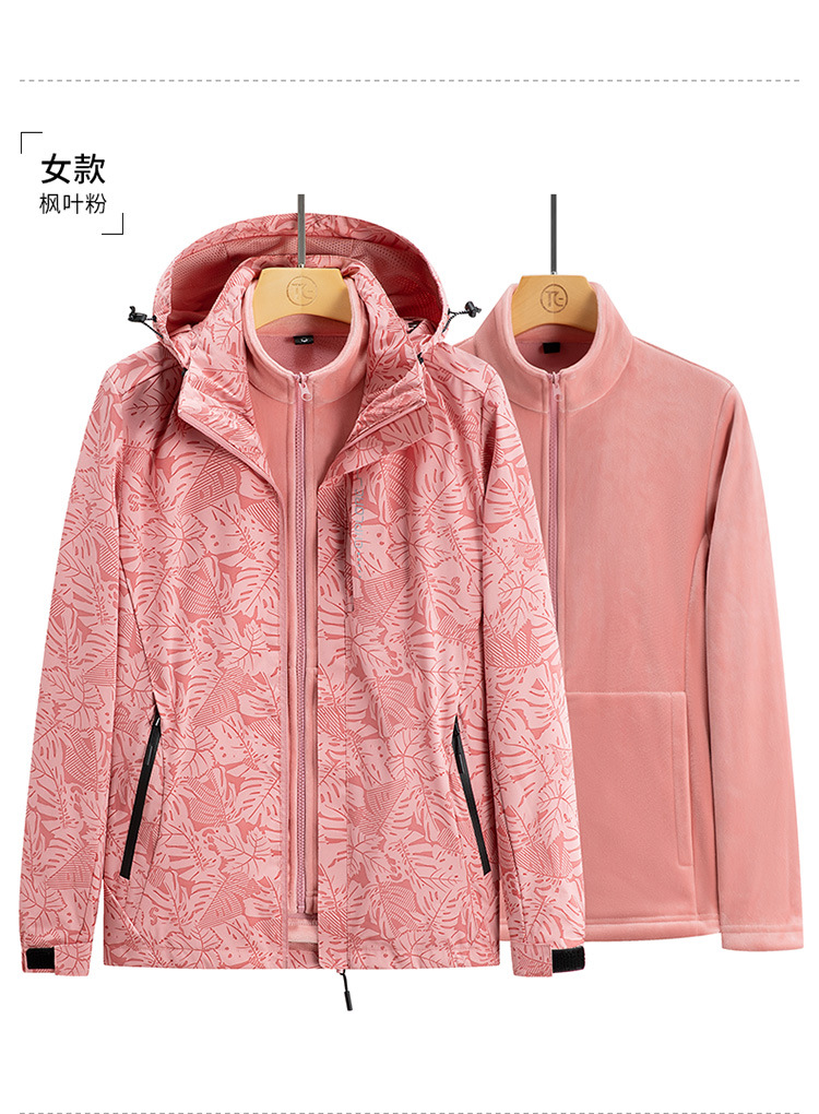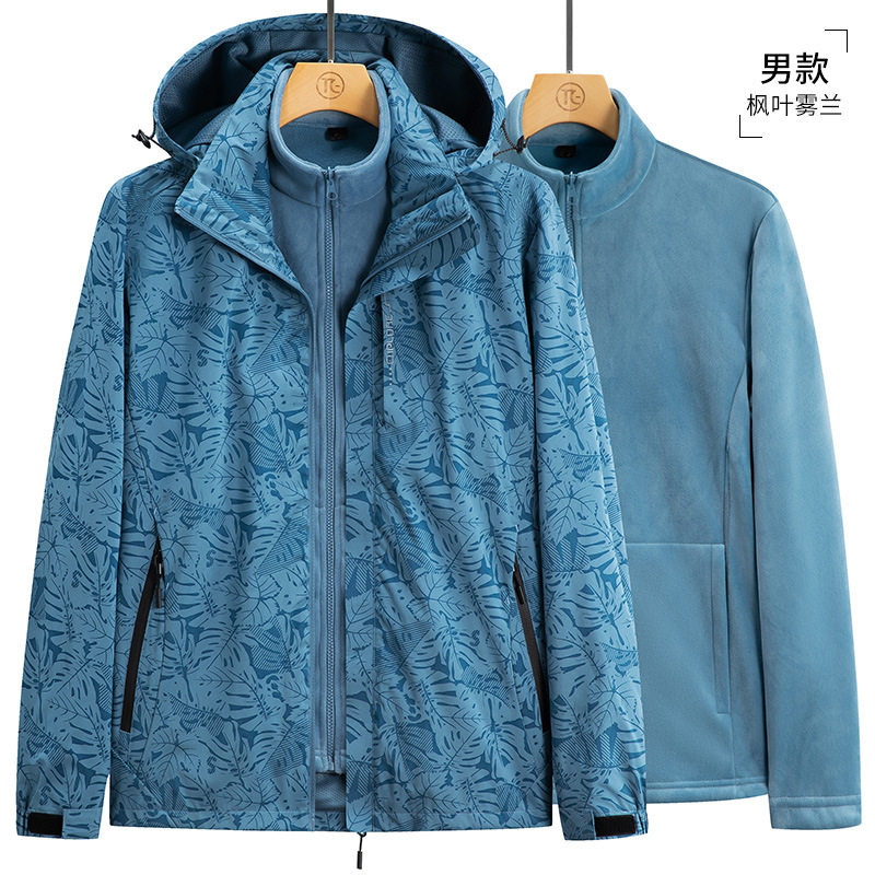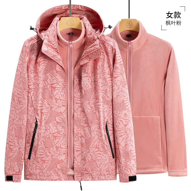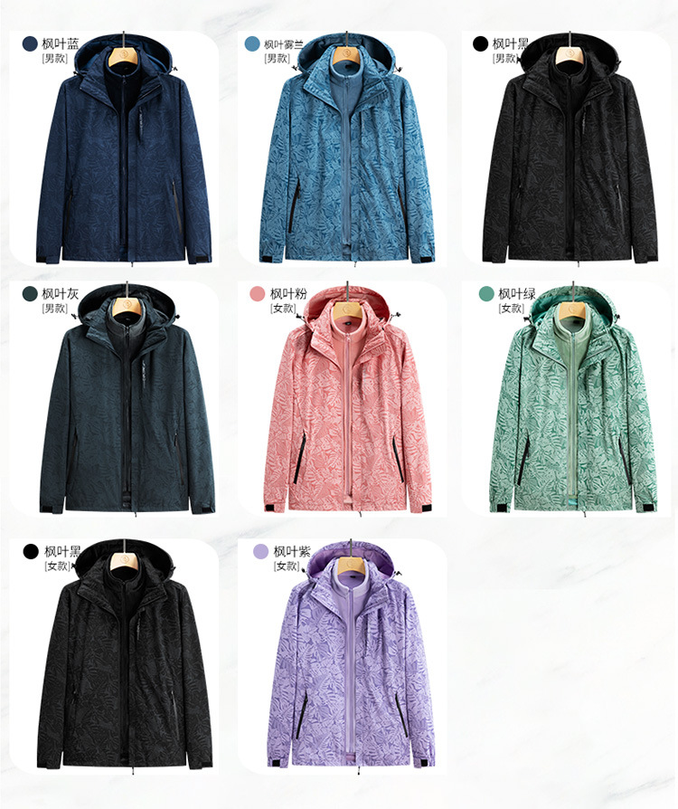 가을과 겨울 메이플 리프 커플의 러시 옷 3 대 1 양털 옷 분리 가능한 라이너 2 피스 세트 마운테이어링 세트 두꺼운 재킷
