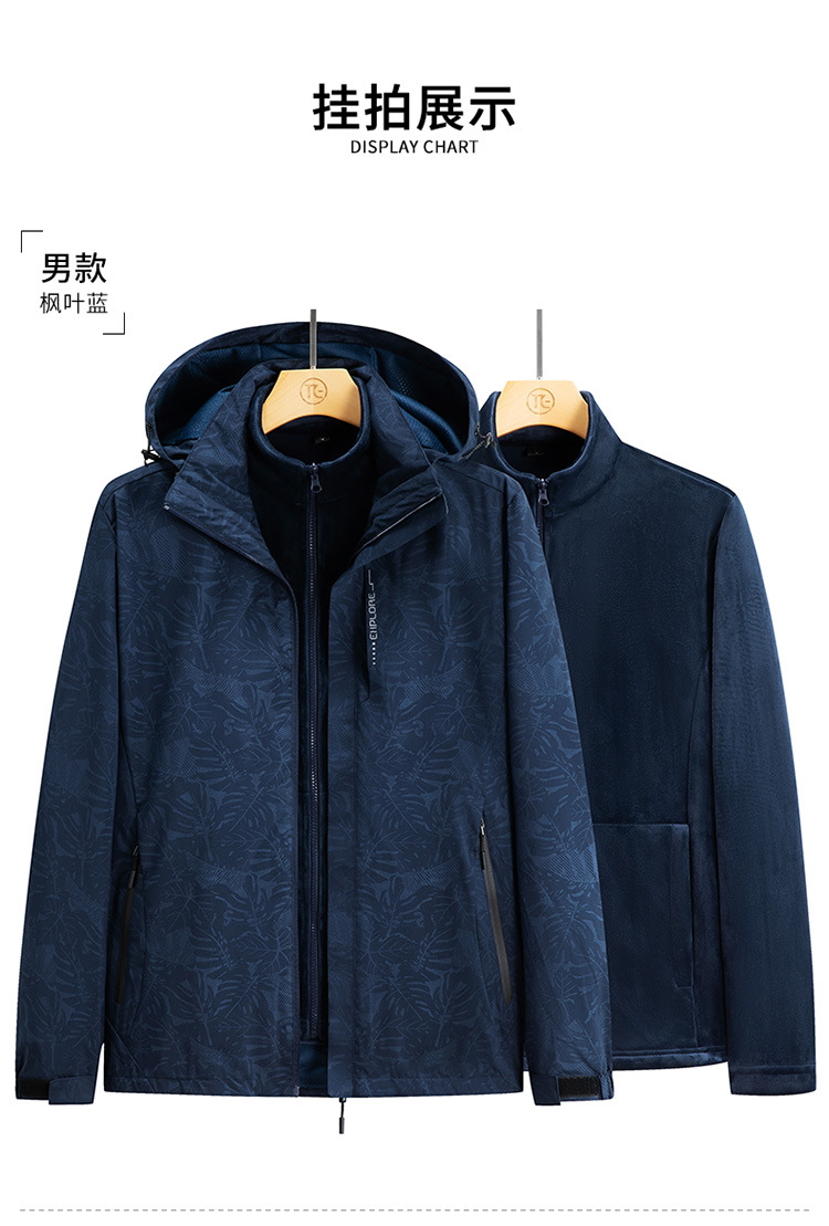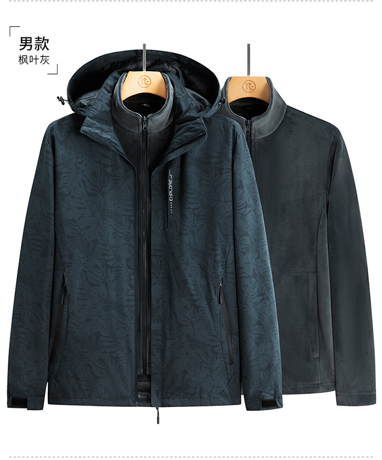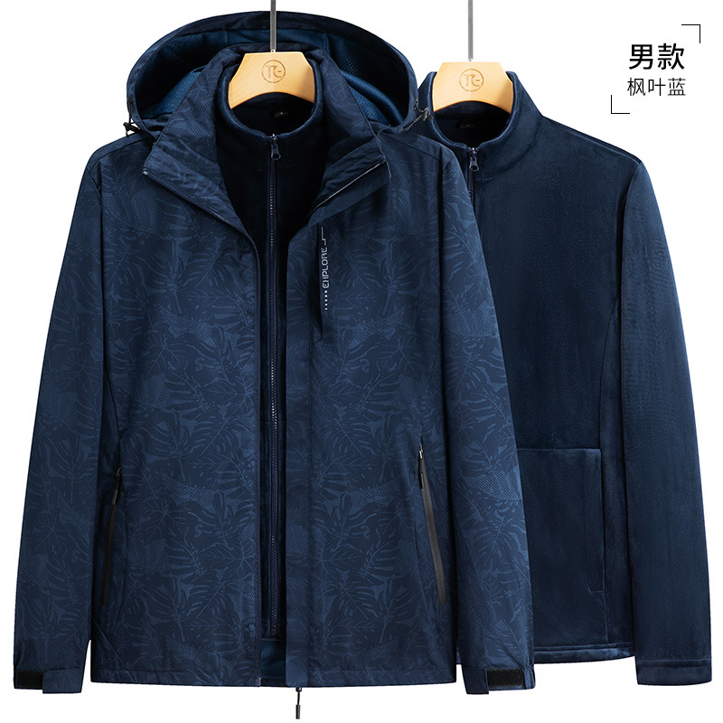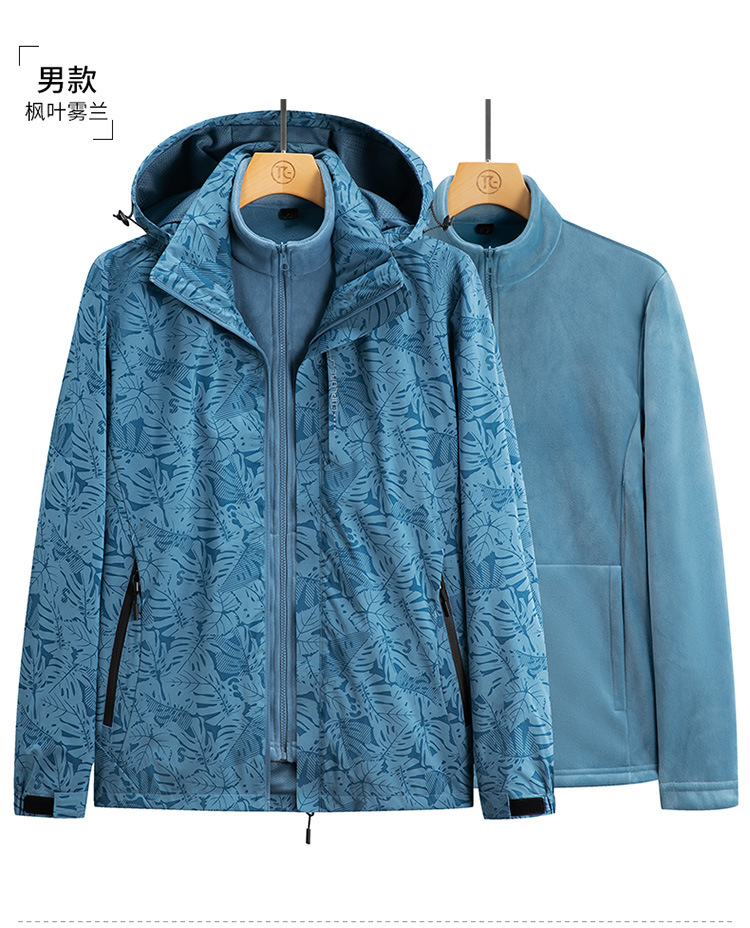 가을과 겨울 메이플 리프 커플의 러시 옷 3 대 1 양털 옷 분리 가능한 라이너 2 피스 세트 마운테이어링 세트 두꺼운 재킷스토어 가기