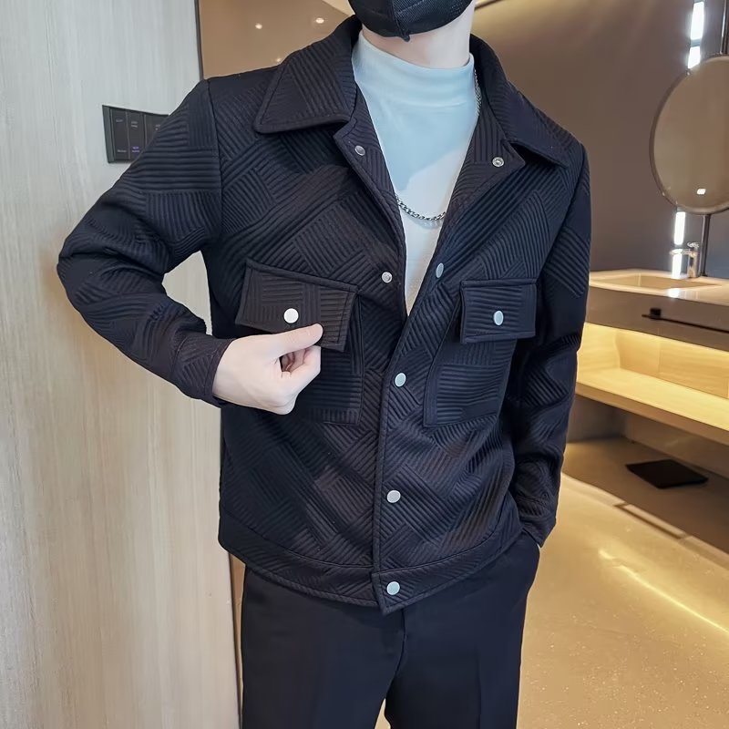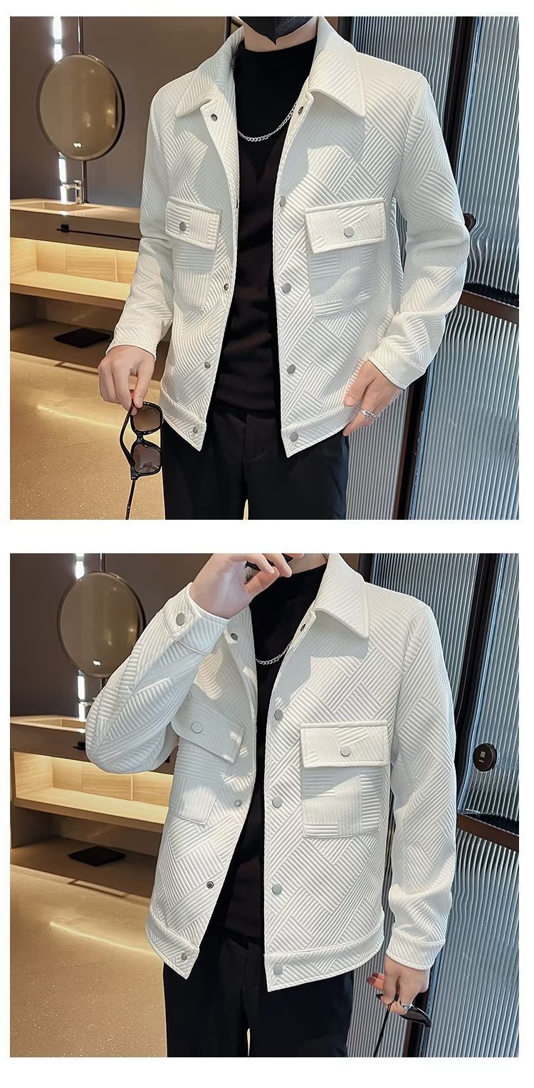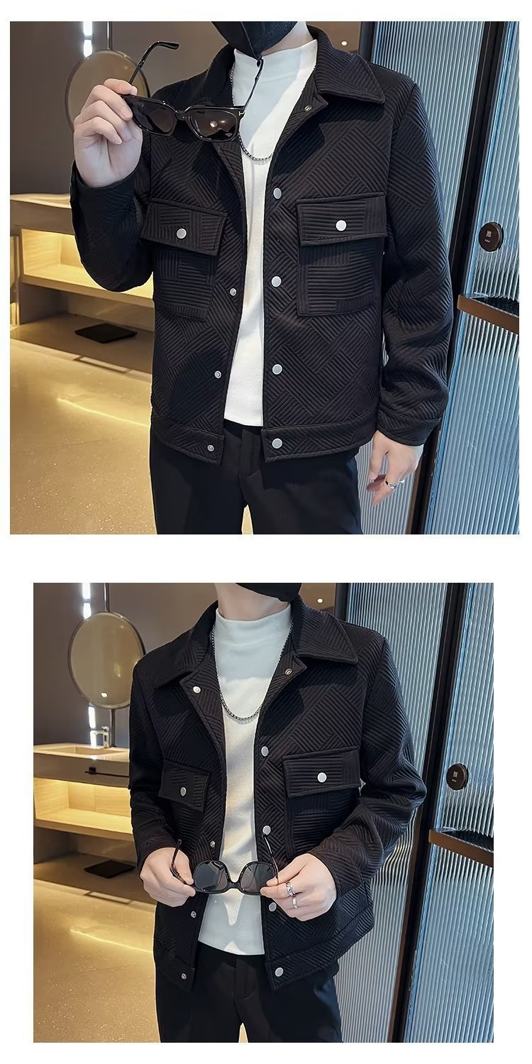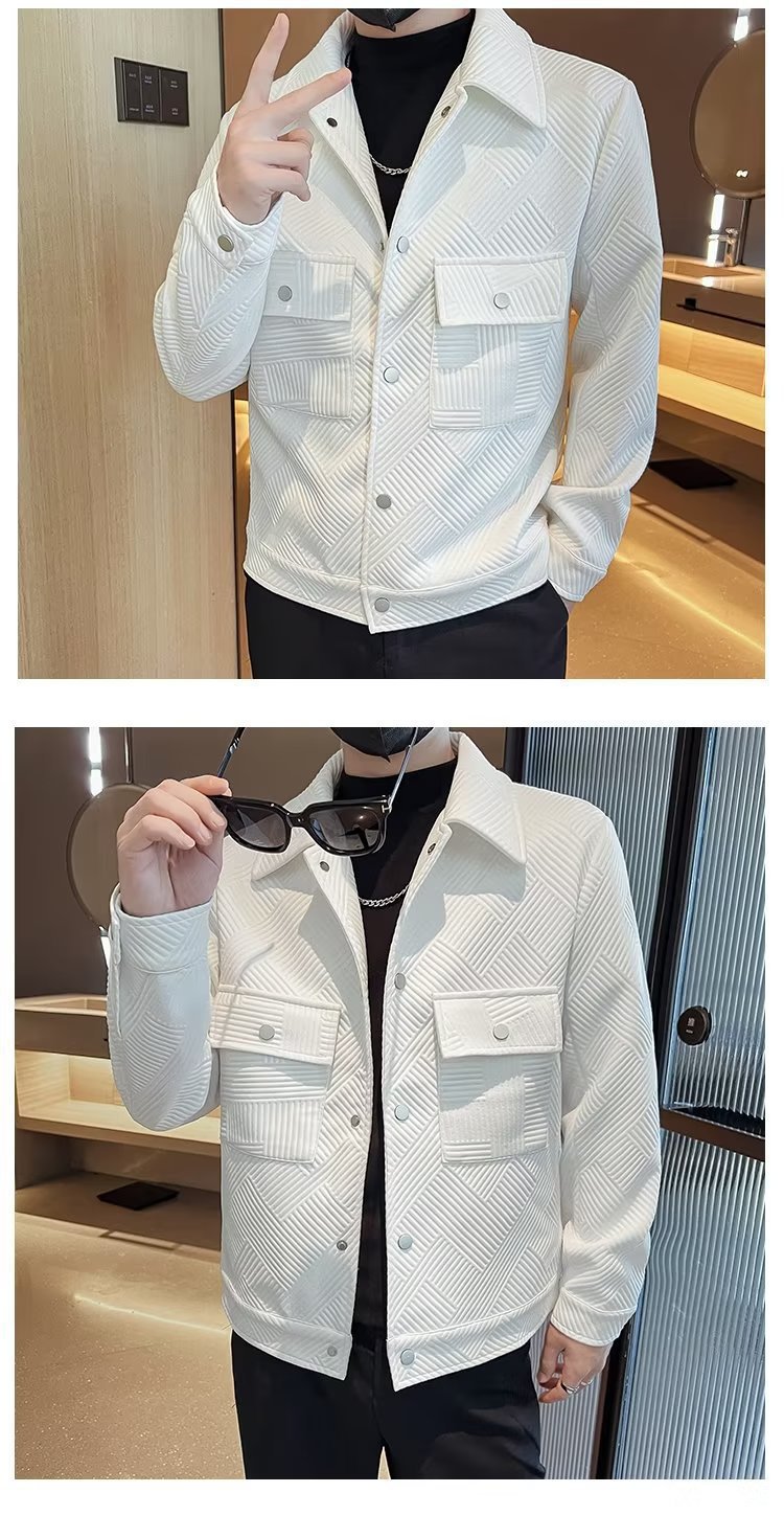 2024 패션 우아한 남성 코트 트렌디 브랜드 새로운 봄과 가을 디자인 센스 스트라이프 캐주얼 작업복 재킷 남성복스토어 가기