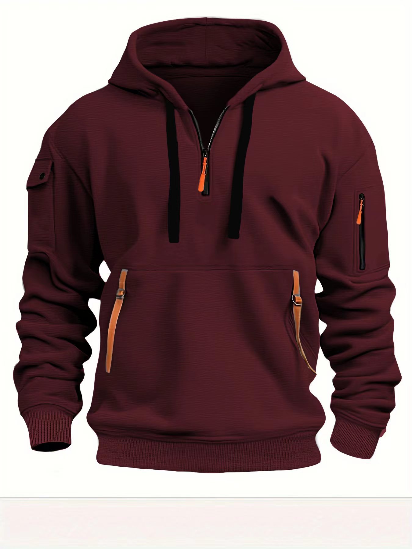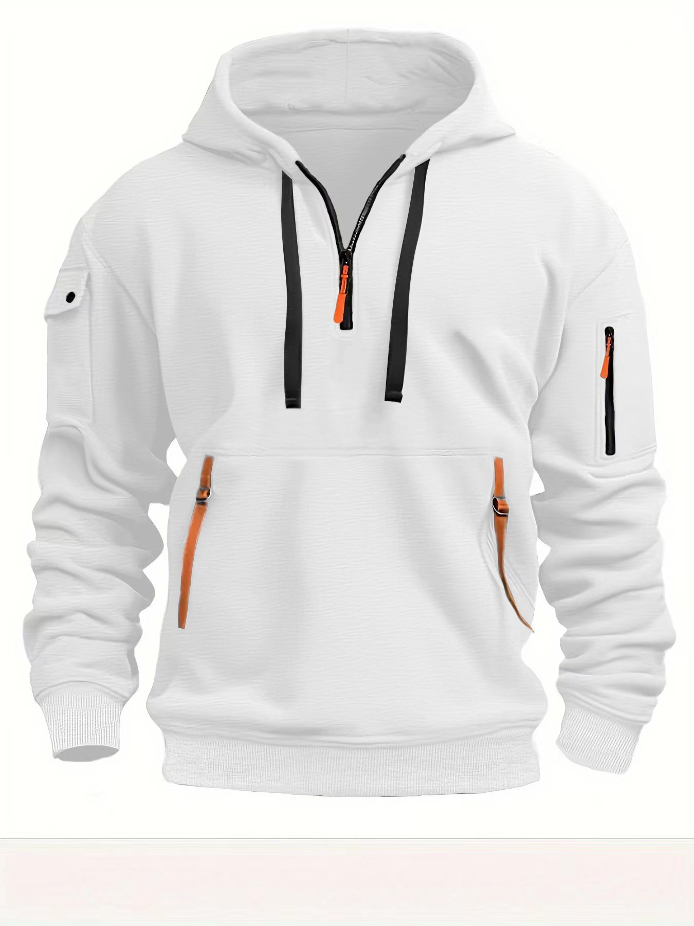 봄가을 남성용 후드티 지퍼 다중 포켓 자수 배지 풀오버 스포츠 캐주얼 루즈핏 다중 포켓