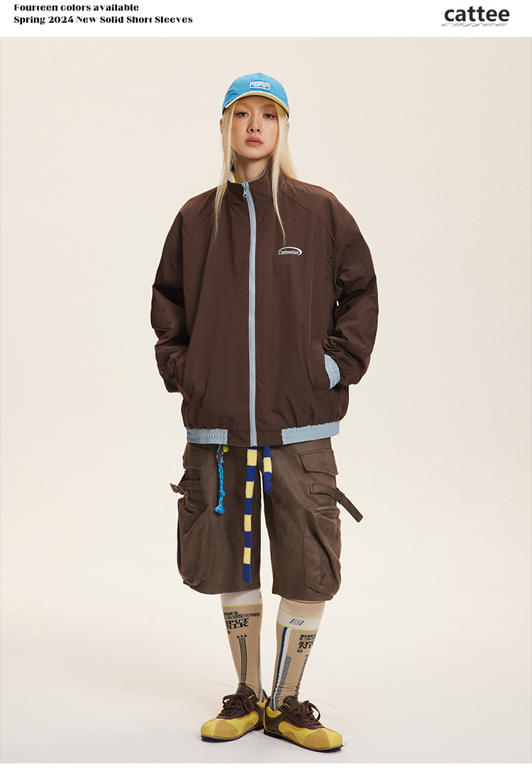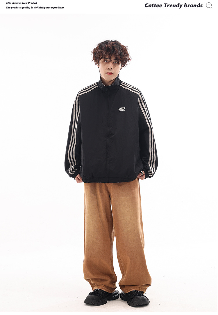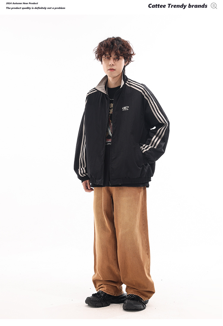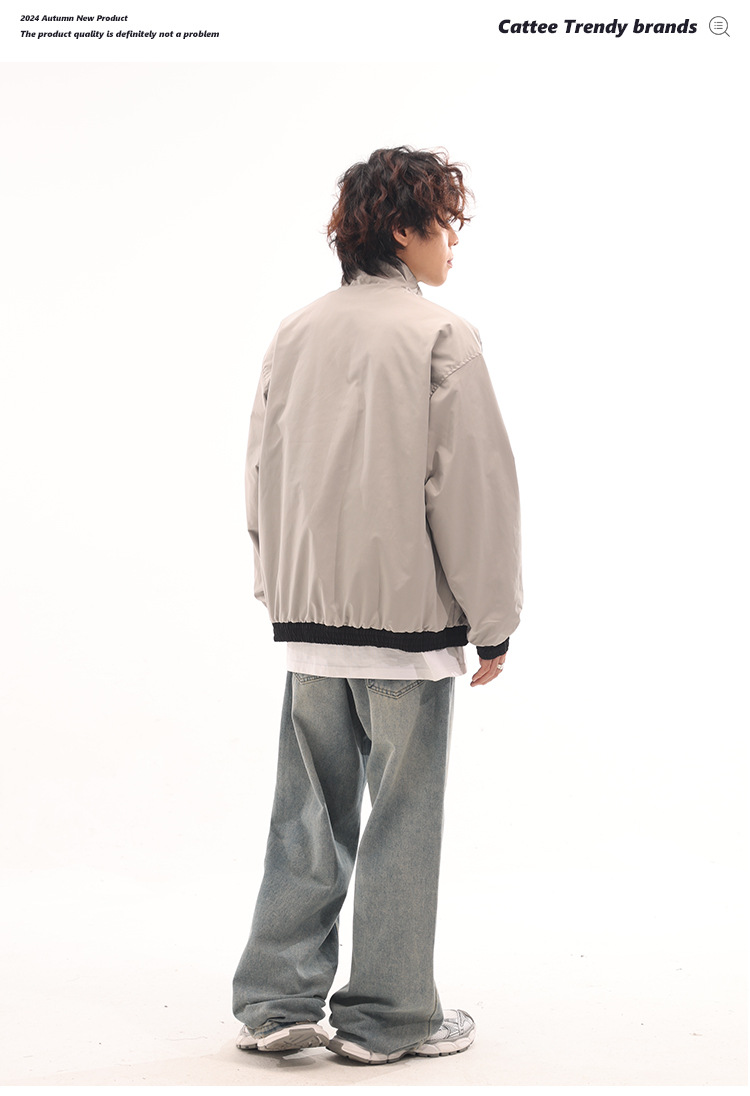 CATTEE 더블 착용 세 개의 바 대비 컬러 칼라 재킷 남성 봄과 가을 느슨한 캐주얼 커플 재킷 여성스토어 가기
