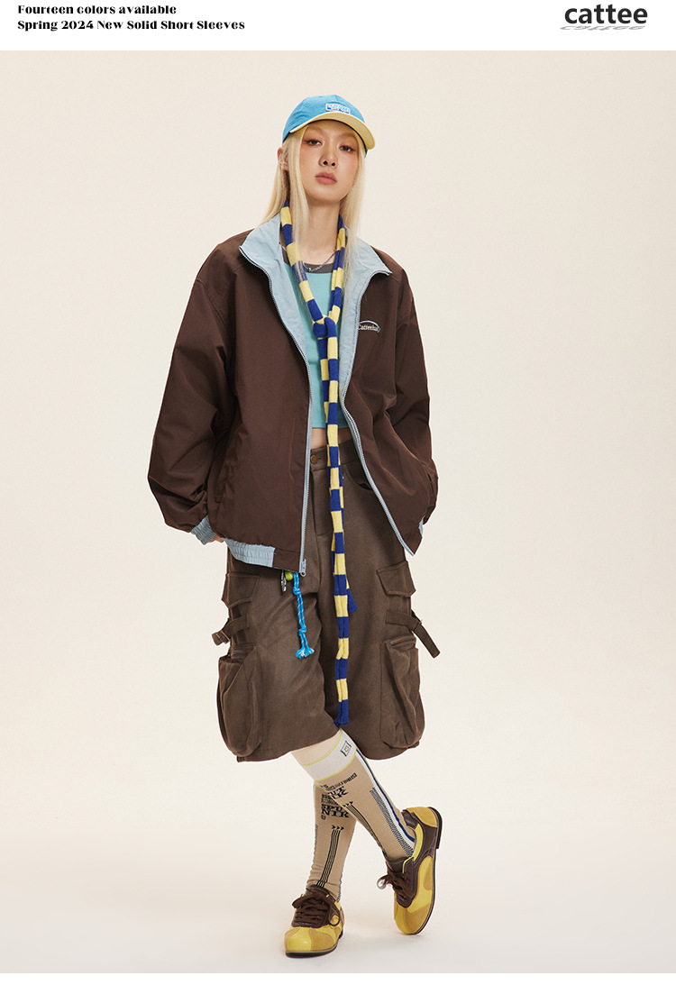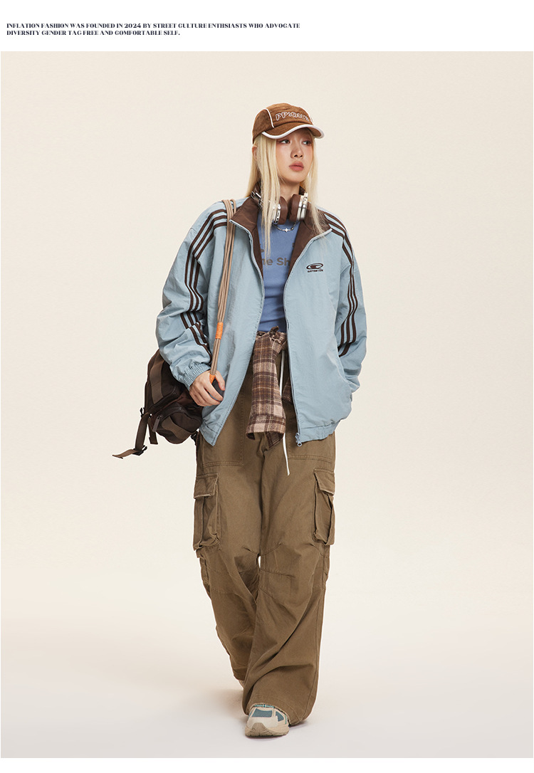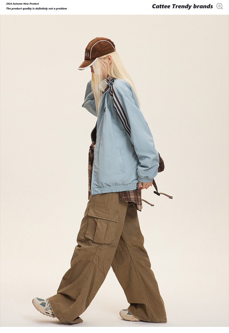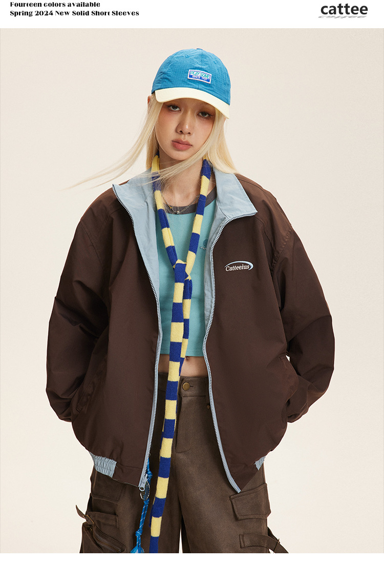 CATTEE 더블 착용 세 개의 바 대비 컬러 칼라 재킷 남성 봄과 가을 느슨한 캐주얼 커플 재킷 여성스토어 가기
