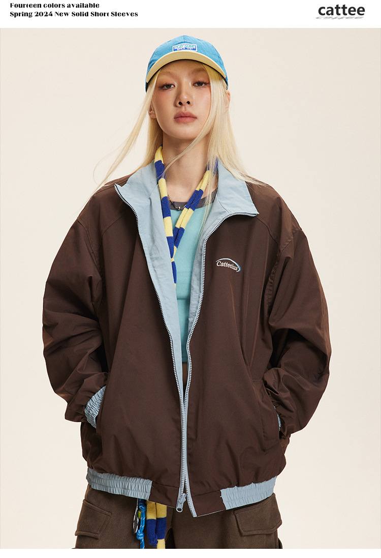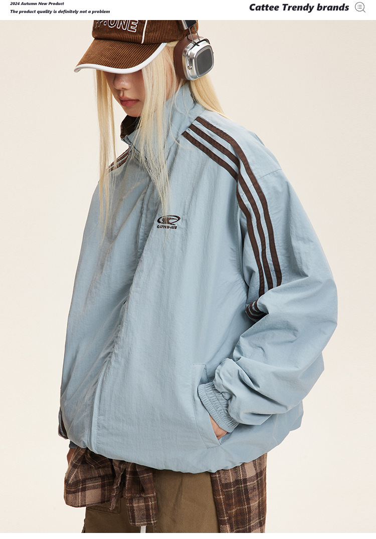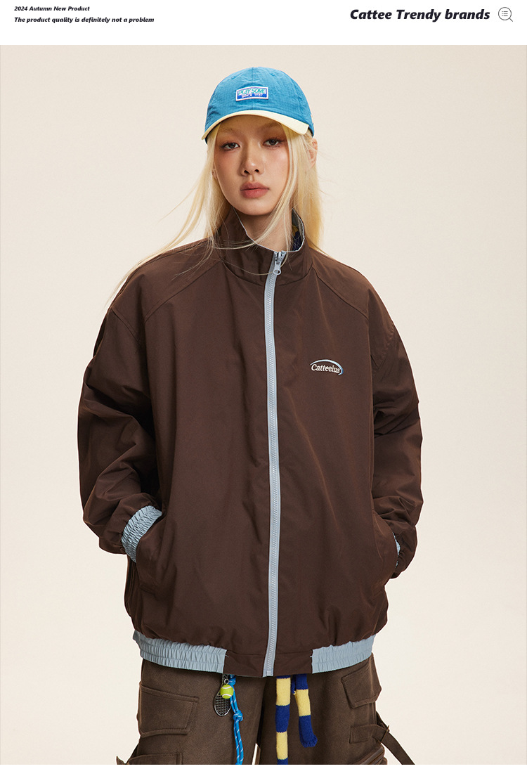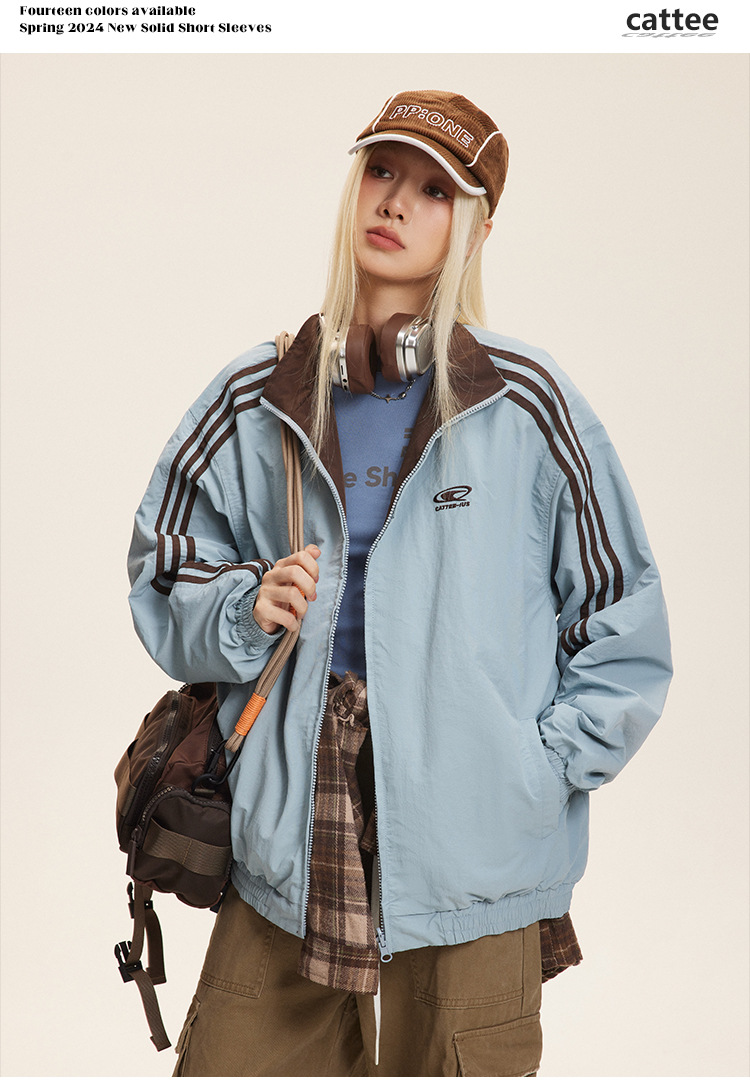 CATTEE 더블 착용 세 개의 바 대비 컬러 칼라 재킷 남성 봄과 가을 느슨한 캐주얼 커플 재킷 여성
