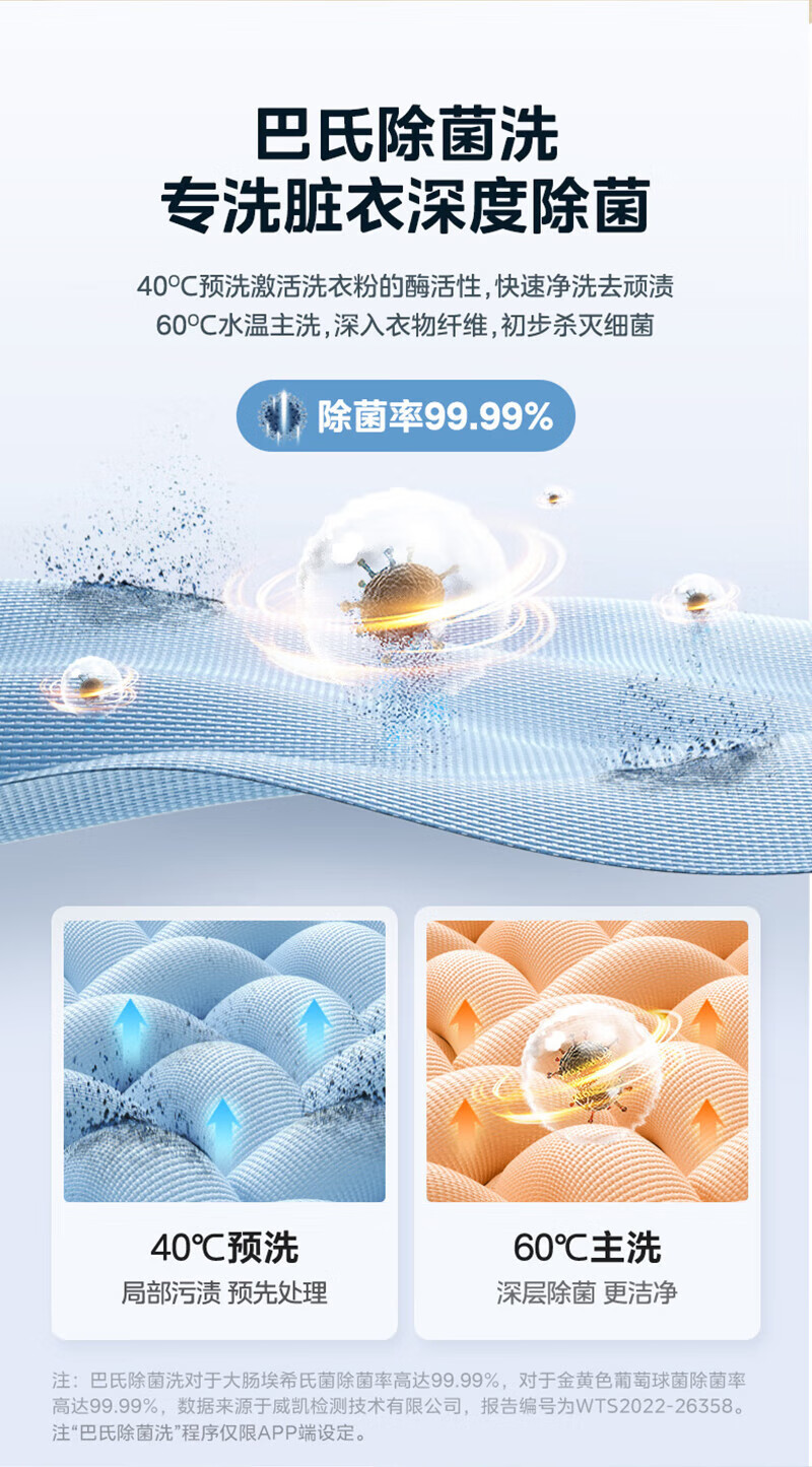 Midea MG100CG2023T 10kg 대용량 주파수 변환 드럼 세탁기 저온 살균