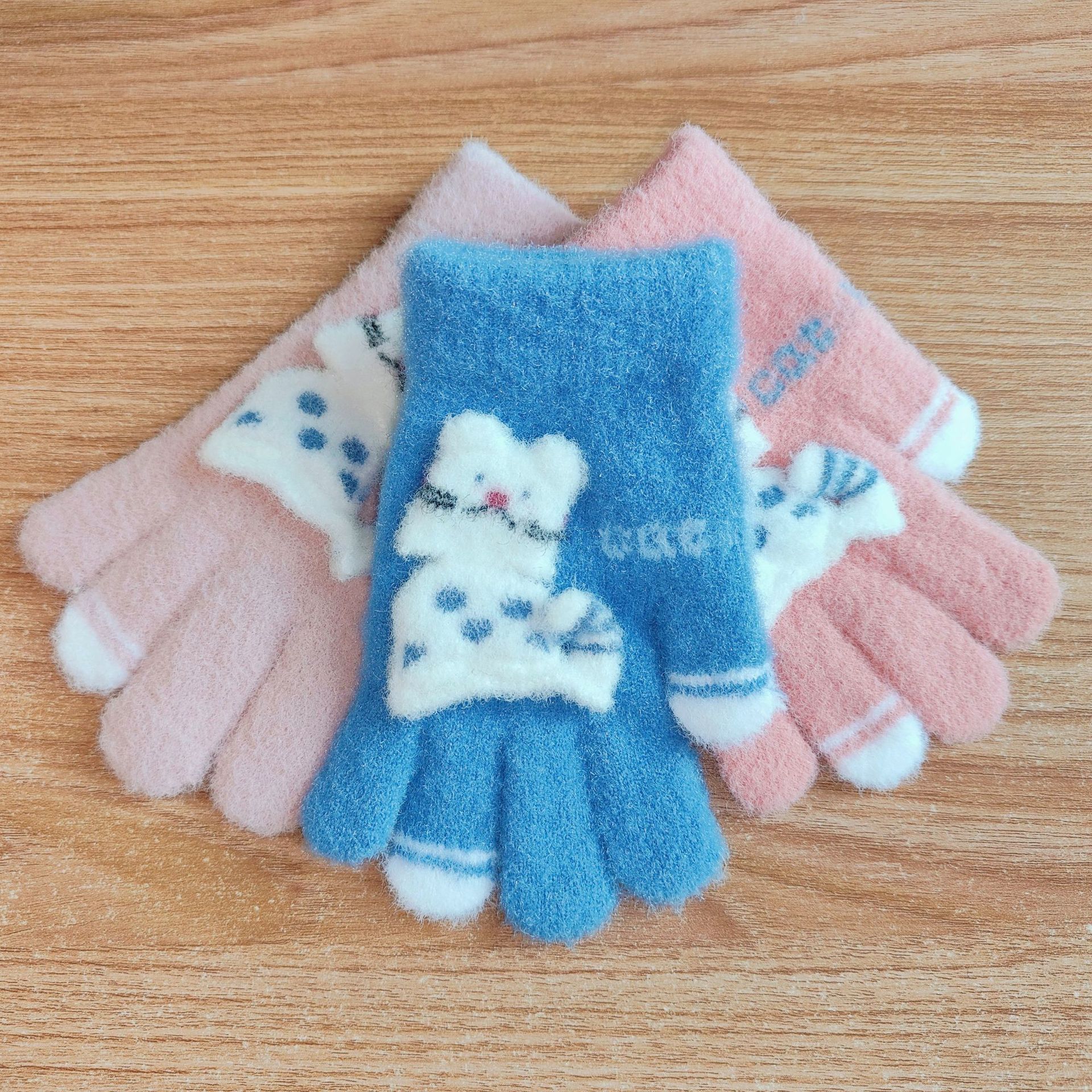어린이 만화 귀여운 장갑 니트 가을과 겨울 따뜻한 장갑 야외 전체 손가락 장갑 제조 업체 직접 공급 가을스토어 가기