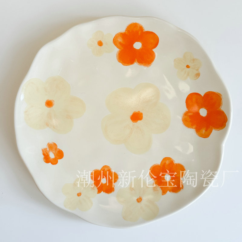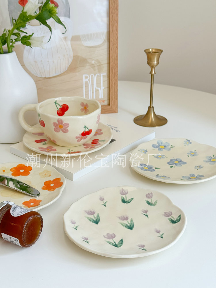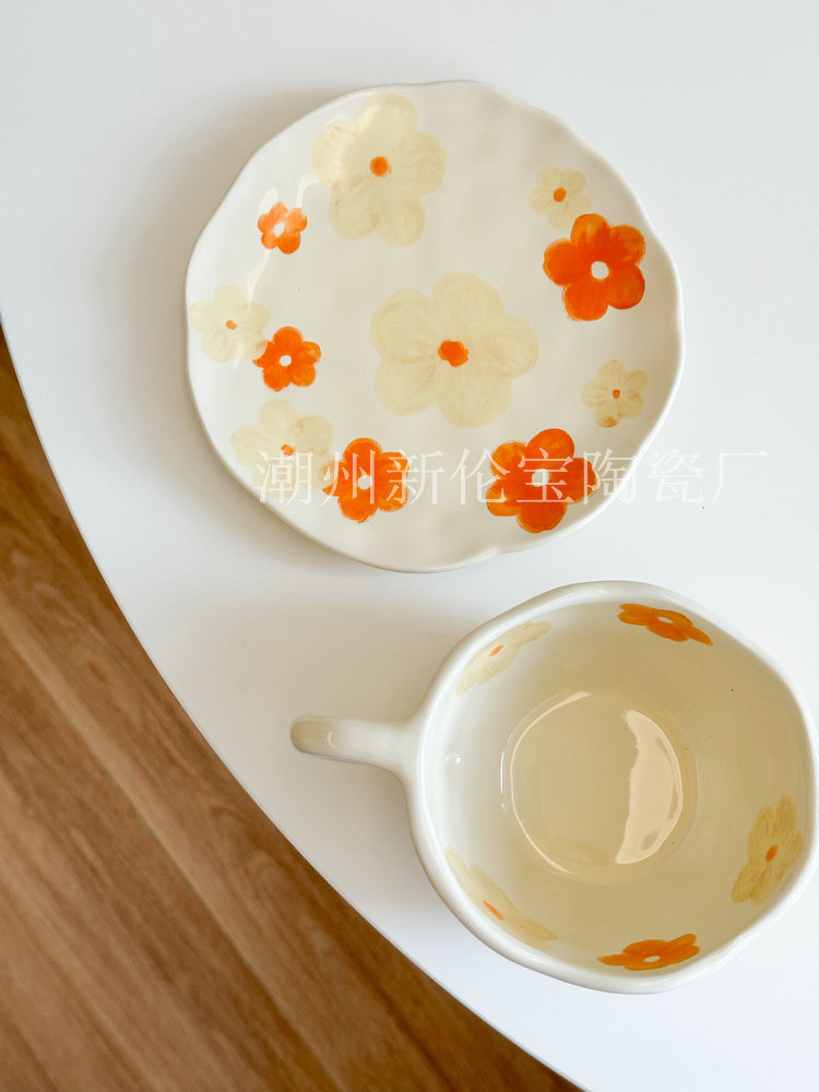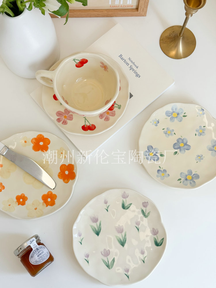 꽃 국수 저작권 한풍 크림 노란색 손 반죽 불규칙한 세라믹 플레이트 디저트 플레이트 커피 컵 소스스토어 가기