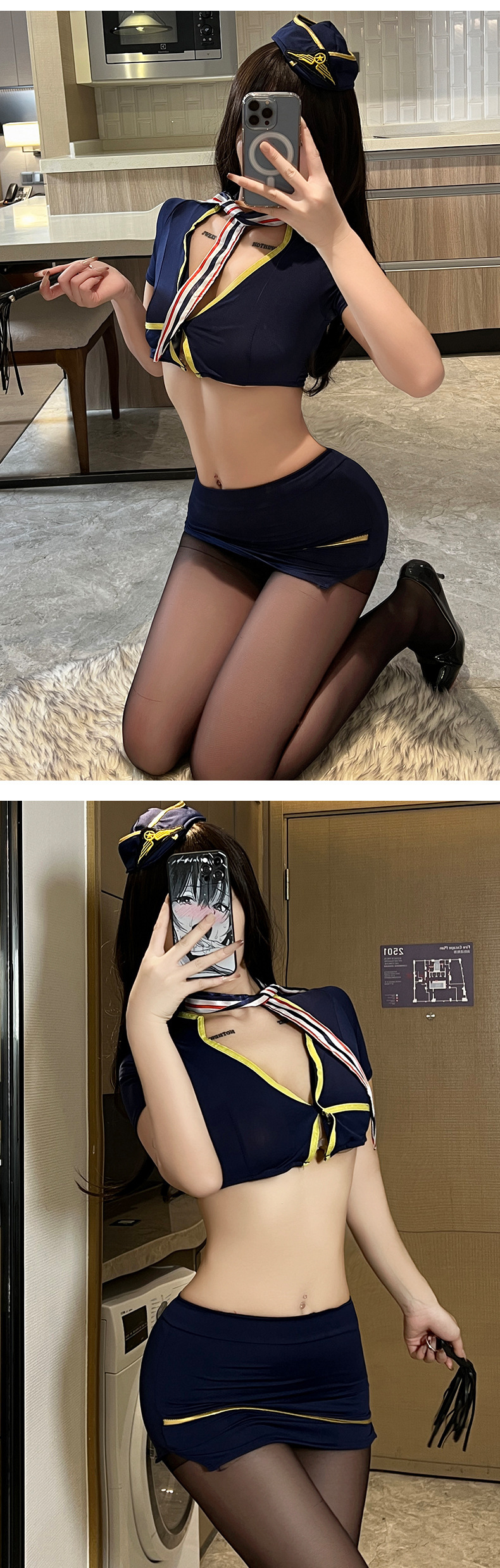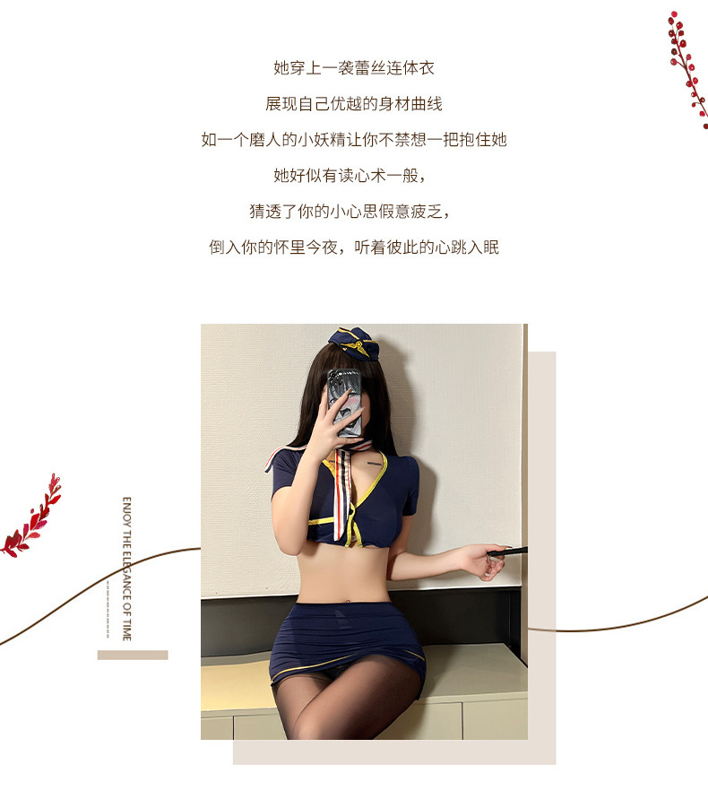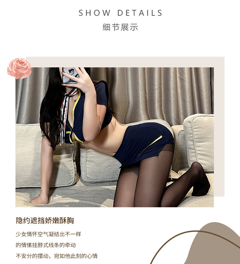 섹시한 속옷 여성의 섹시한 스튜어디스 유니폼 힙합 스커트 장비 분할 유혹 세트 나이트 클럽 뉴스토어 가기
